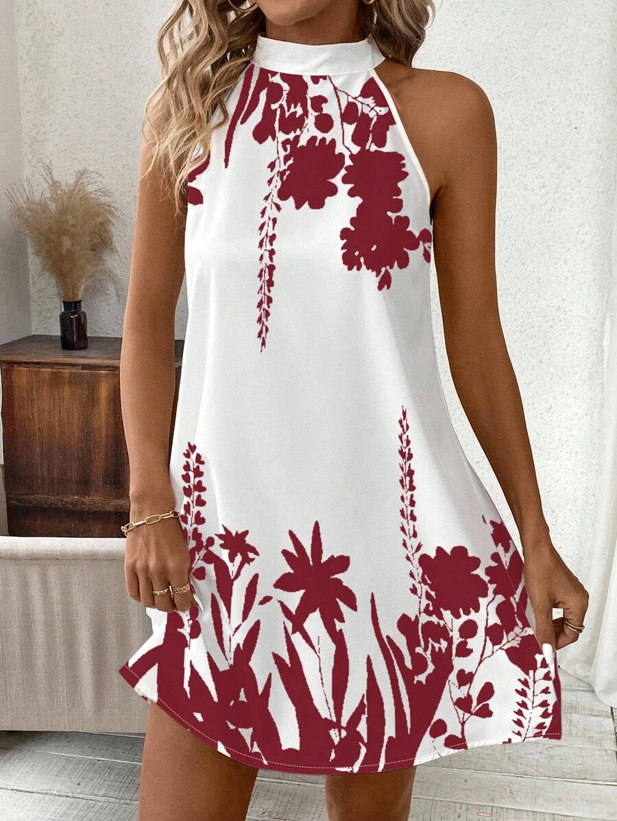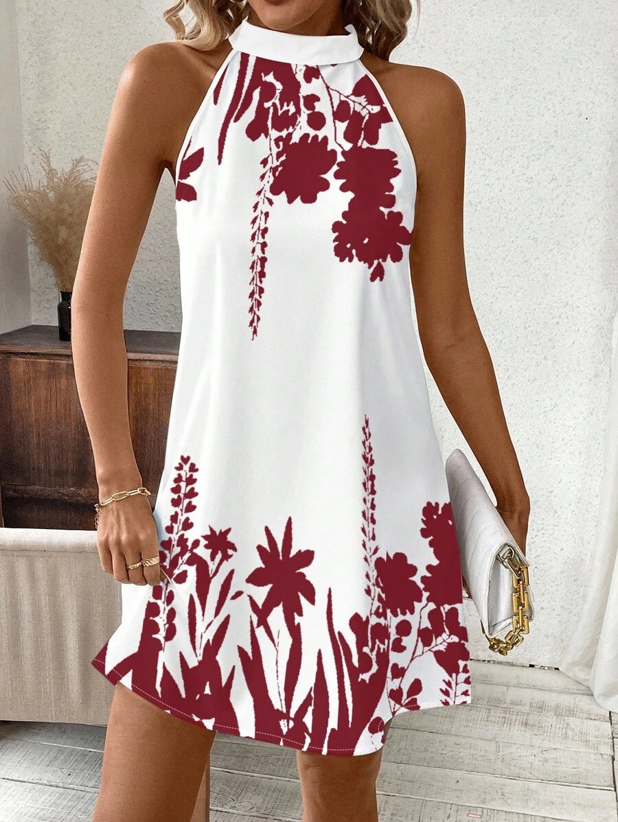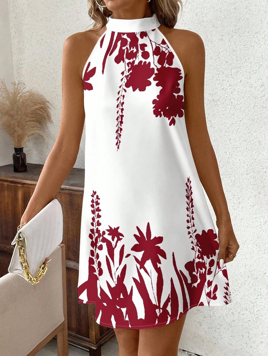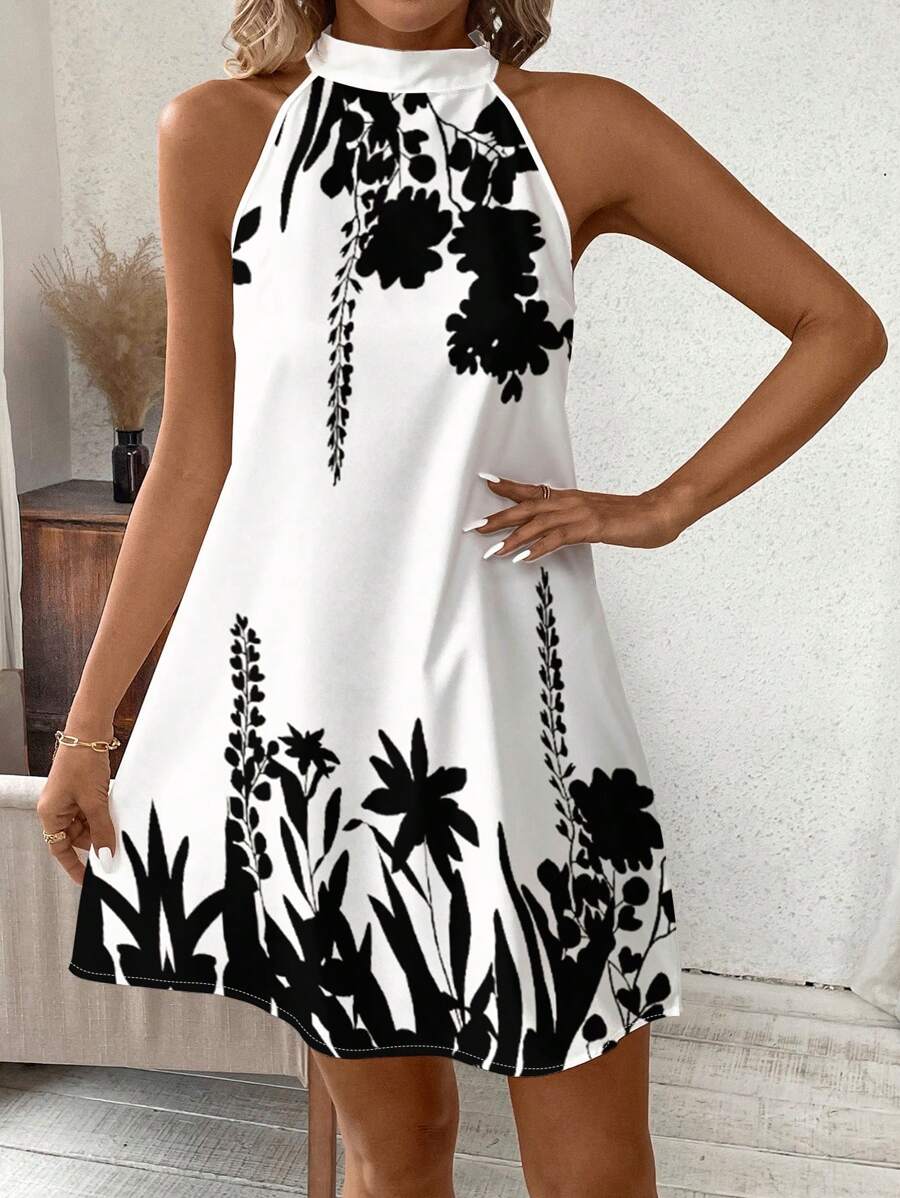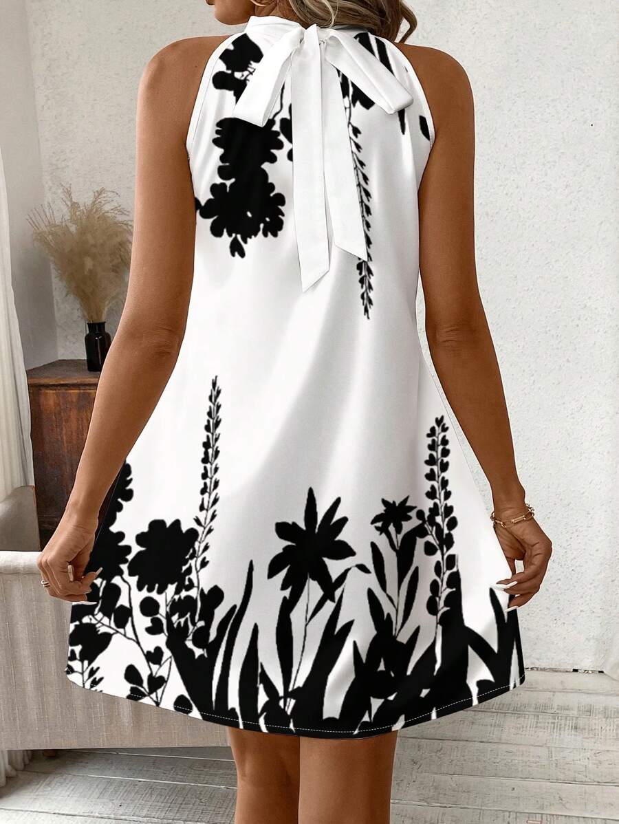 Vestido mini ajustado sin mangas con estampado geometrico en blanco y negro, elegante. adecuado para uso diario, atuendos de verano, vestidos casuales, vacaciones, estilo bohemio, salir, maestro, etc.