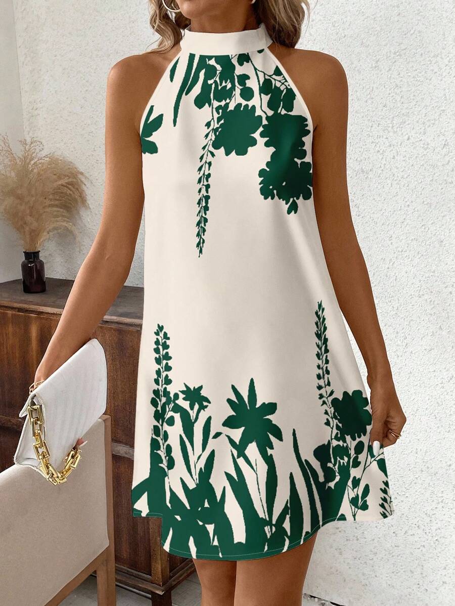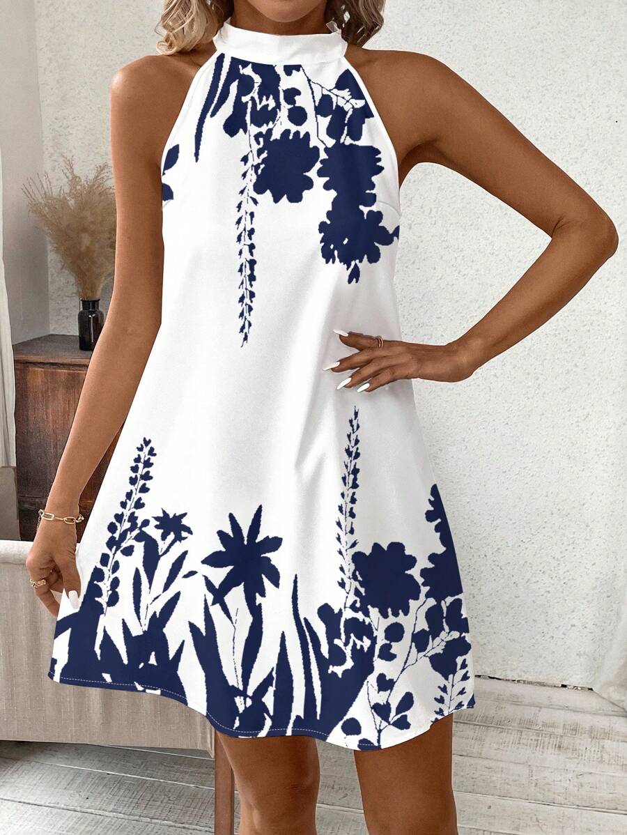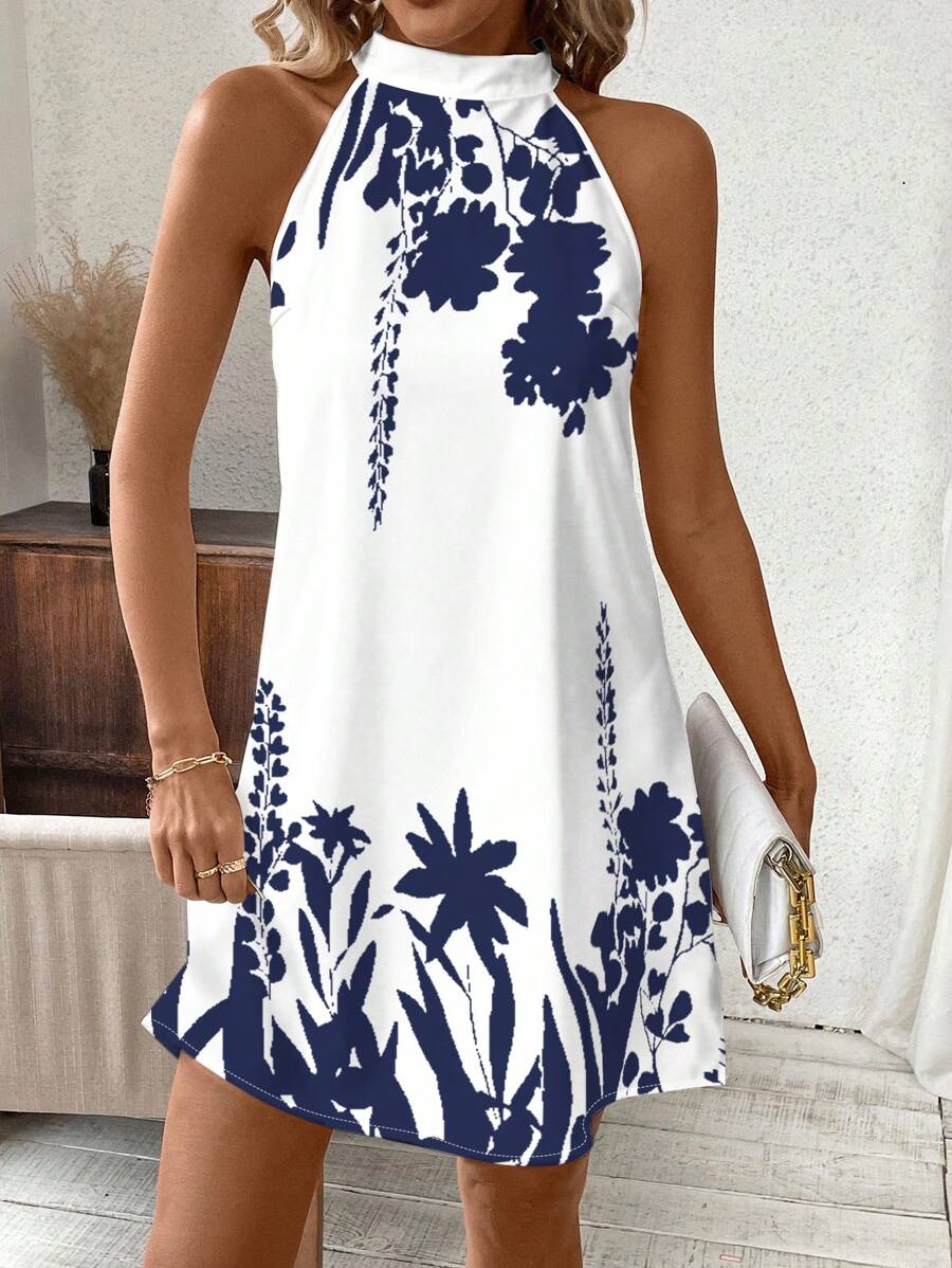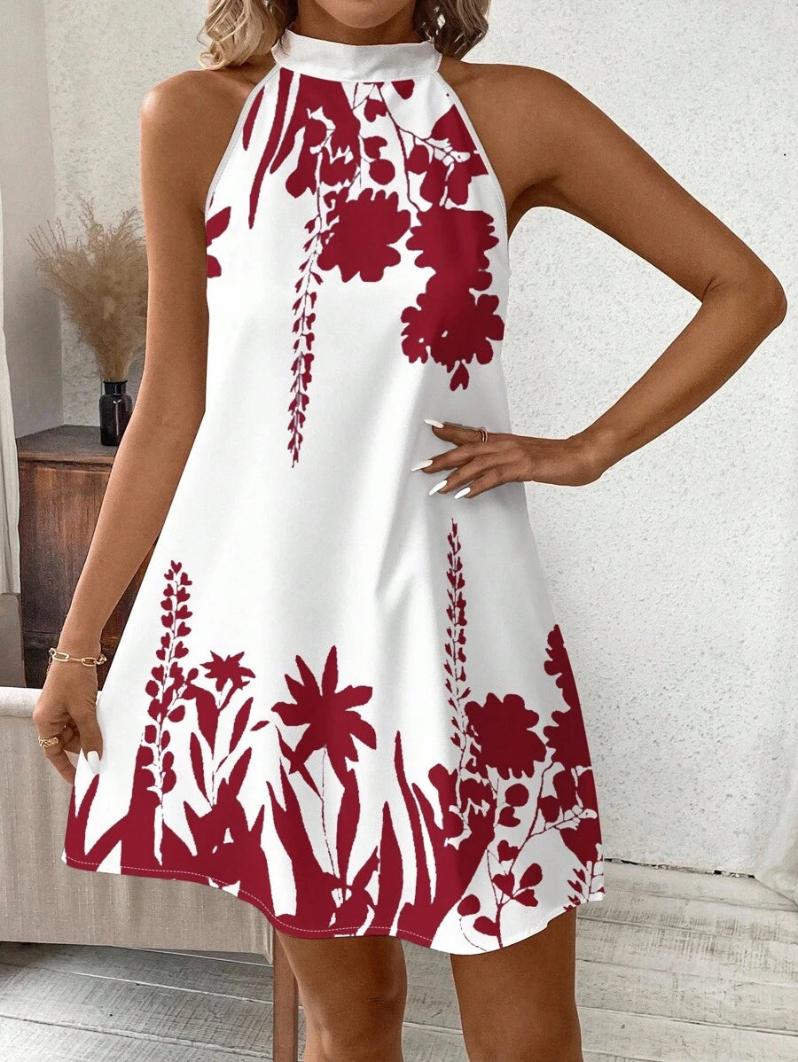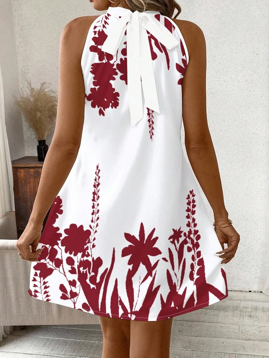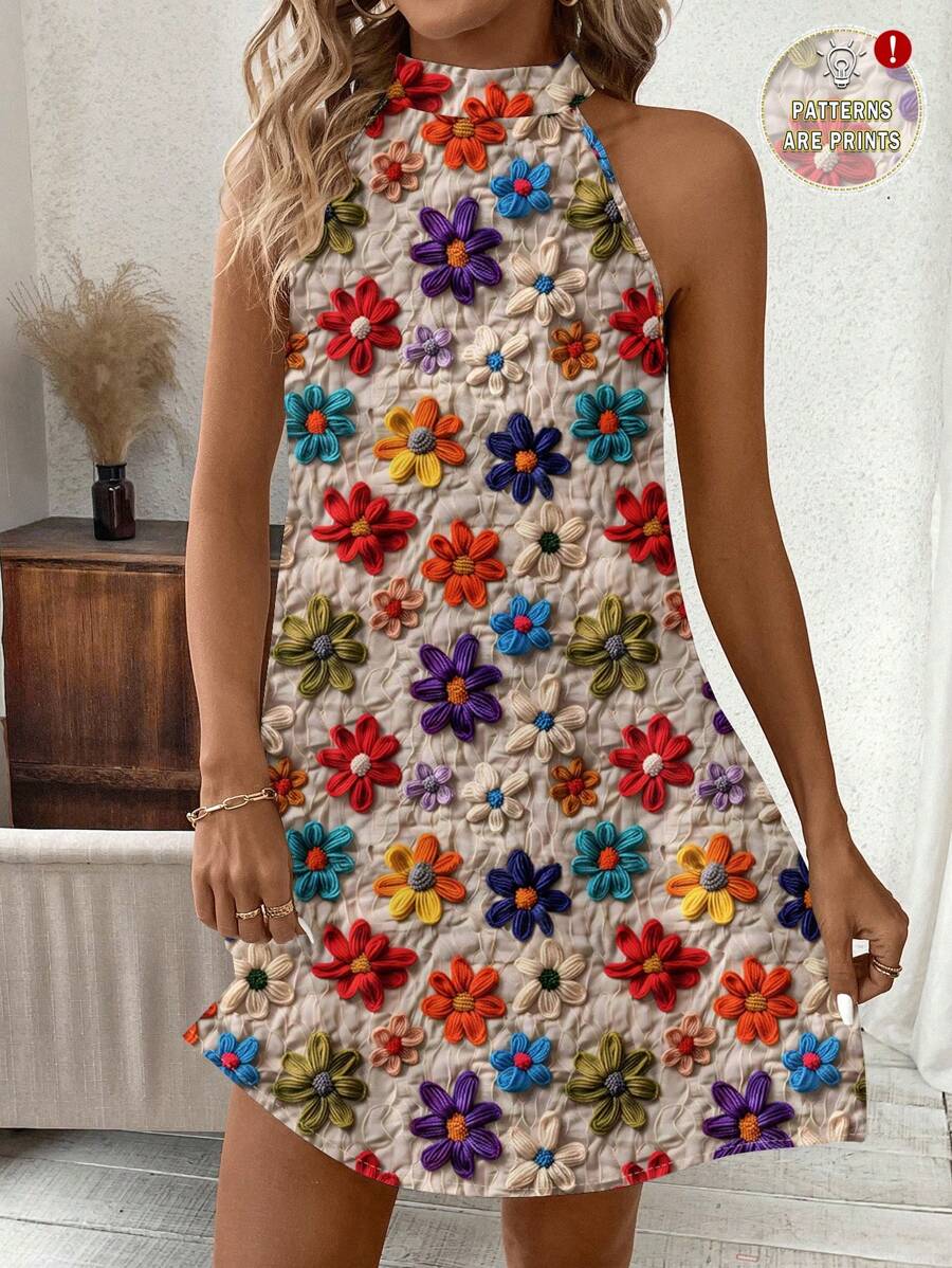 Vestido mini ajustado sin mangas con estampado geometrico en blanco y negro, elegante. adecuado para uso diario, atuendos de verano, vestidos casuales, vacaciones, estilo bohemio, salir, maestro, etc.