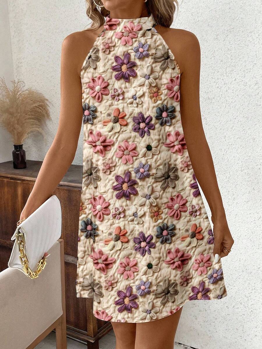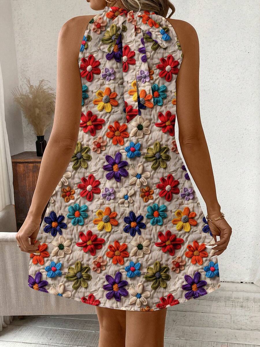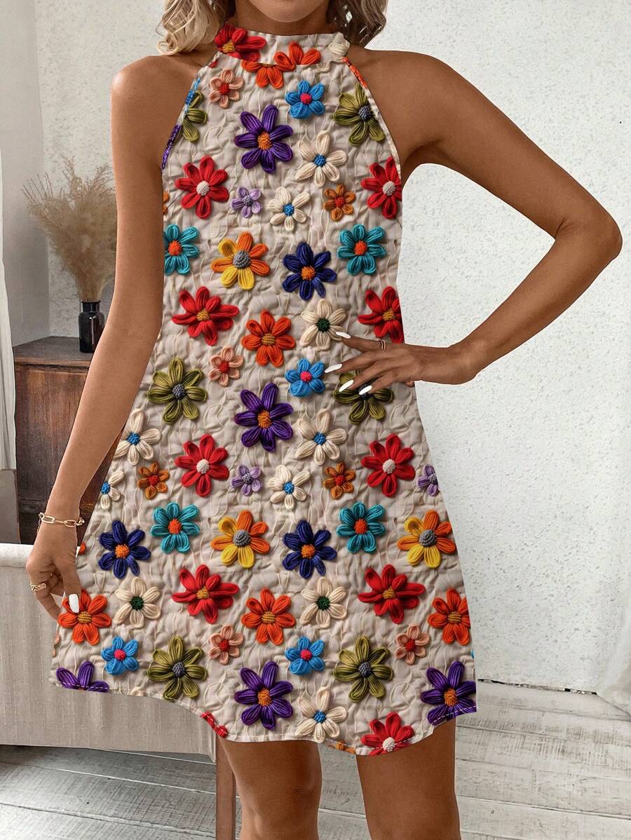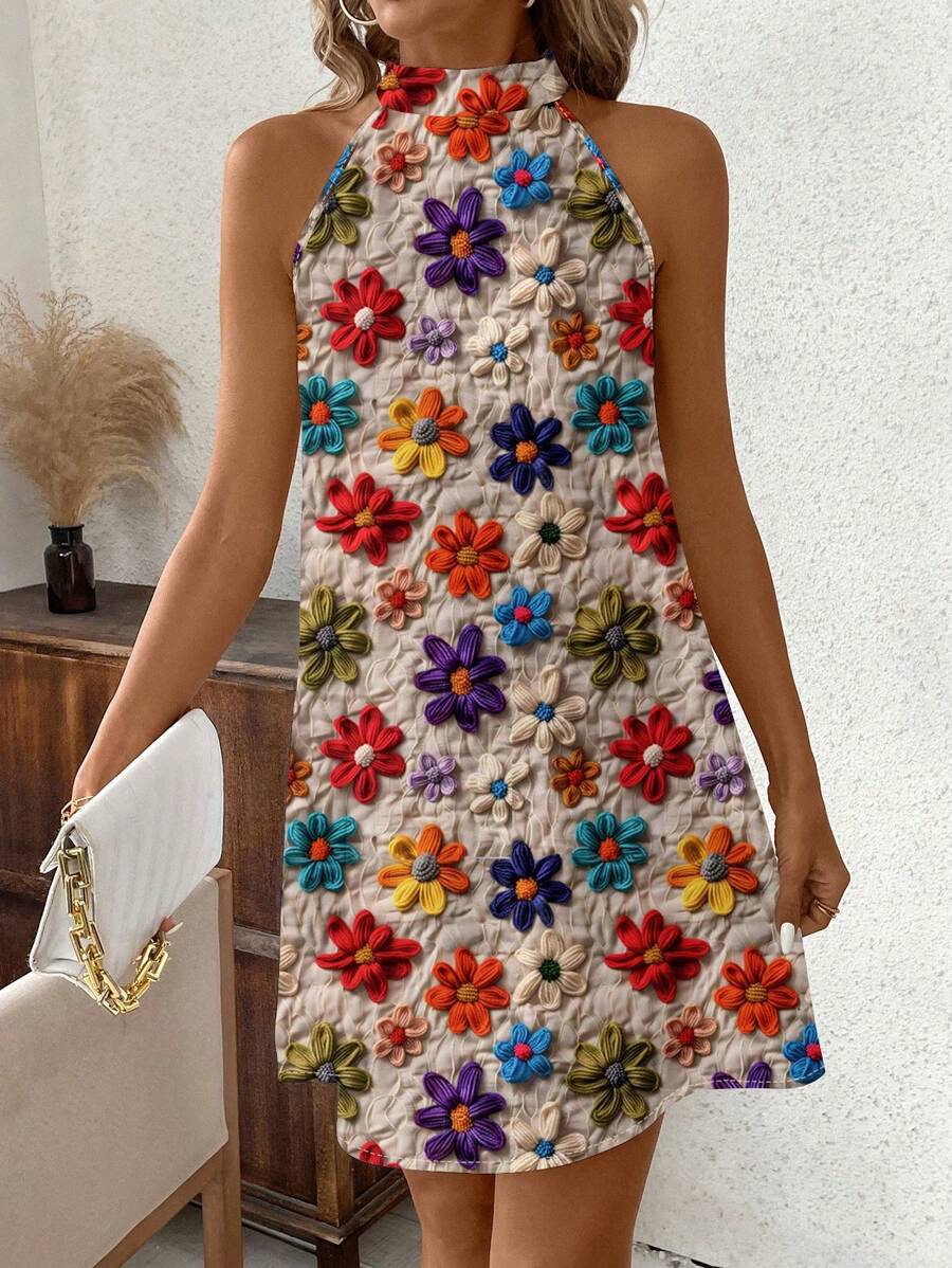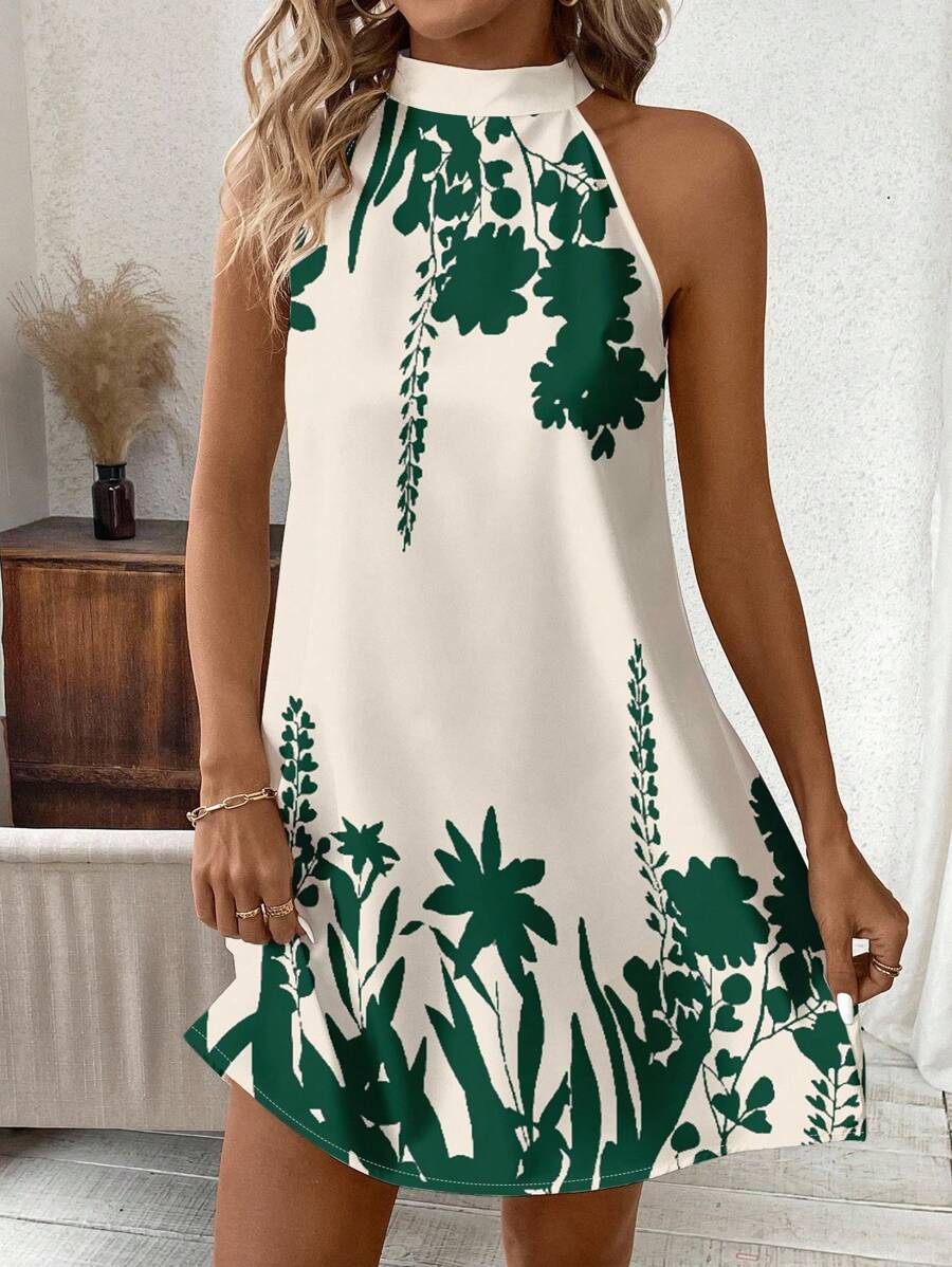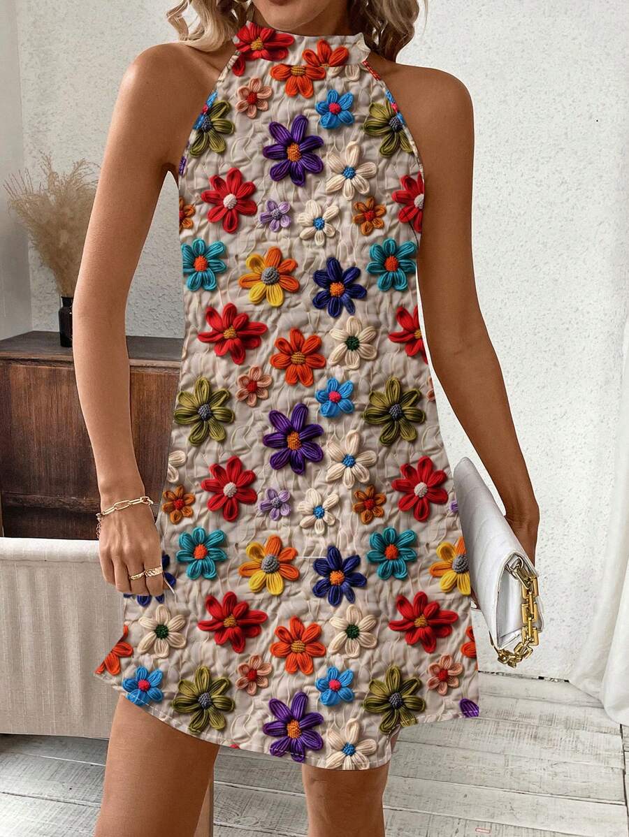 Vestido mini ajustado sin mangas con estampado geometrico en blanco y negro, elegante. adecuado para uso diario, atuendos de verano, vestidos casuales, vacaciones, estilo bohemio, salir, maestro, etc.
