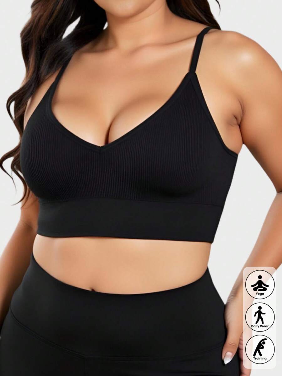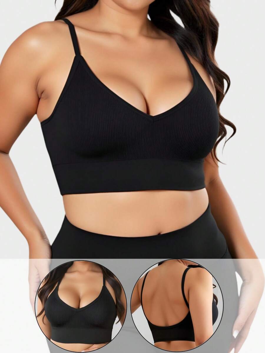 1 pieza brasier deportivo sin costuras, sexy, de cuello en v, para mujer de talla grande, comodo y suave, sin cables, apto para uso diario y yoga