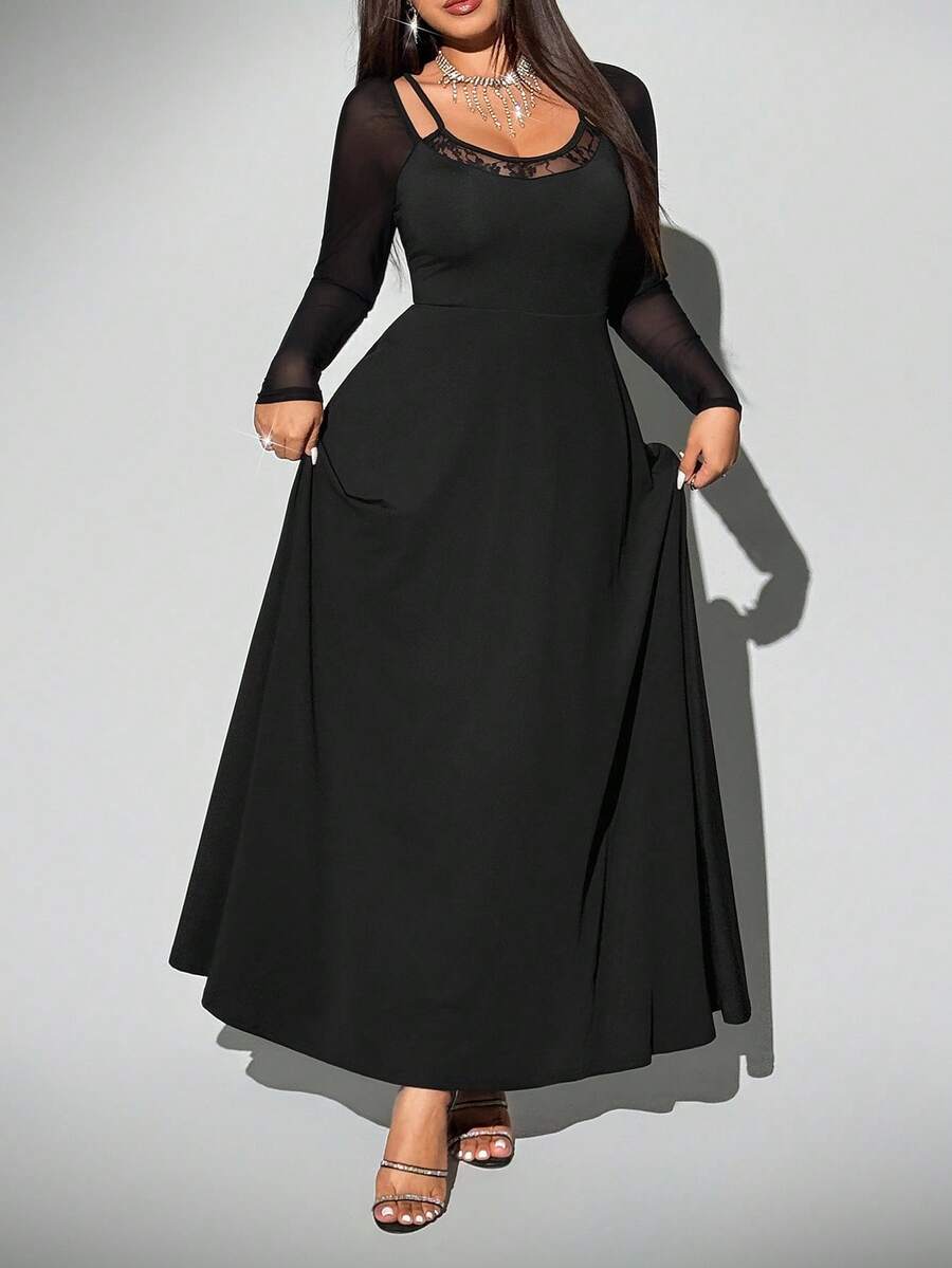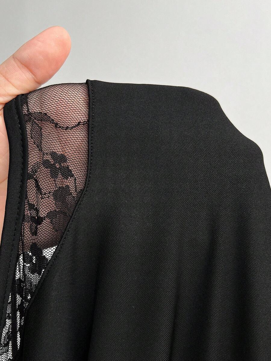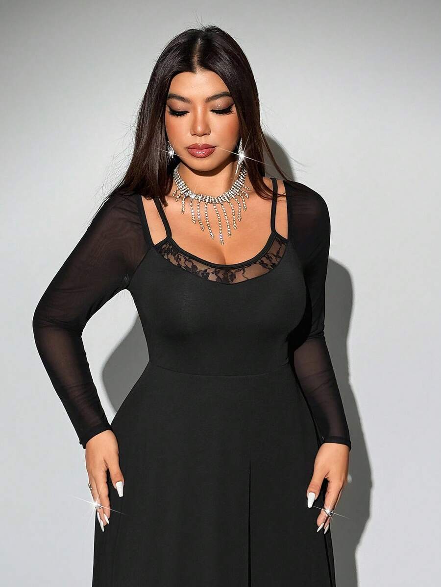Viva relle vestido sexy de manga raglan con contraste de encaje y malla para mujer de talla grande