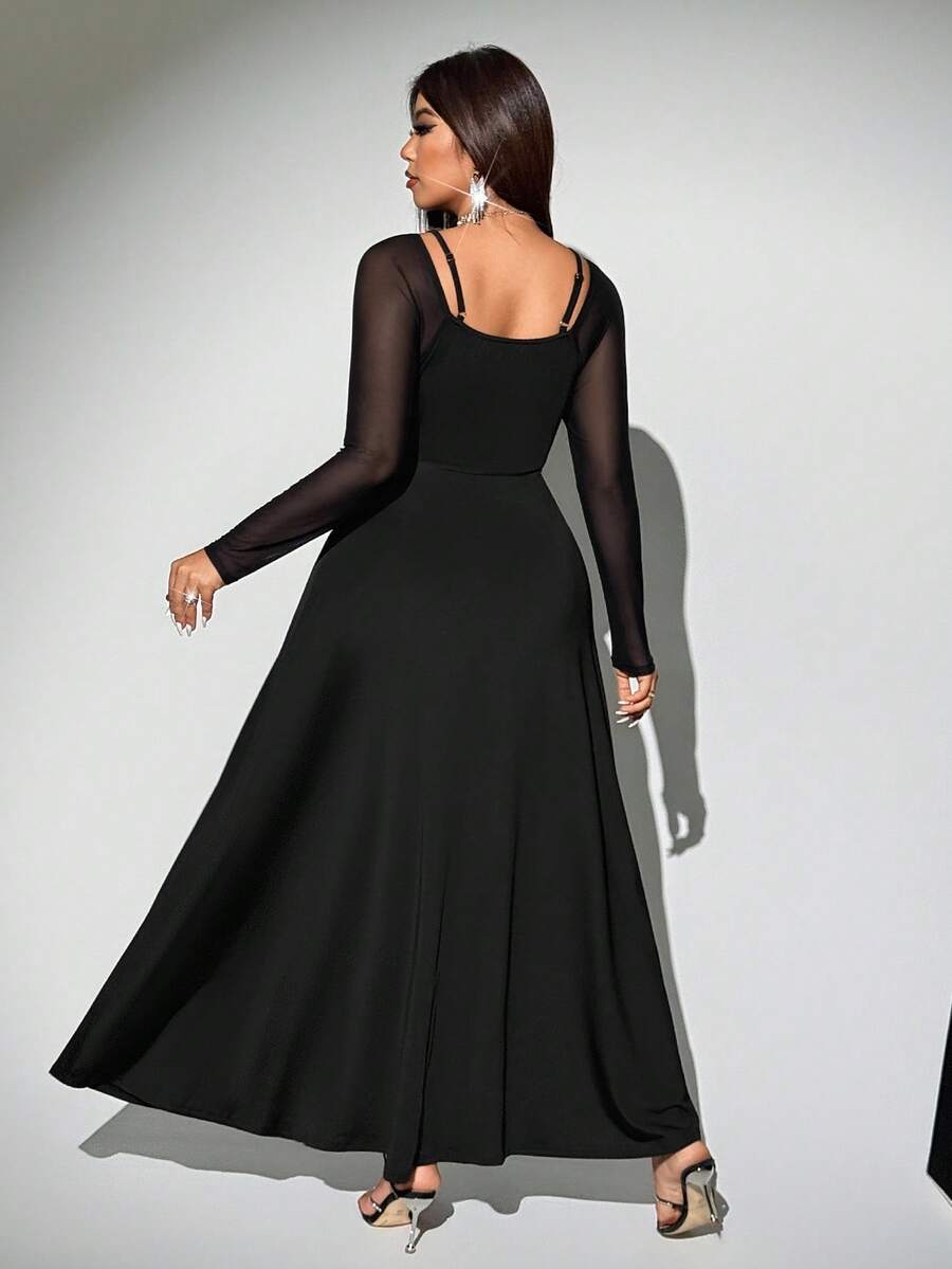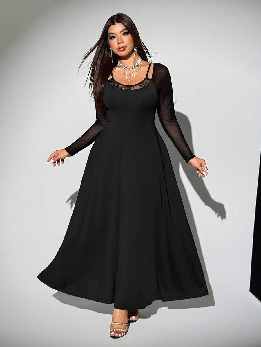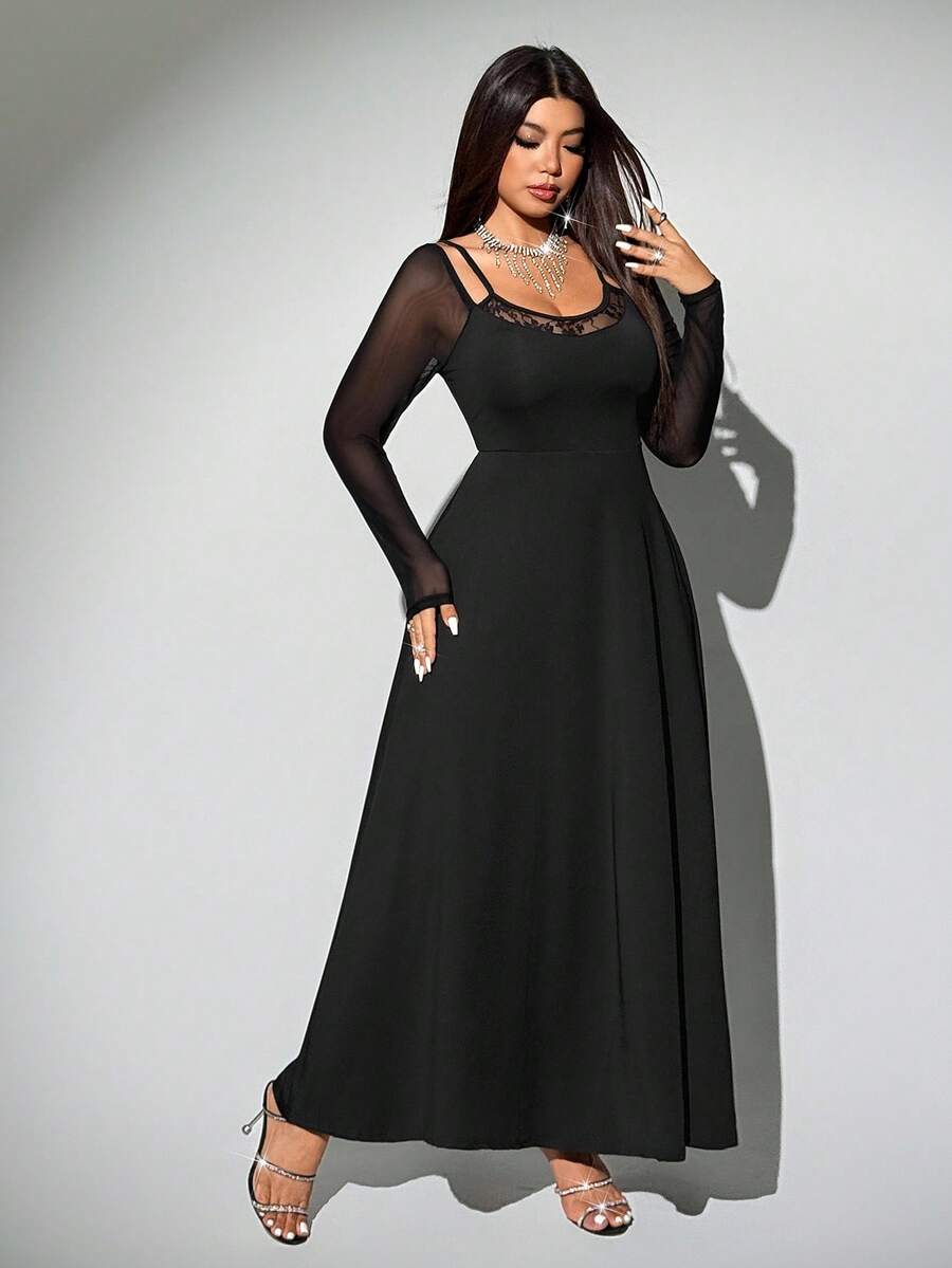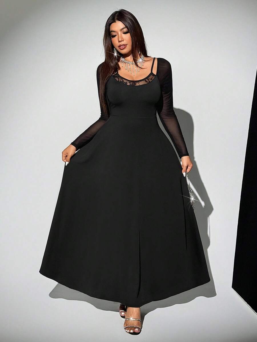 Viva relle vestido sexy de manga raglan con contraste de encaje y malla para mujer de talla grande
