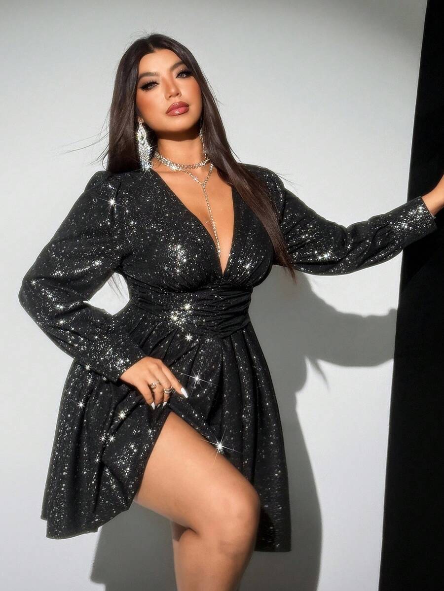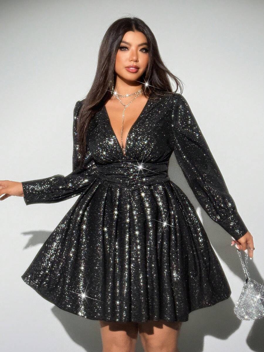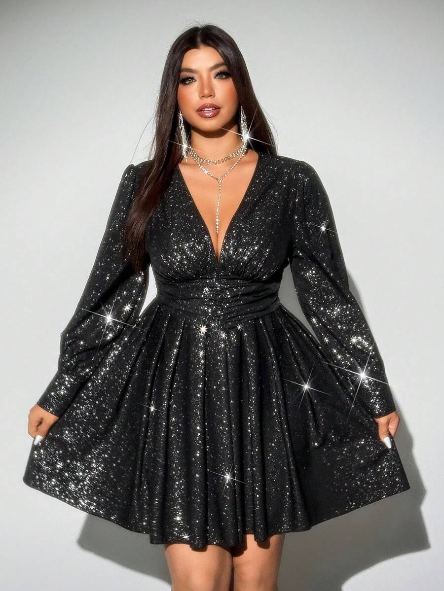 Viva relle nuevo vestido formal de mujer, vestido de noche, diseno de tela metalica con cuello en v, manga larga, plisado, ajuste delgado, vestido de fiesta de linea a, vestido de boda