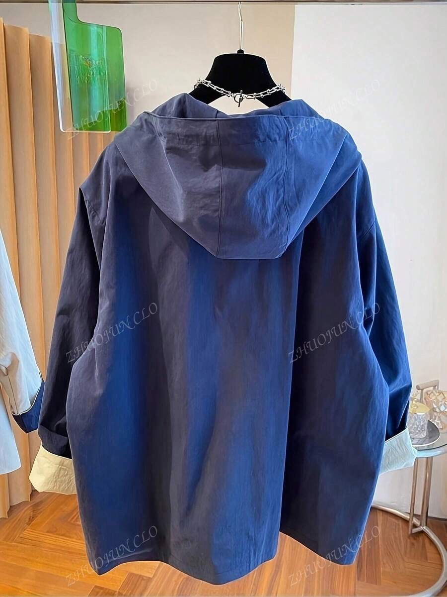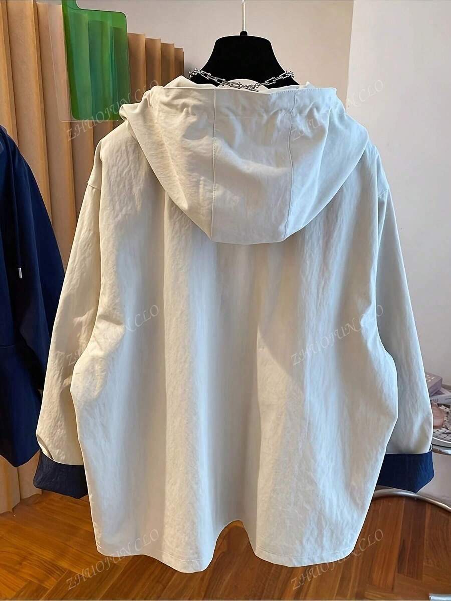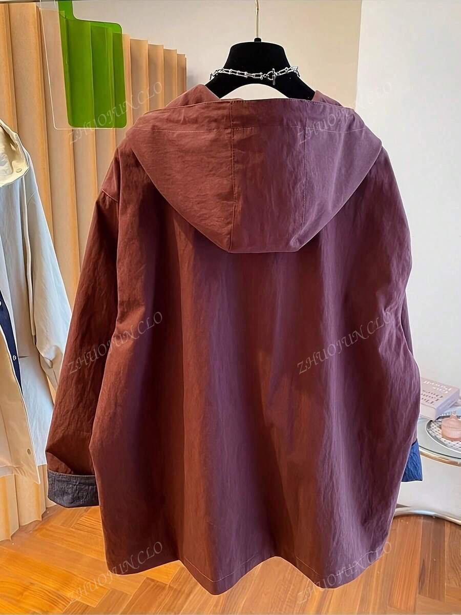 2025 nueva chaqueta cortavientos con buzos con capucha para mujer, corte holgado, de alta gama, chaqueta de longitud media con capucha, adecuada para primavera y otono