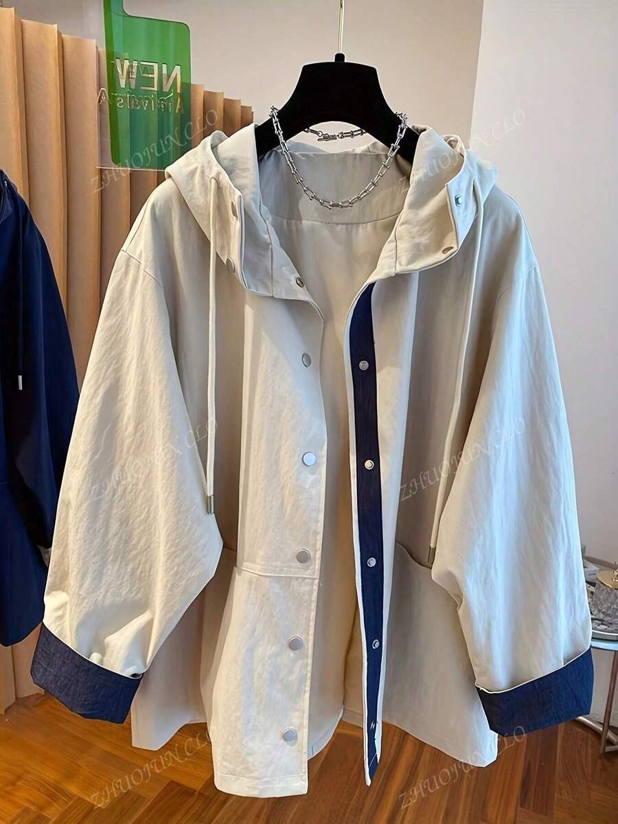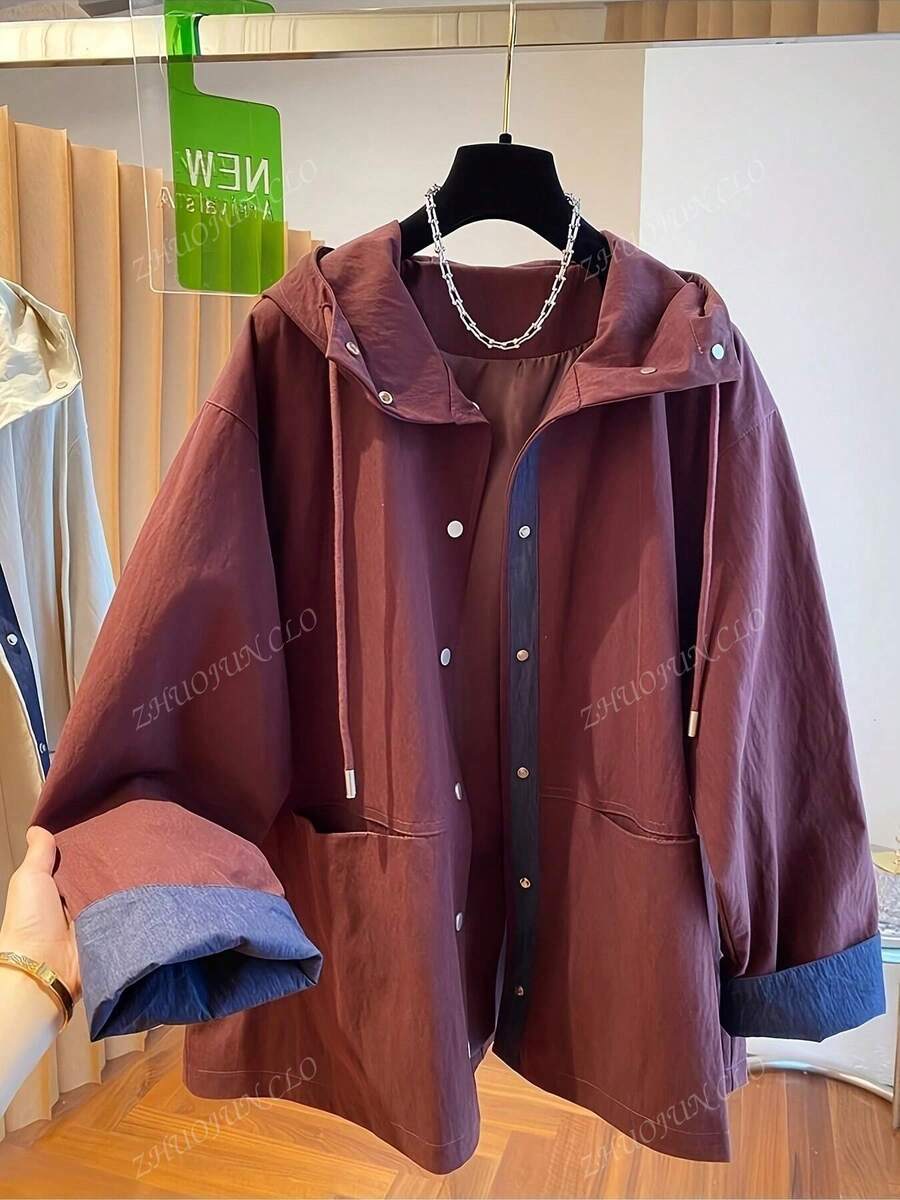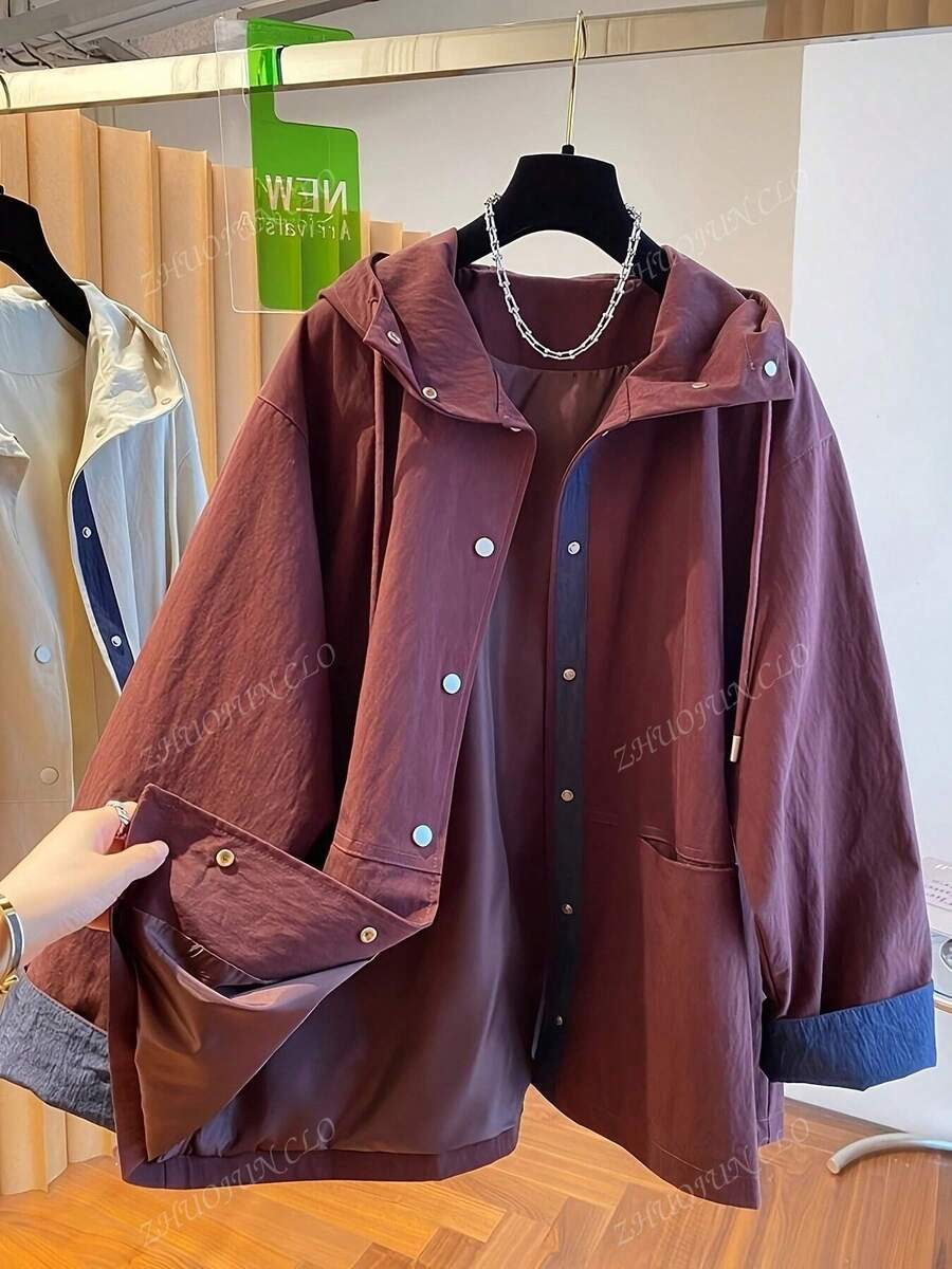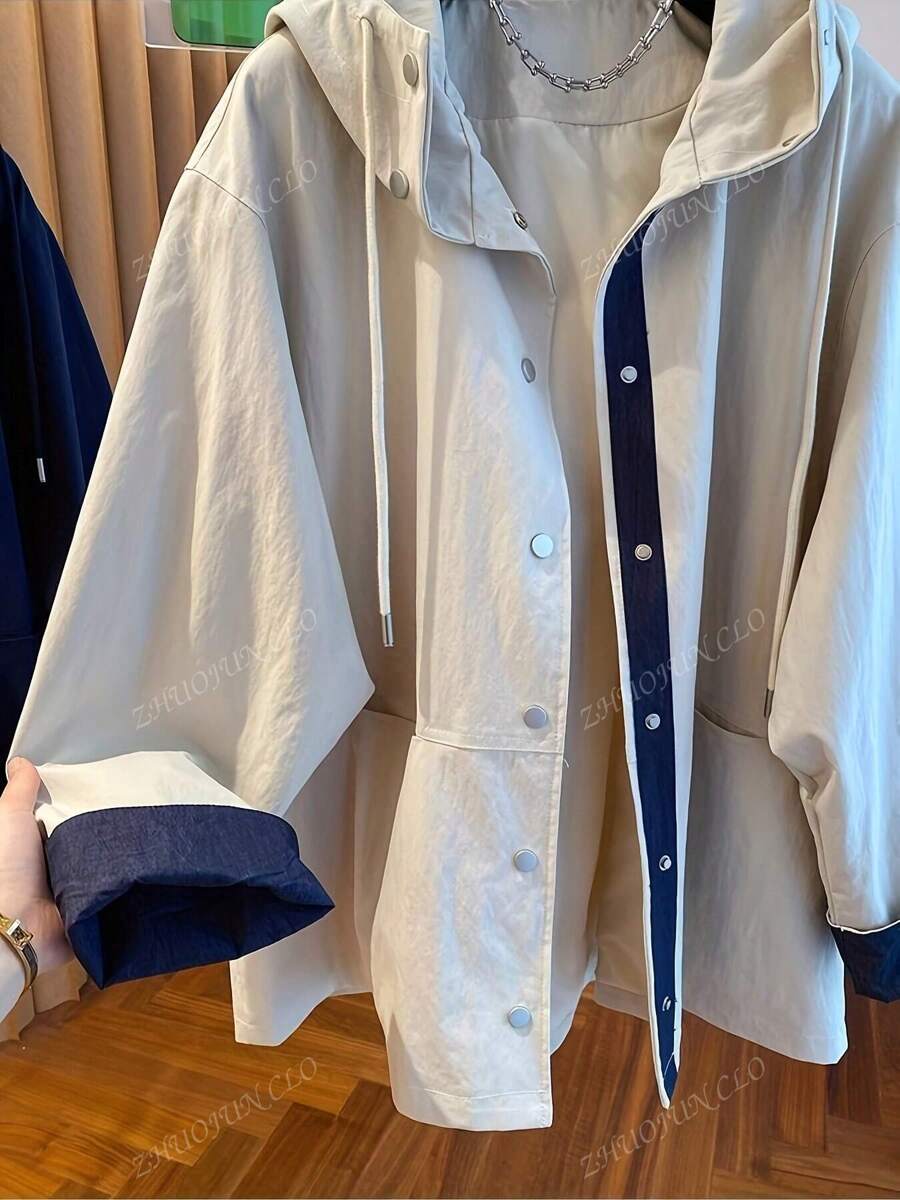 2025 nueva chaqueta cortavientos con buzos con capucha para mujer, corte holgado, de alta gama, chaqueta de longitud media con capucha, adecuada para primavera y otono