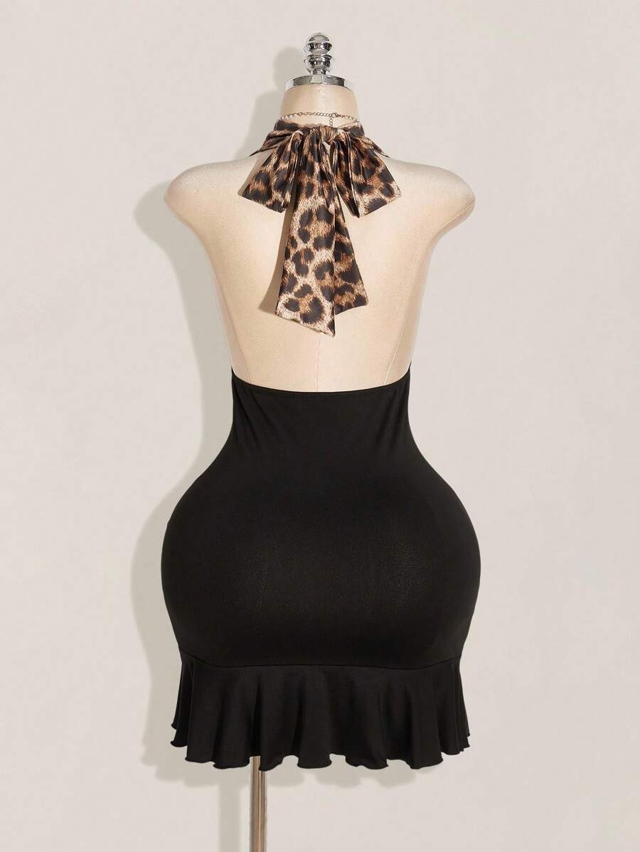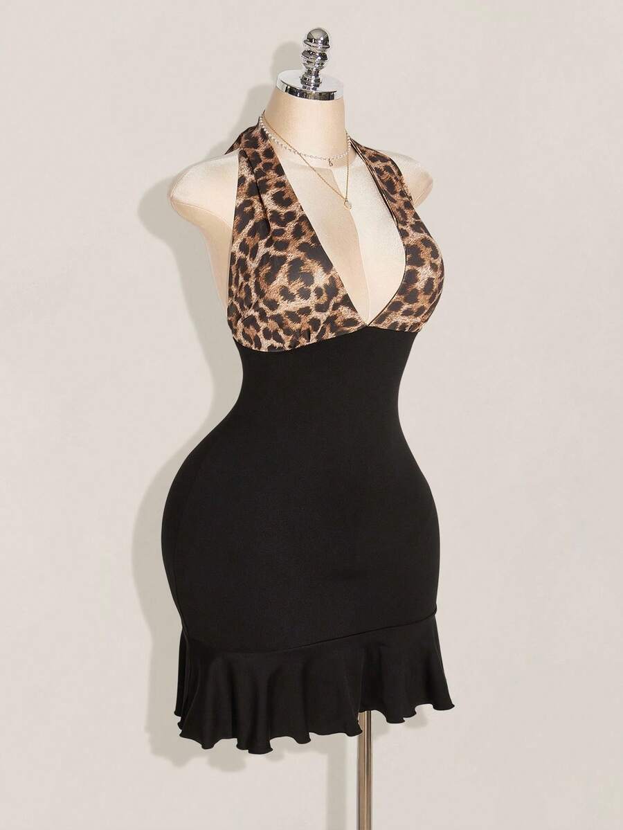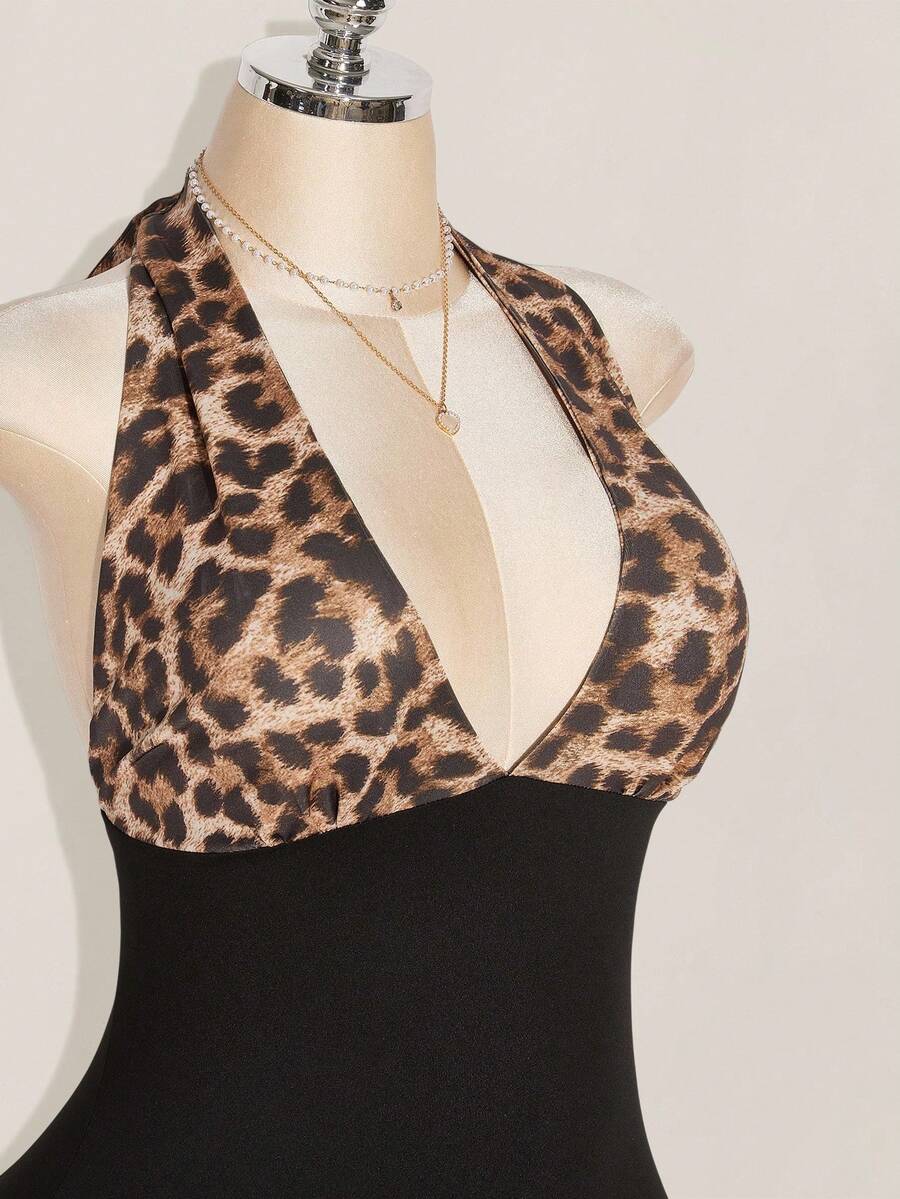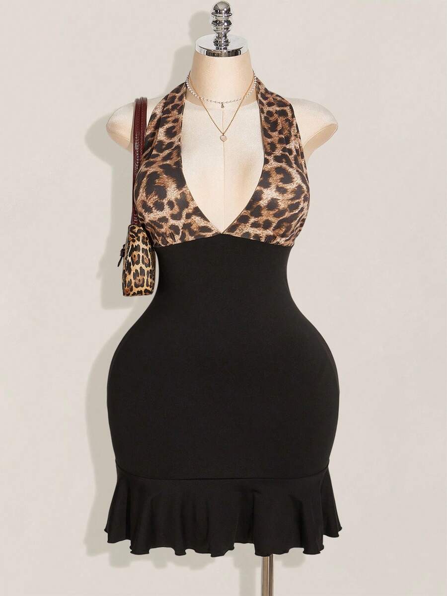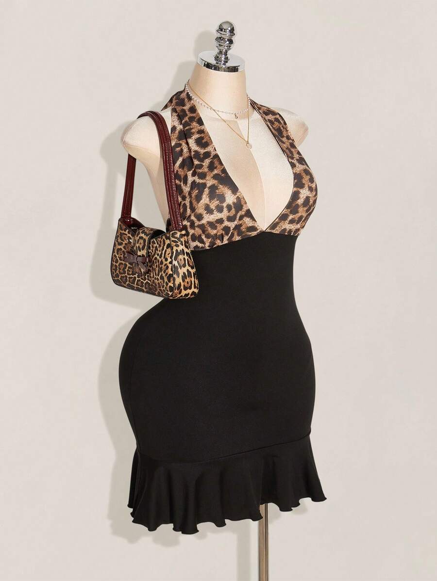 Vestido mini retro casual de vacaciones con estampado de leopardo y escote en v profundo para talla grande, vestido de verano para mujeres, vacaciones de verano, graduacion y ropa de vuelta al colegio