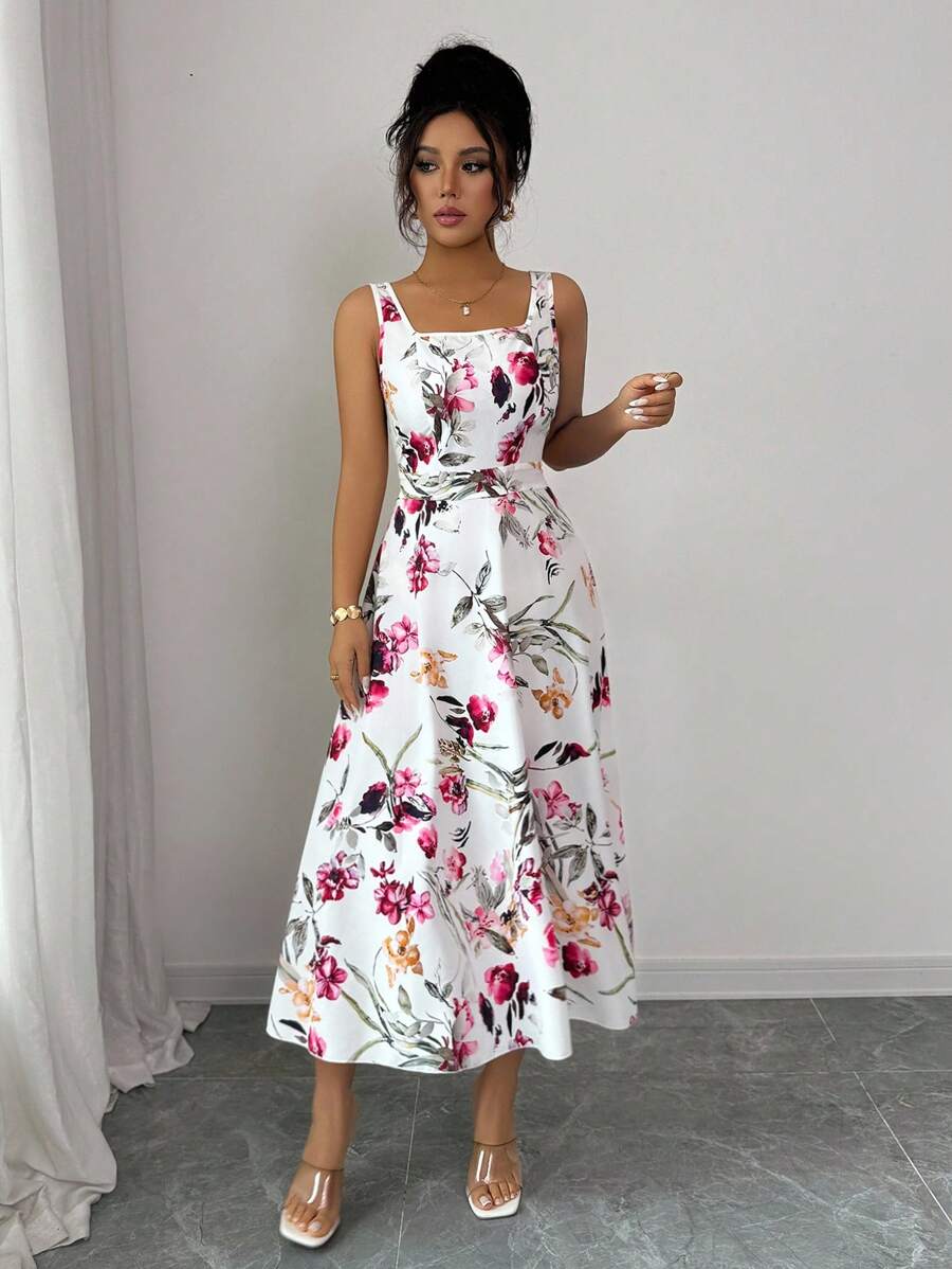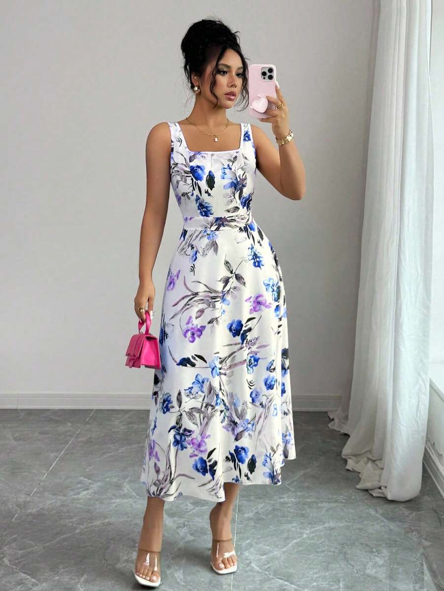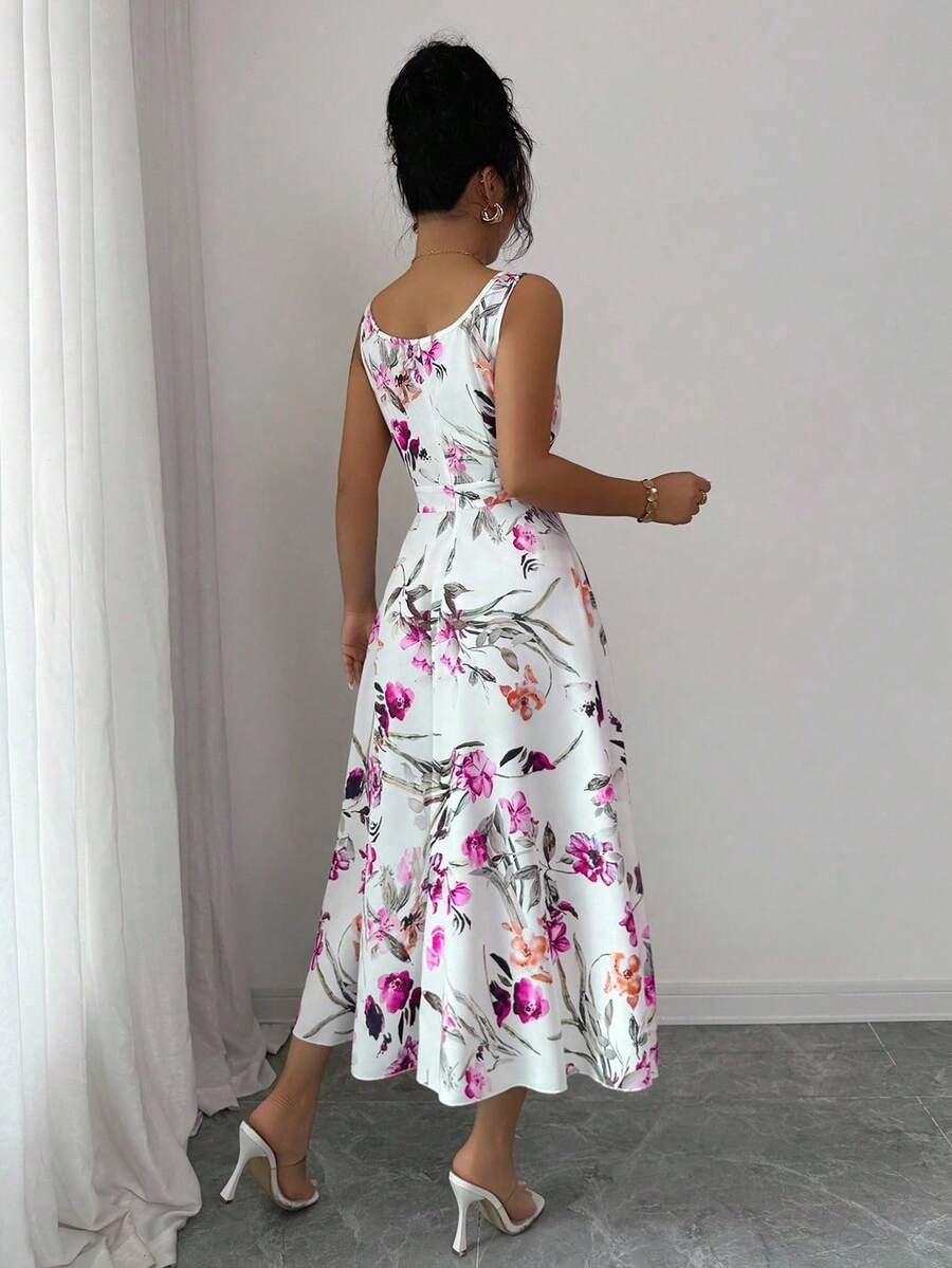 Vestido elegante y de moda con estampado que cine la cintura para mujer