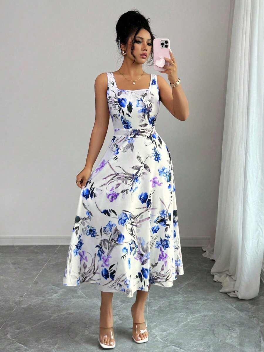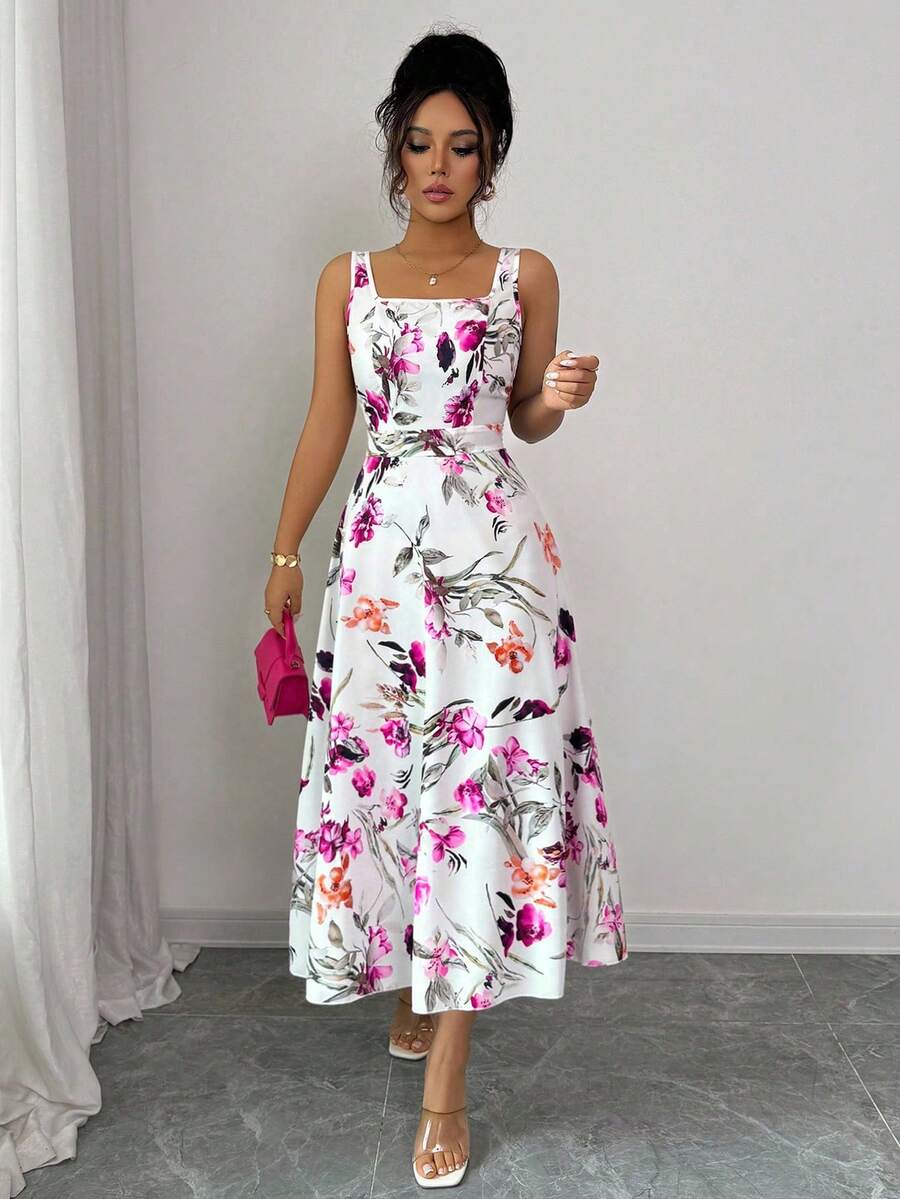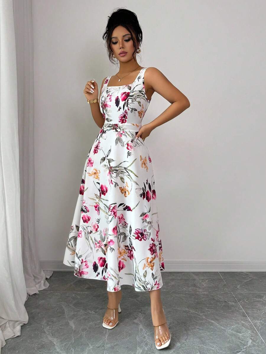 Vestido elegante y de moda con estampado que cine la cintura para mujer