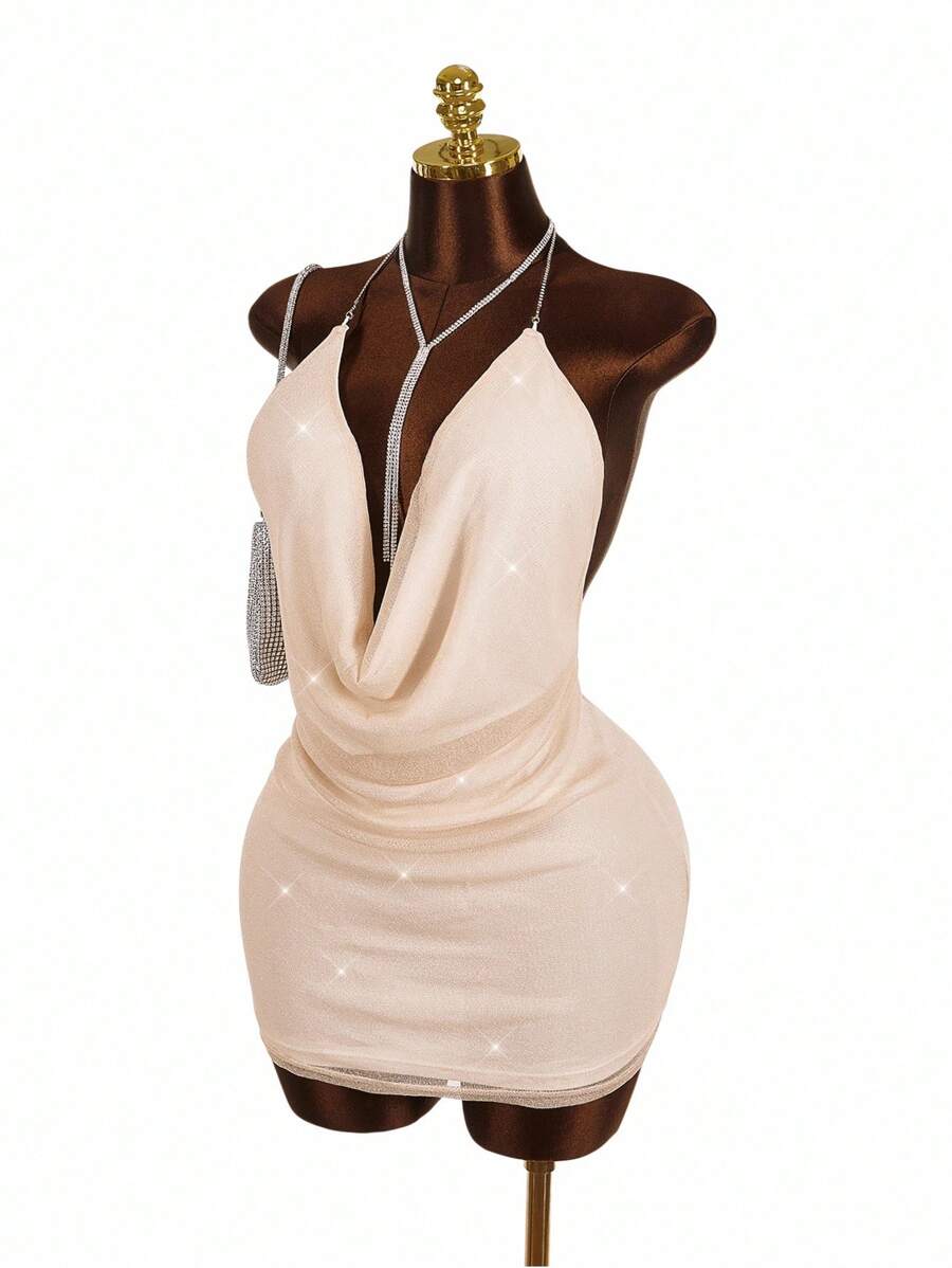 Amplova vestido mini con escote pronunciado y espalda descubierta, de moda y sexy, talla grande