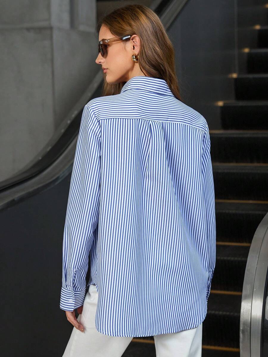 Aveloria affinna nueva camisa de manga larga a rayas con contraste azul frances y blanco, plisada, elegante para fiesta, para mujer en otono/invierno