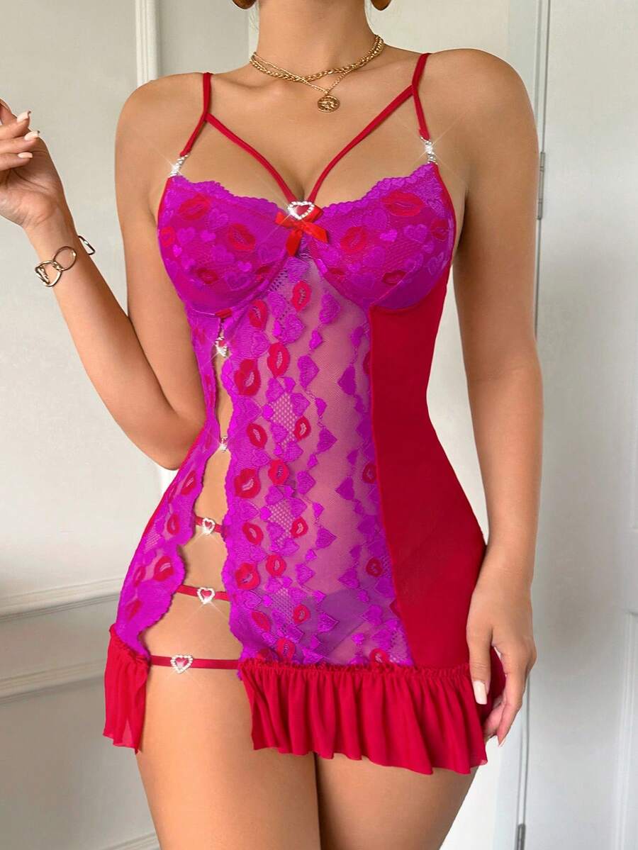Silkyspell camison de malla con diseno de parches de encaje y recortes laterales sexy