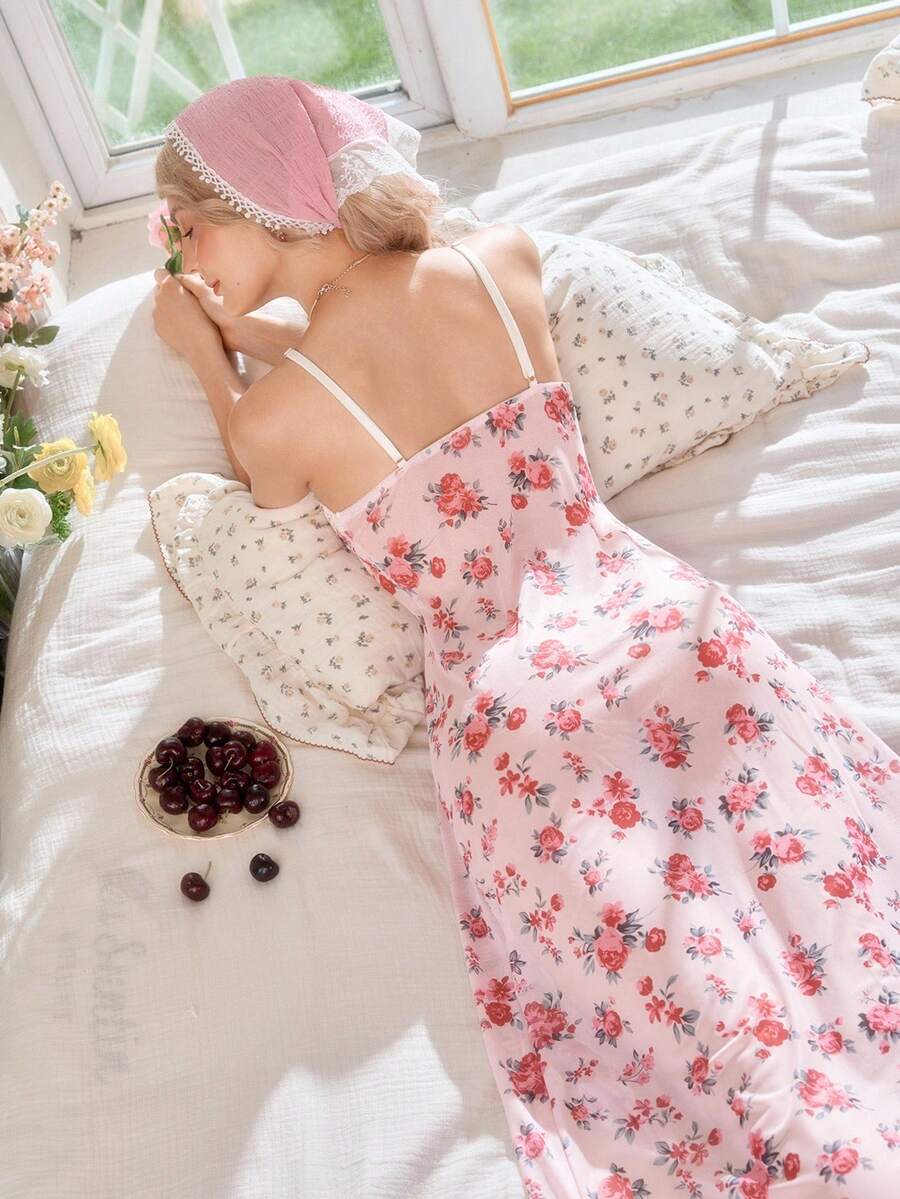 Florallove vestido camison sexy y elegante con estampado de malla floral romantico para mujeres