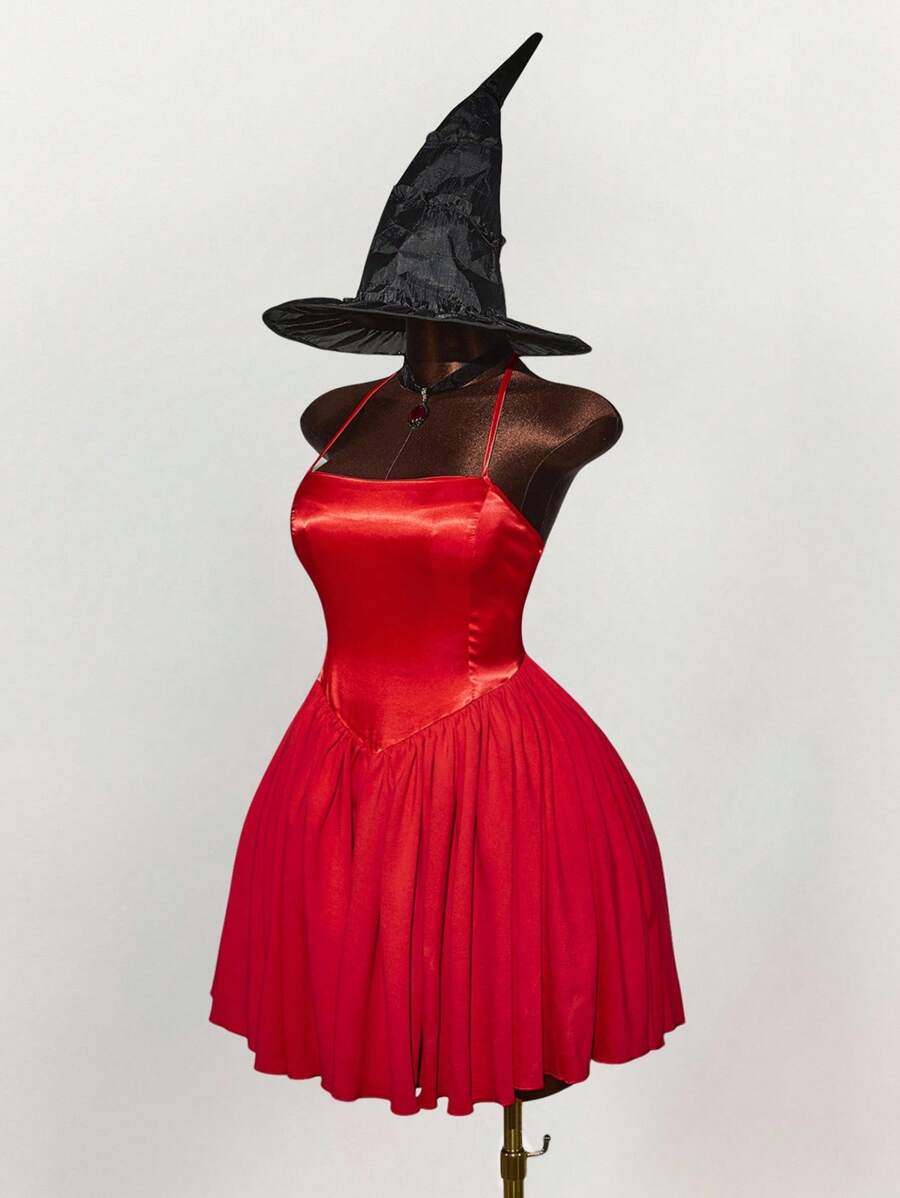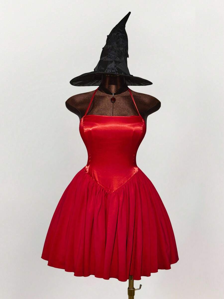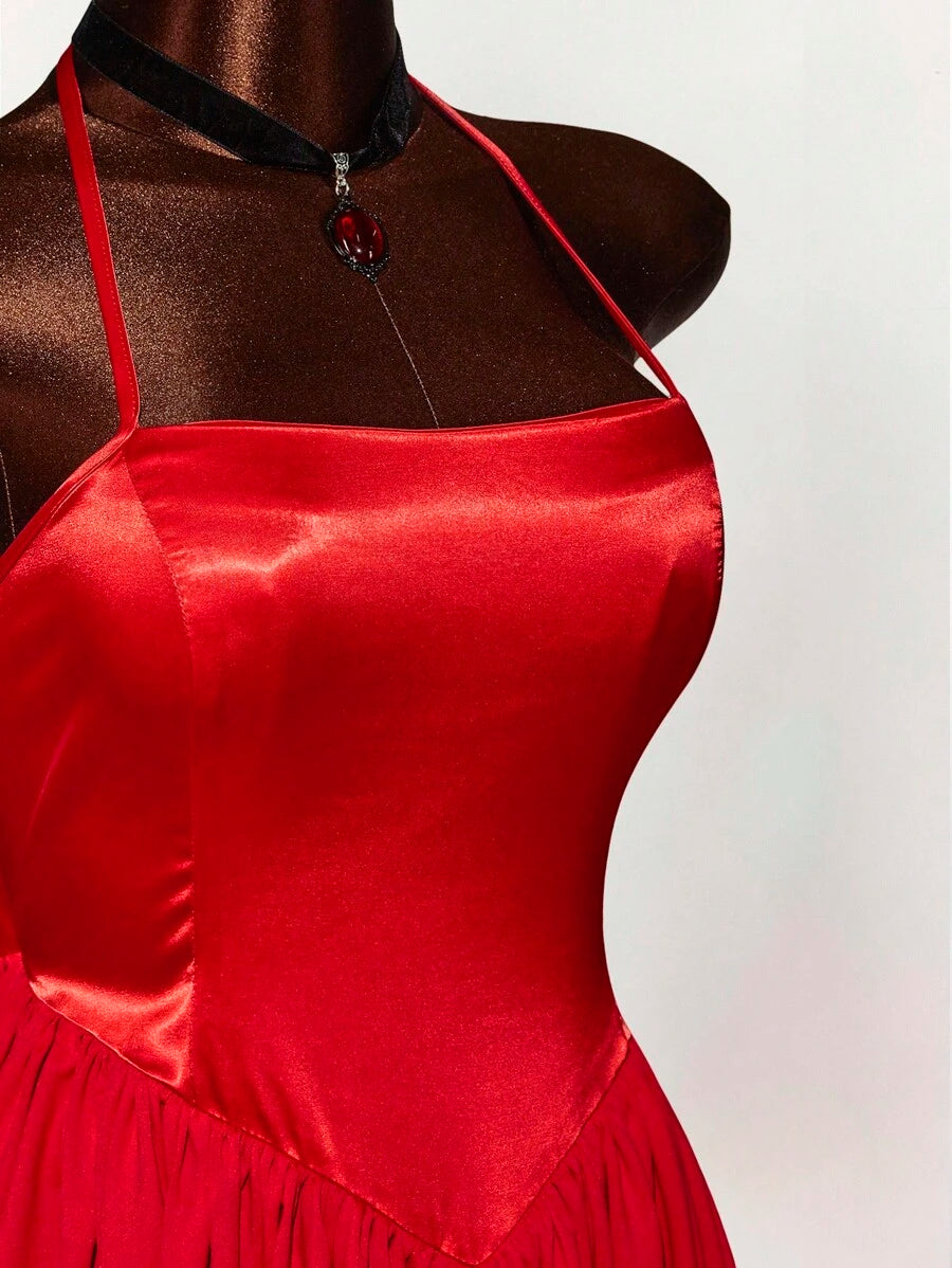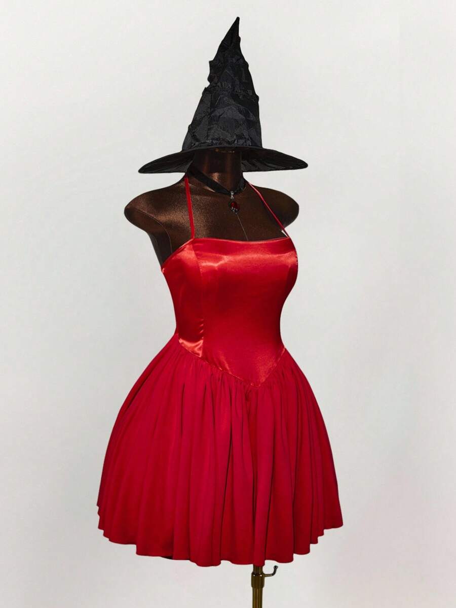 Amplova vestido de cuello halter sin espalda de unicolor talla grande, halloween