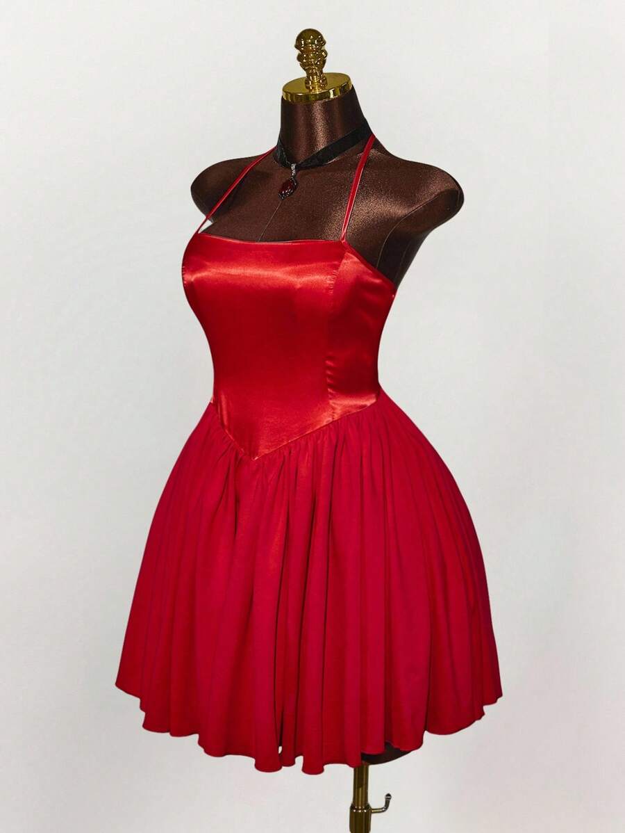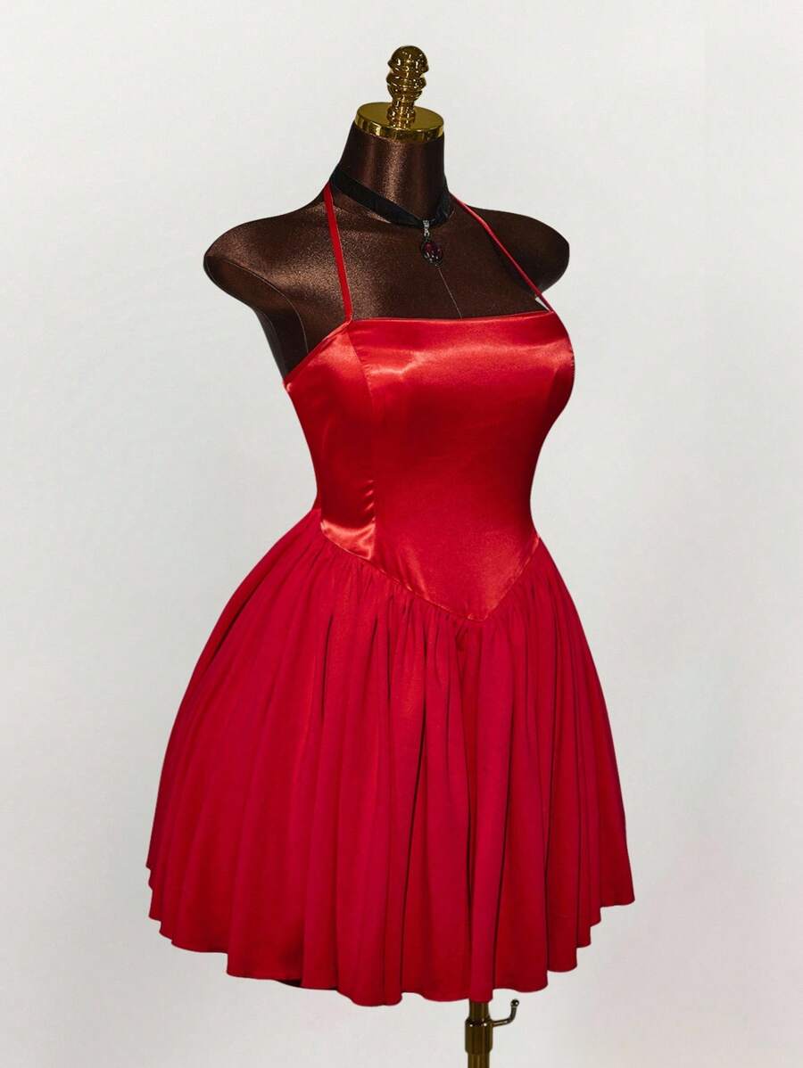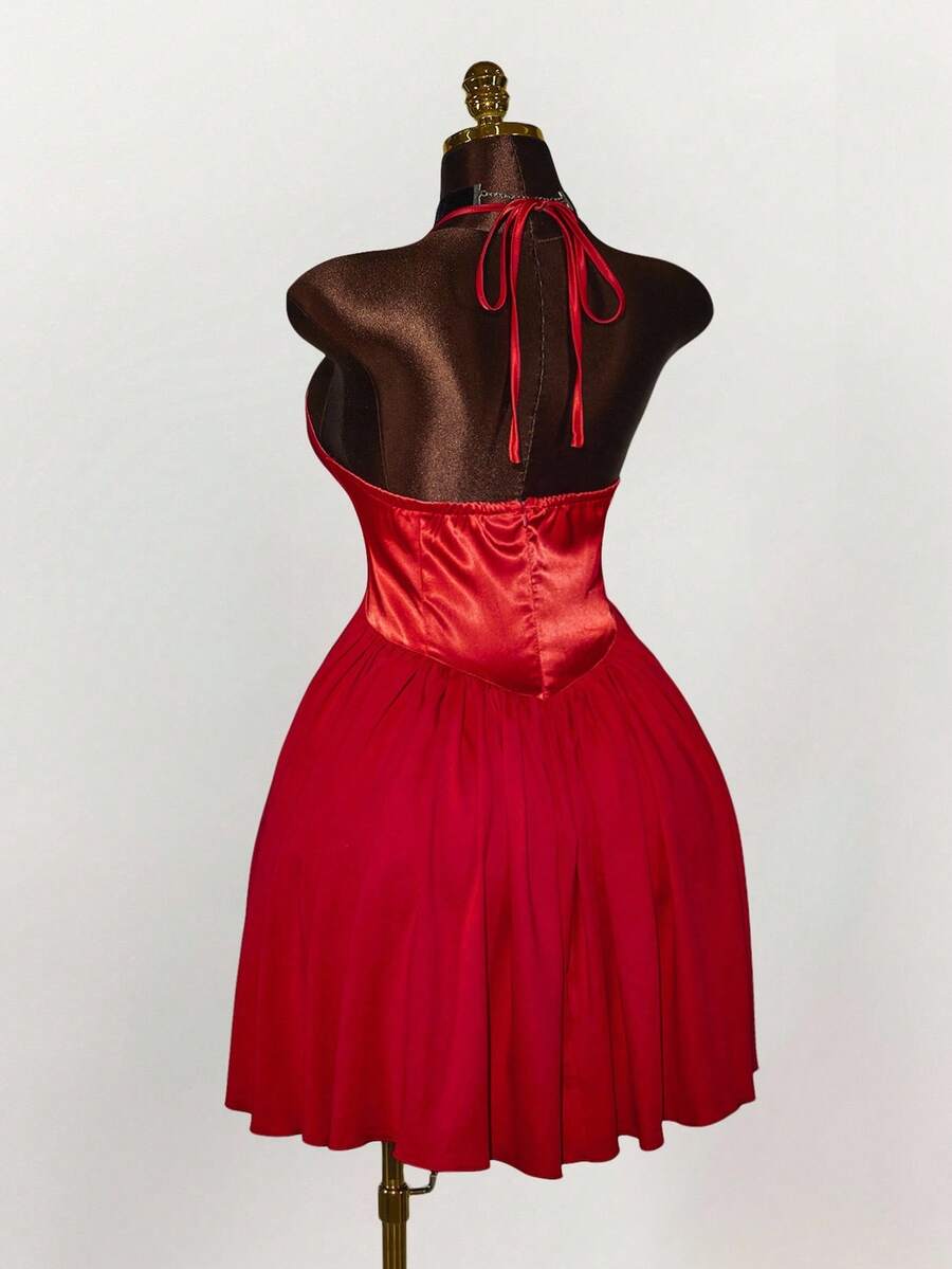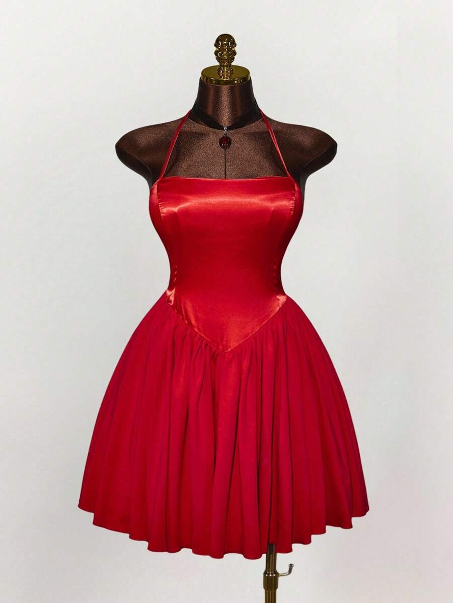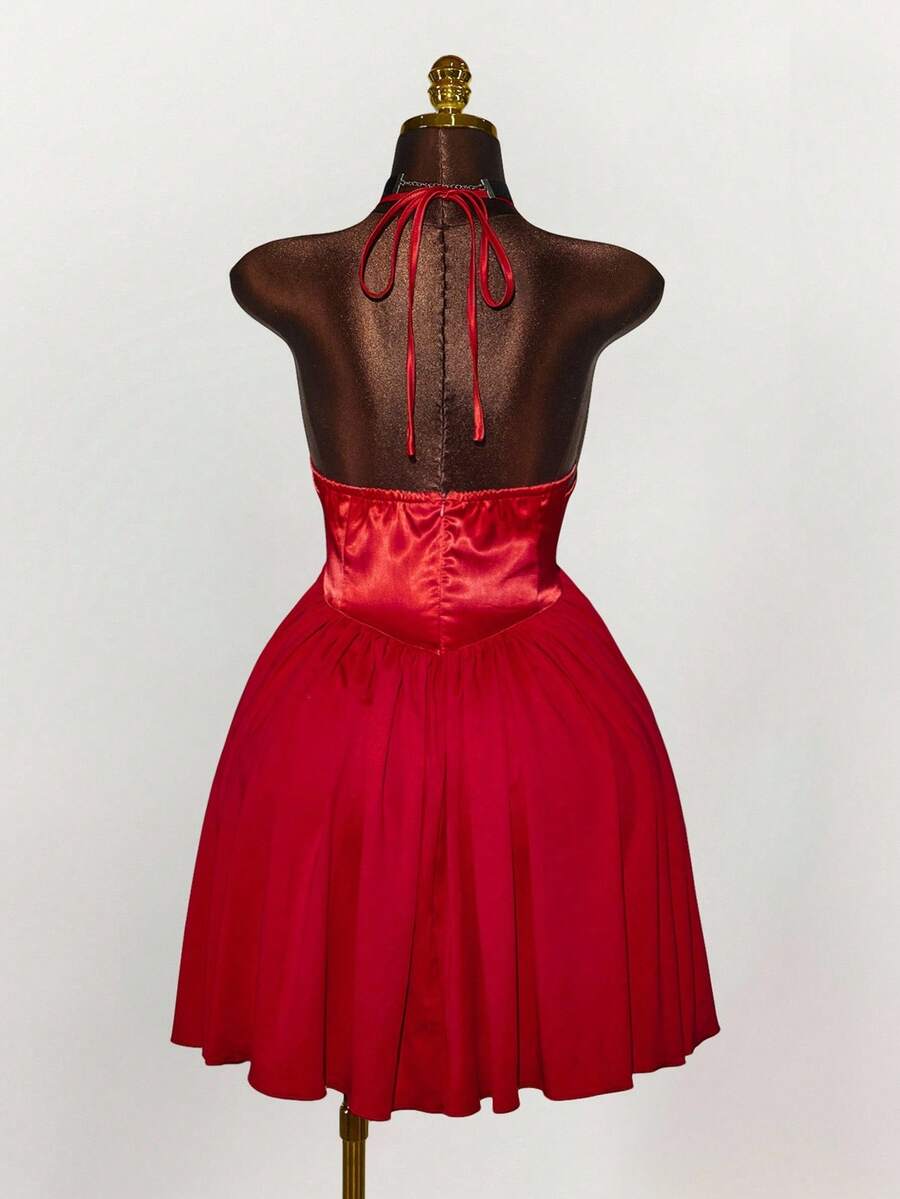 Amplova vestido de cuello halter sin espalda de unicolor talla grande, halloween