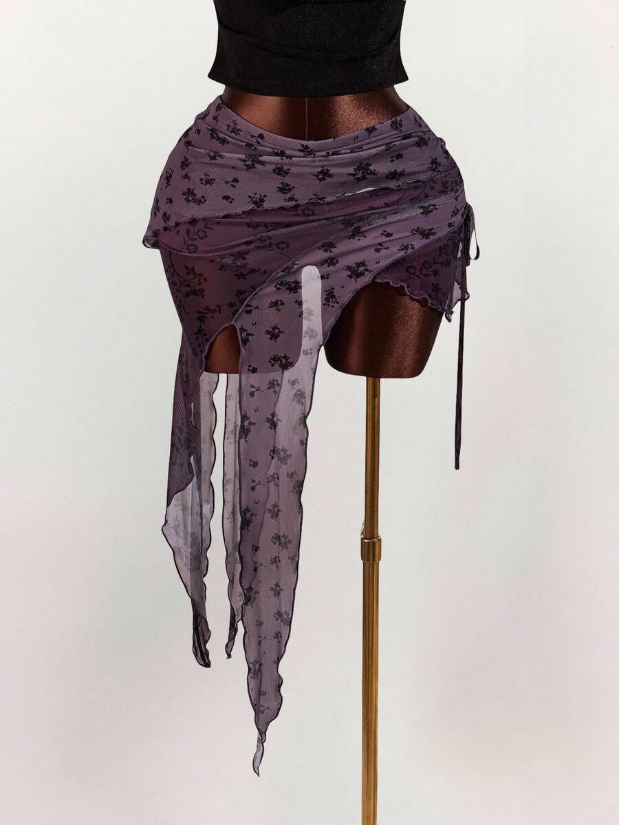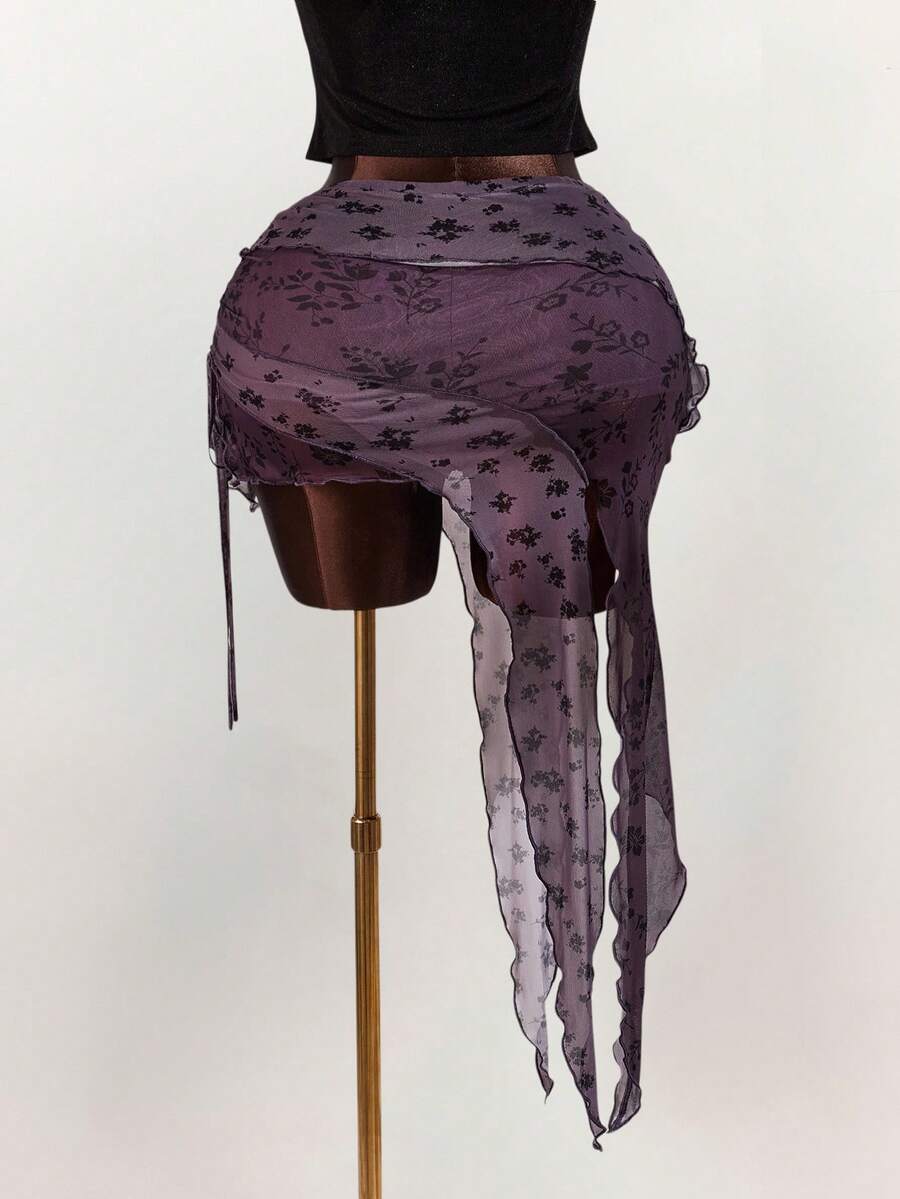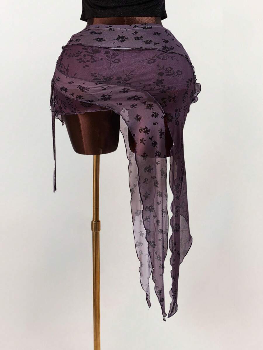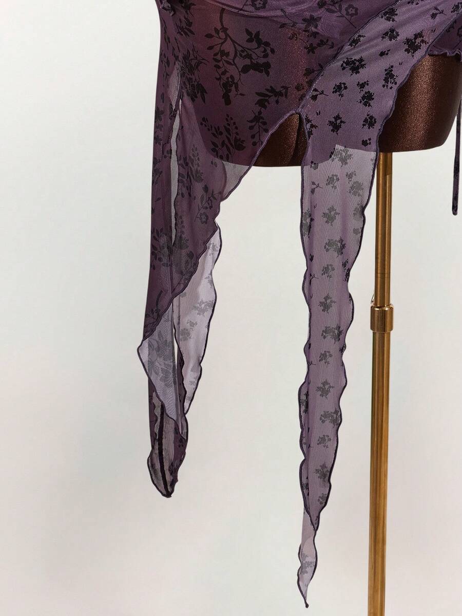 Amplova falda asimetrica de malla con estampado floral y efecto flockado para tallas grandes