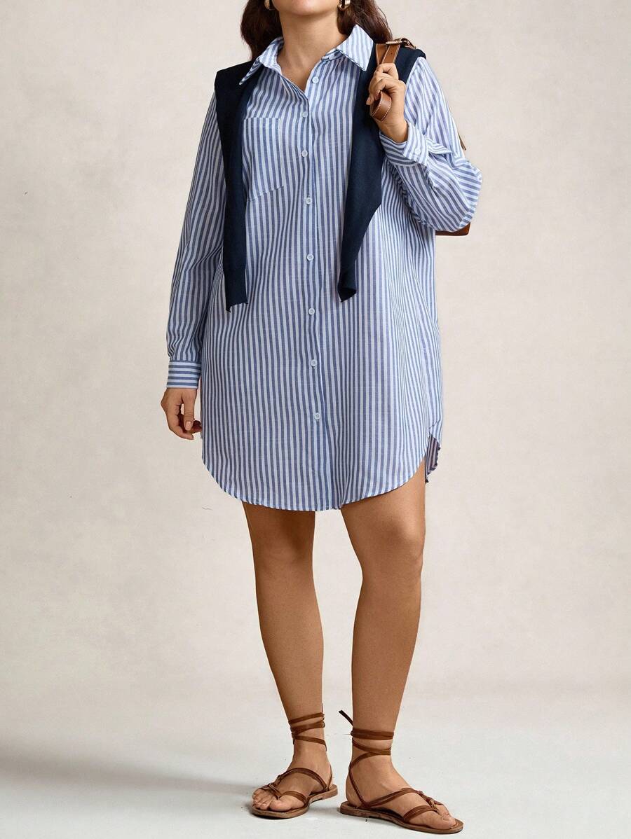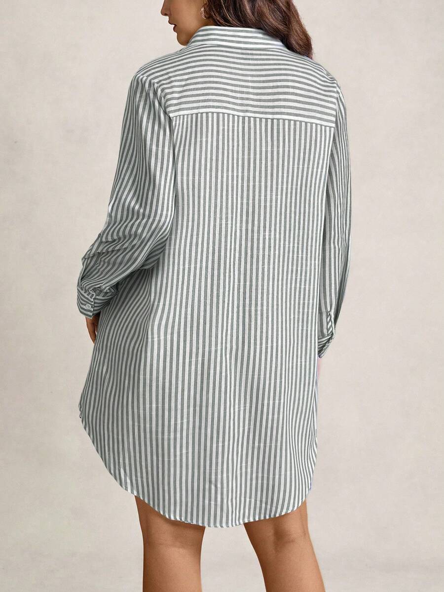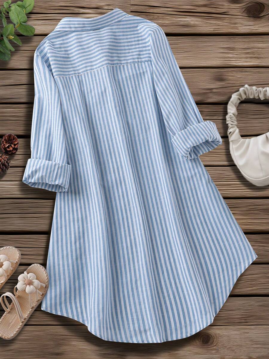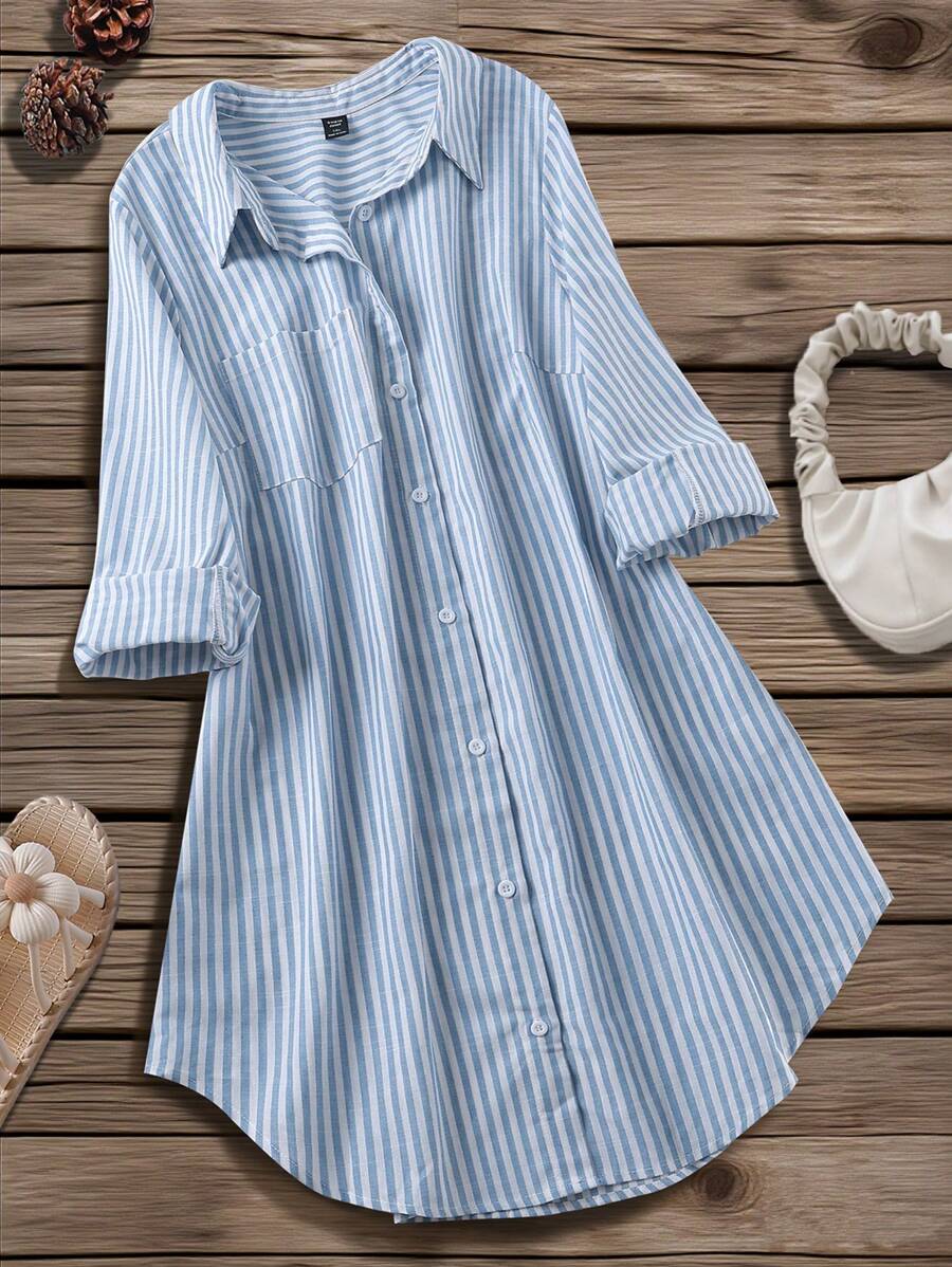 Zelara vestido azul y blanco a rayas de longitud hasta la rodilla para otono con cuello de camisa abierto, vestido azul claro para mujer con mangas, vestido azul de regreso a casa, vestido de trabajo de algodon comodo y casual para mujer, vestido de