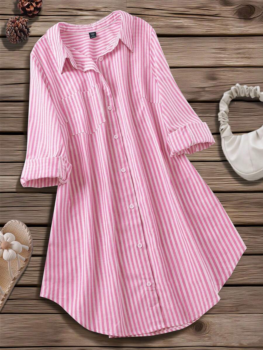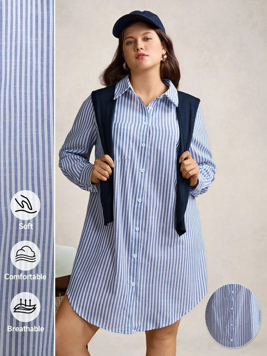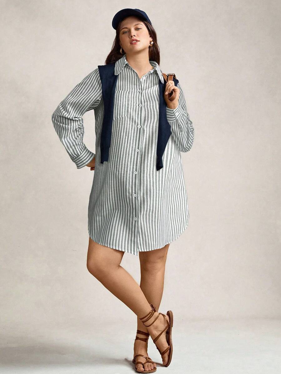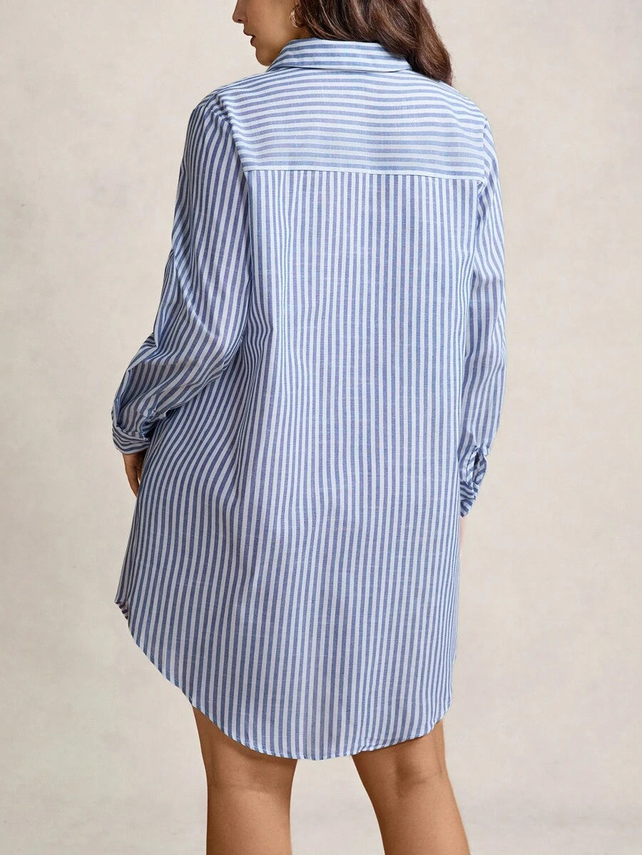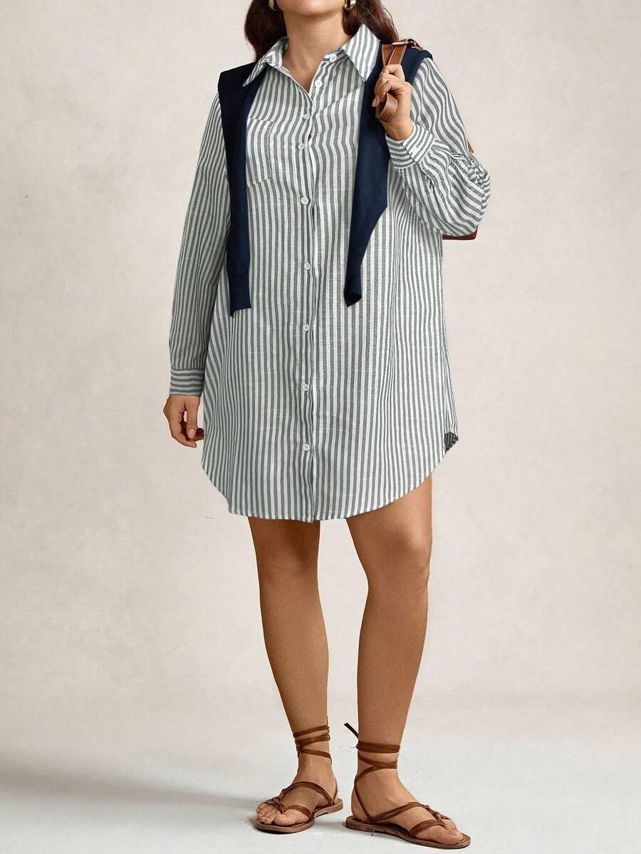 Zelara vestido azul y blanco a rayas de longitud hasta la rodilla para otono con cuello de camisa abierto, vestido azul claro para mujer con mangas, vestido azul de regreso a casa, vestido de trabajo de algodon comodo y casual para mujer, vestido de
