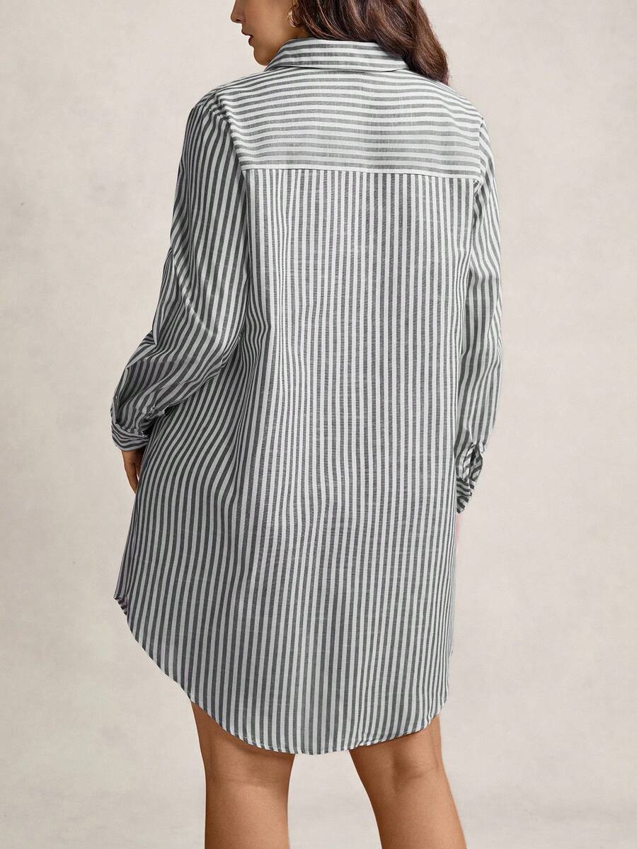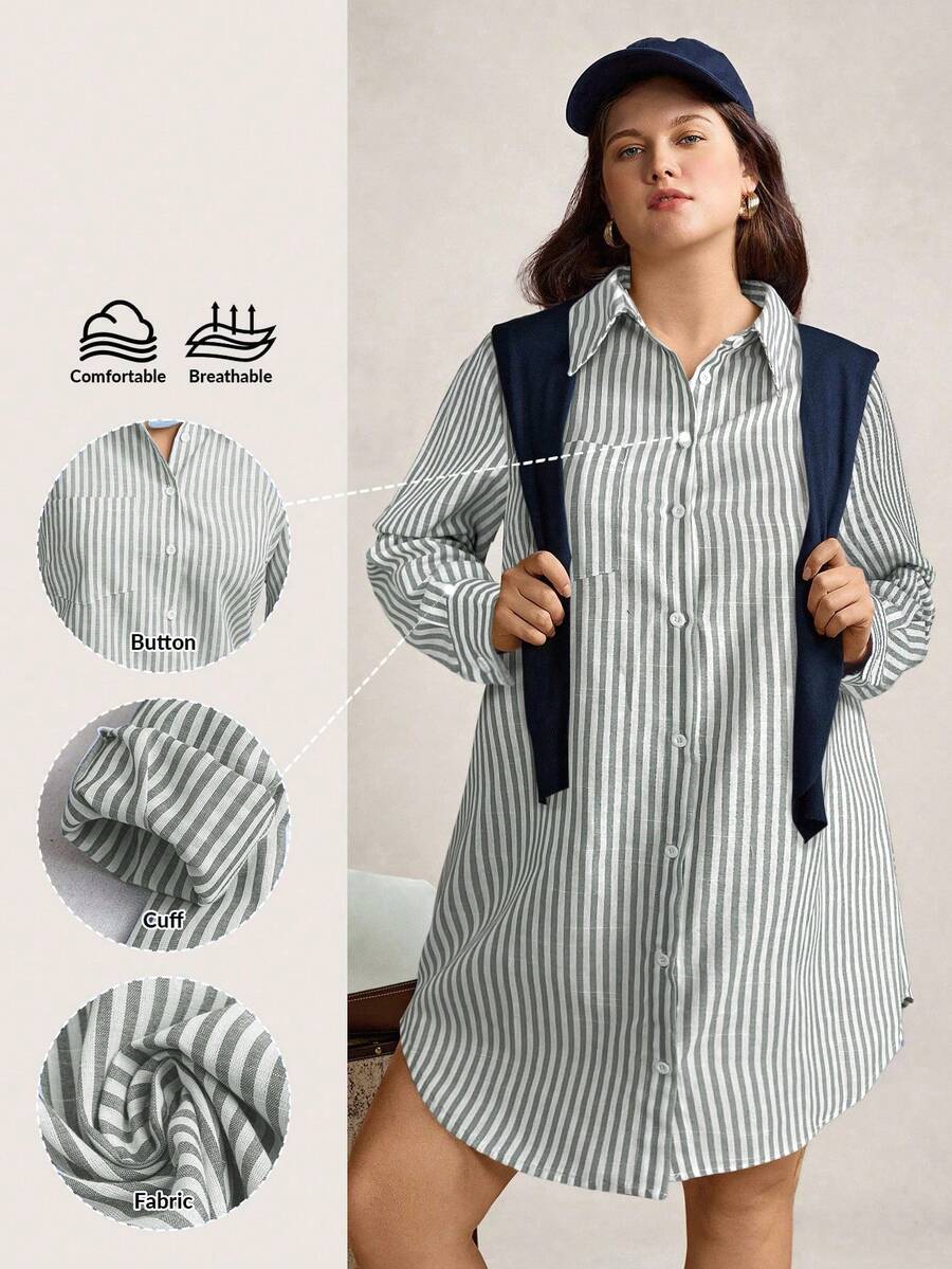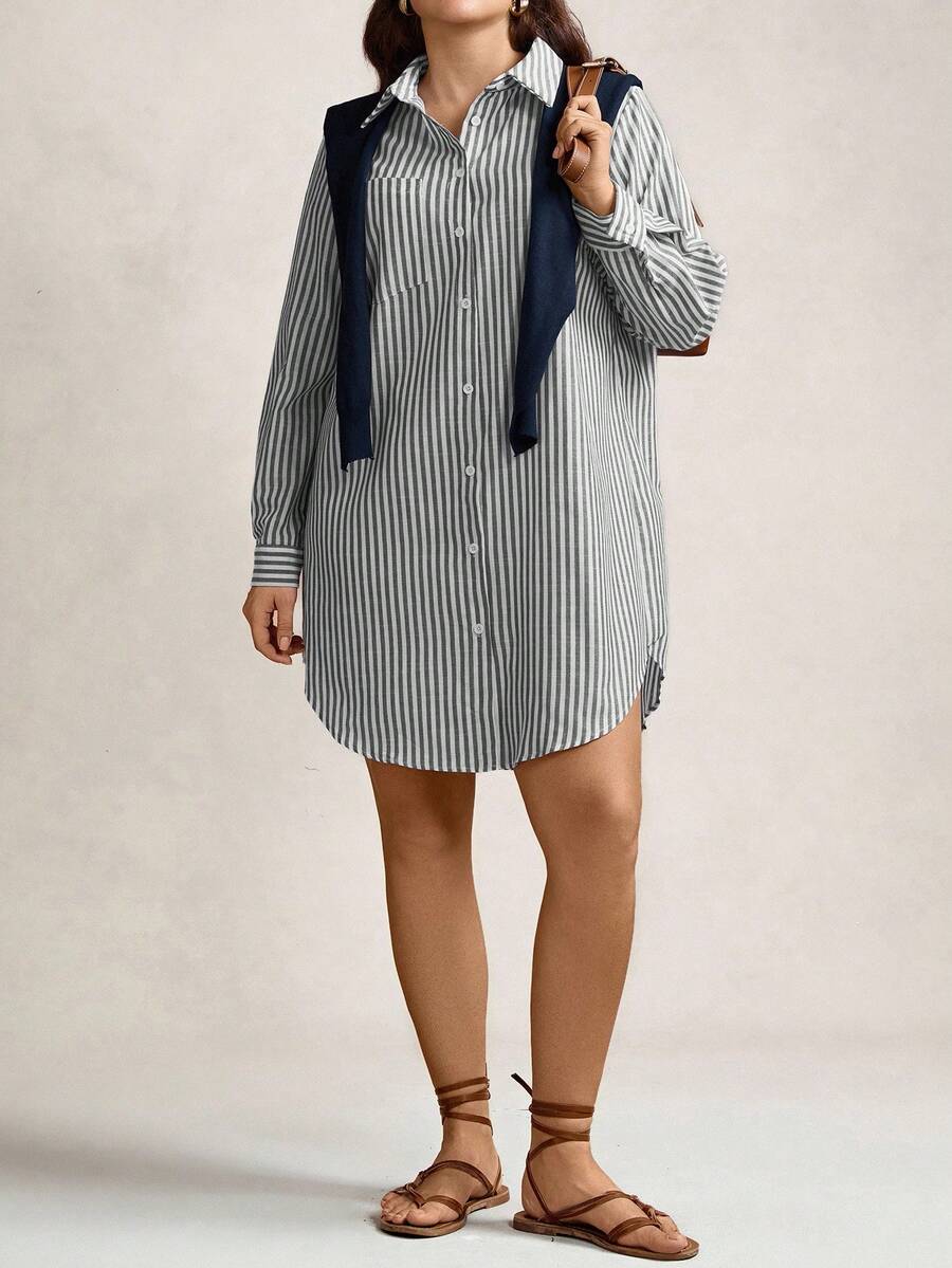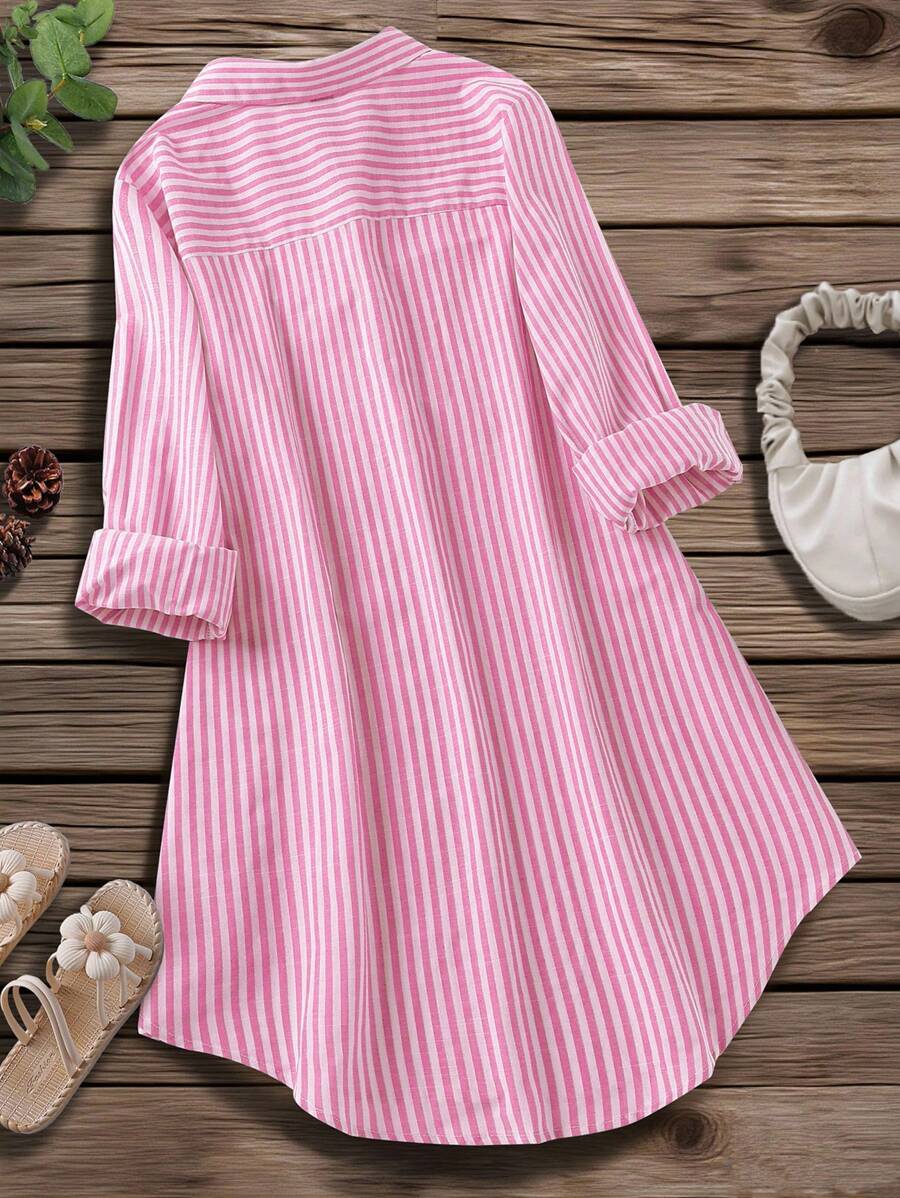 Zelara vestido azul y blanco a rayas de longitud hasta la rodilla para otono con cuello de camisa abierto, vestido azul claro para mujer con mangas, vestido azul de regreso a casa, vestido de trabajo de algodon comodo y casual para mujer, vestido de