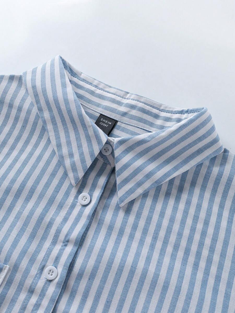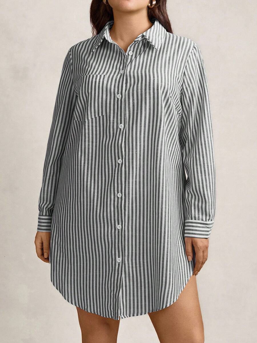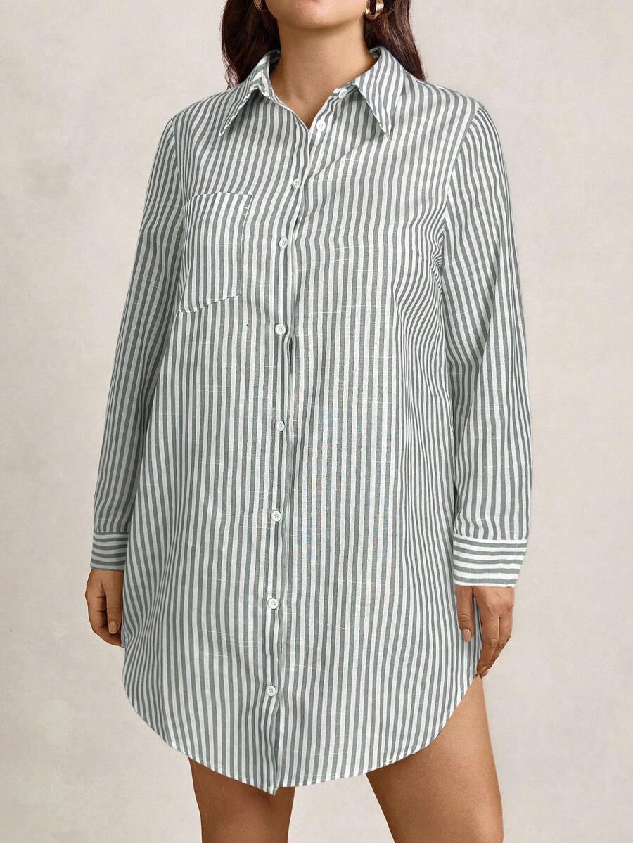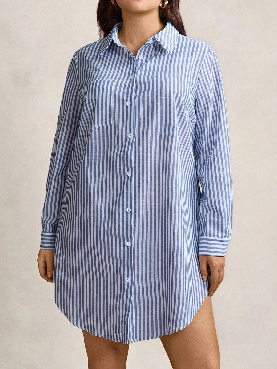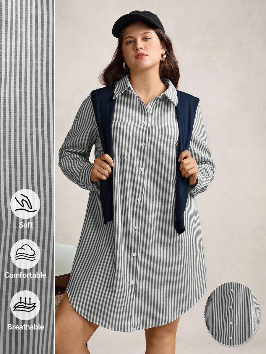 Zelara vestido azul y blanco a rayas de longitud hasta la rodilla para otono con cuello de camisa abierto, vestido azul claro para mujer con mangas, vestido azul de regreso a casa, vestido de trabajo de algodon comodo y casual para mujer, vestido de