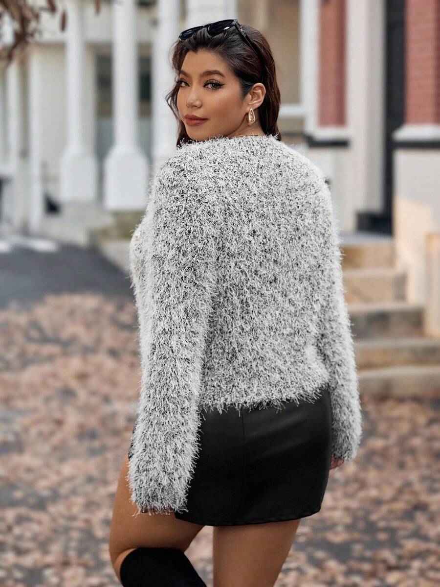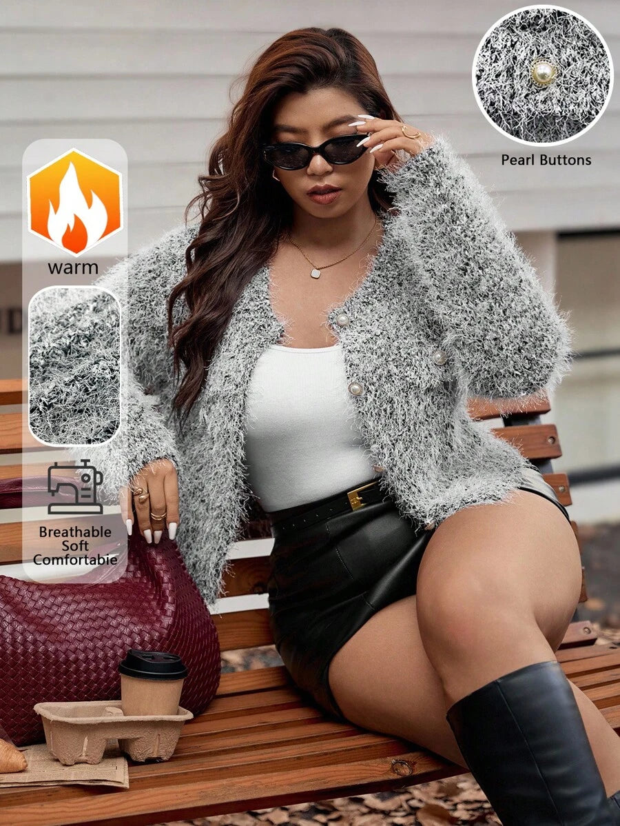 Vionelle cardigan de punto vintage elegante para mujer de talla grande, sueter de punto con hilo dorado de cuello redondo, prenda exterior versatil y casual para otono/invierno