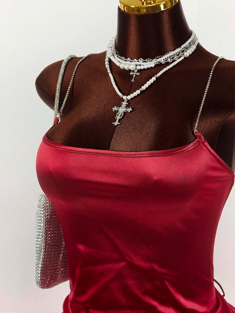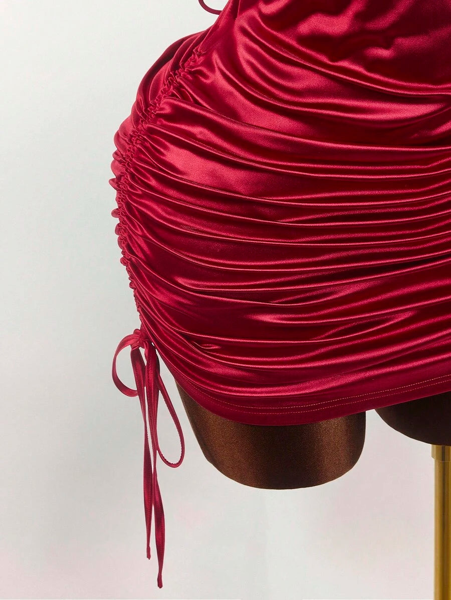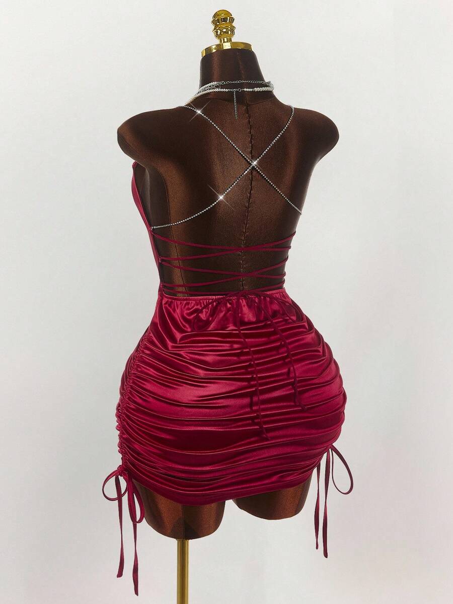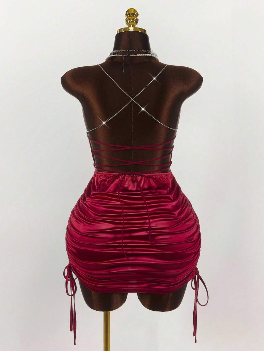 Amplova minifalda sexy de talla grande con espalda abierta y tirantes cruzados, estilo y2k