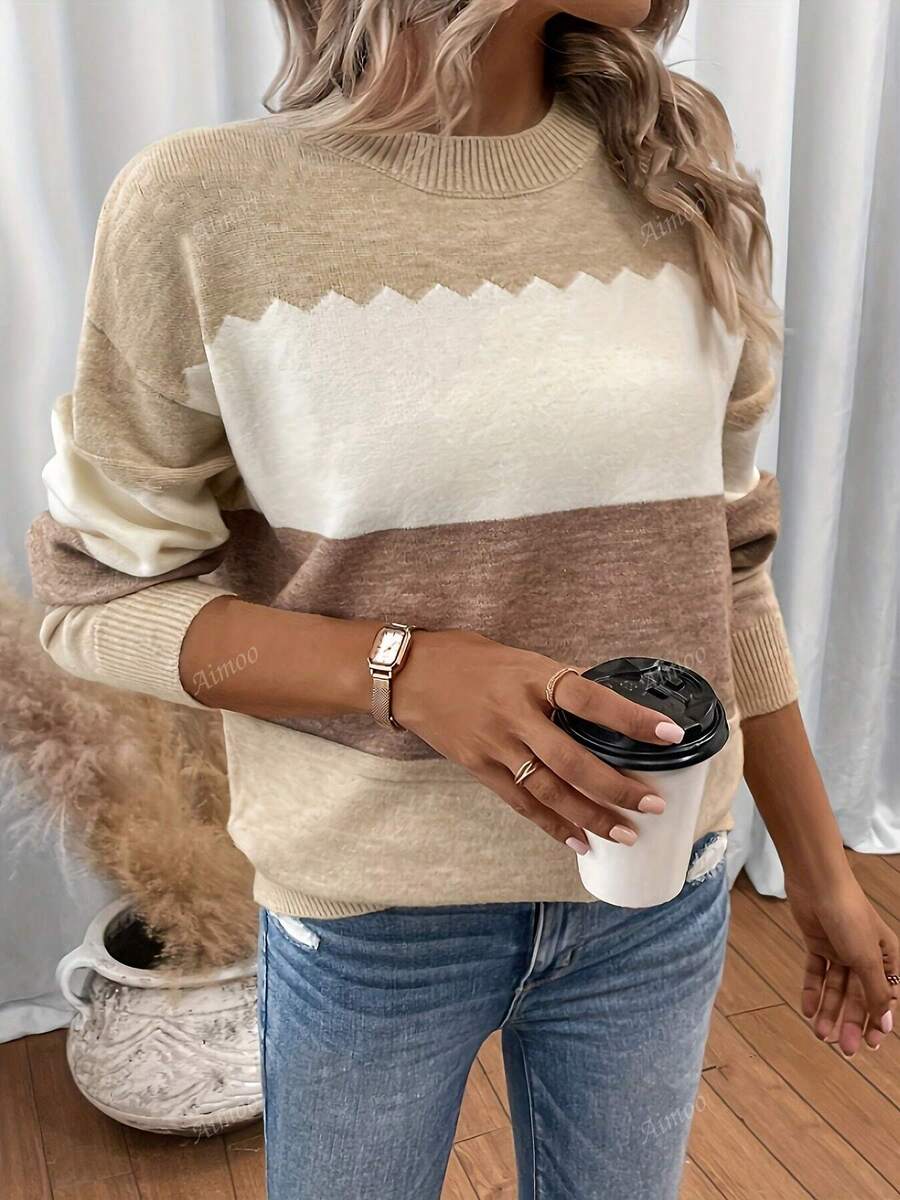 2025 nuevo sueter de punto a rayas vintage y casual, sueter de punto versatil y dulce para mujer