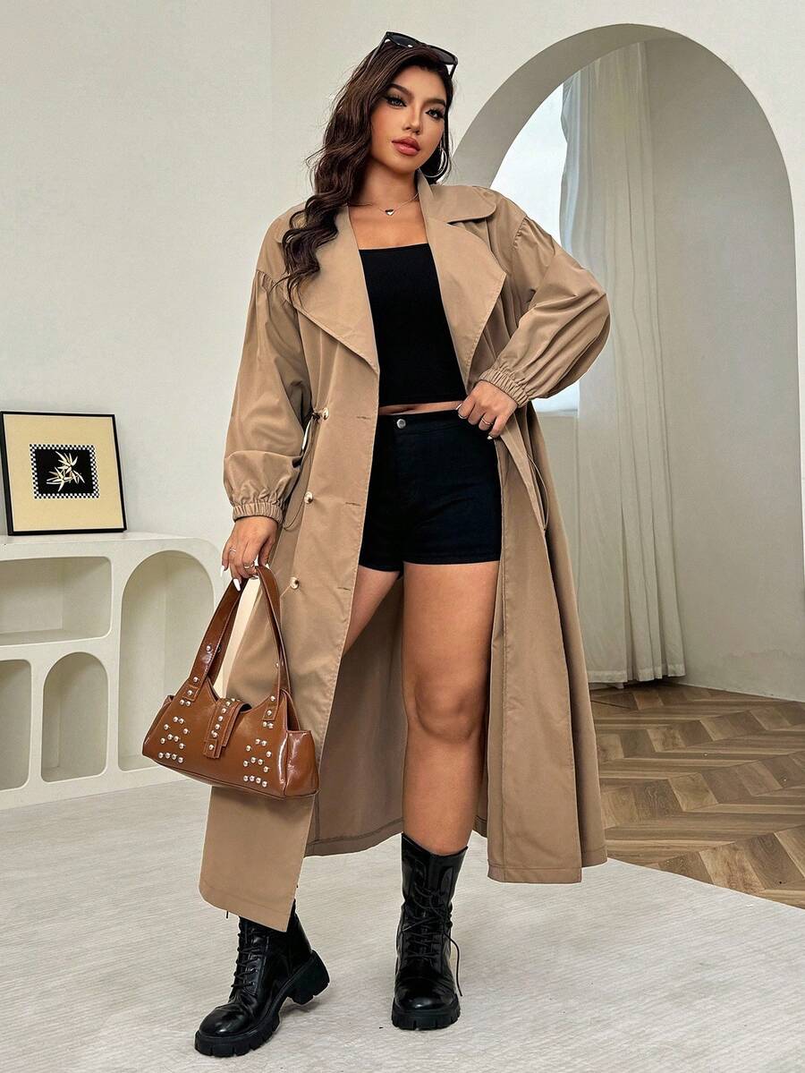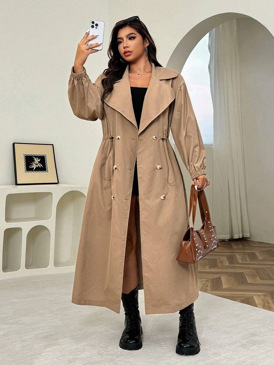 Abrigo versatil y elegante para mujer, para otono/invierno 2025, para uso casual, citas, fiestas, color caqui, cintura elastica, ajustable, largo, talla grande