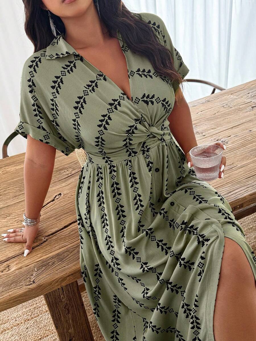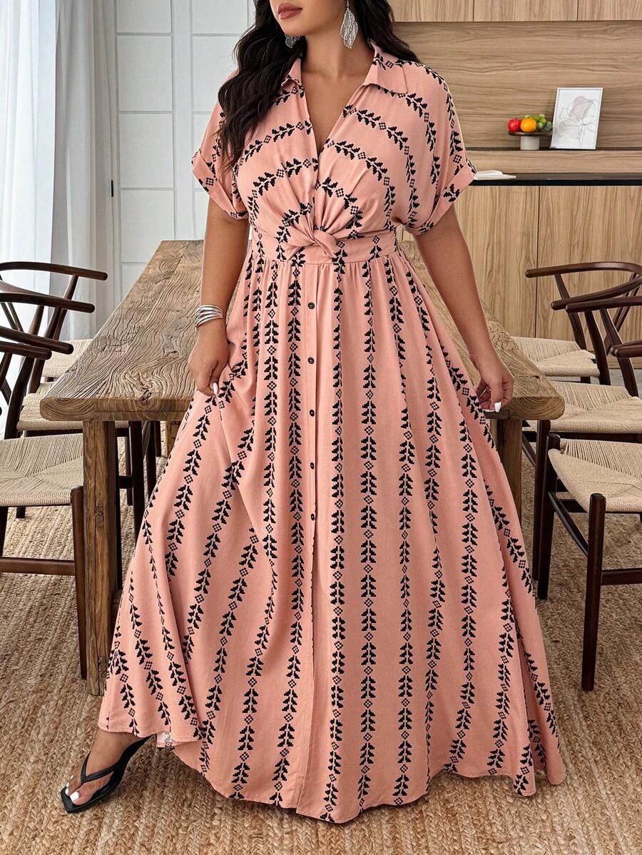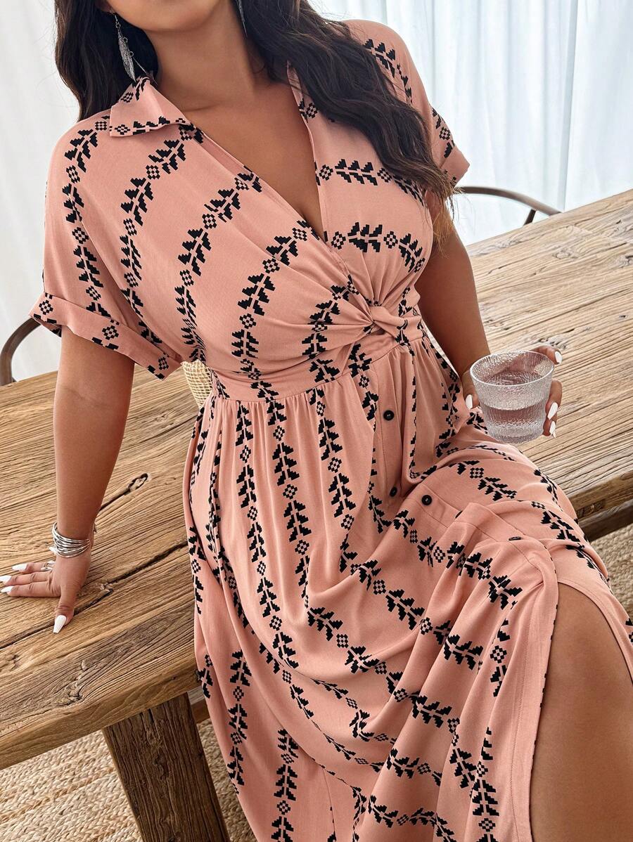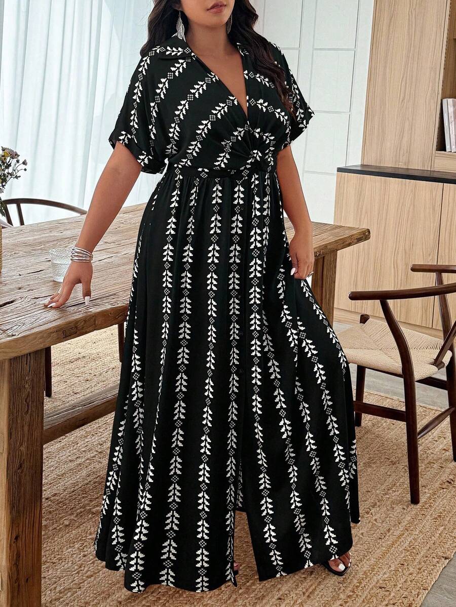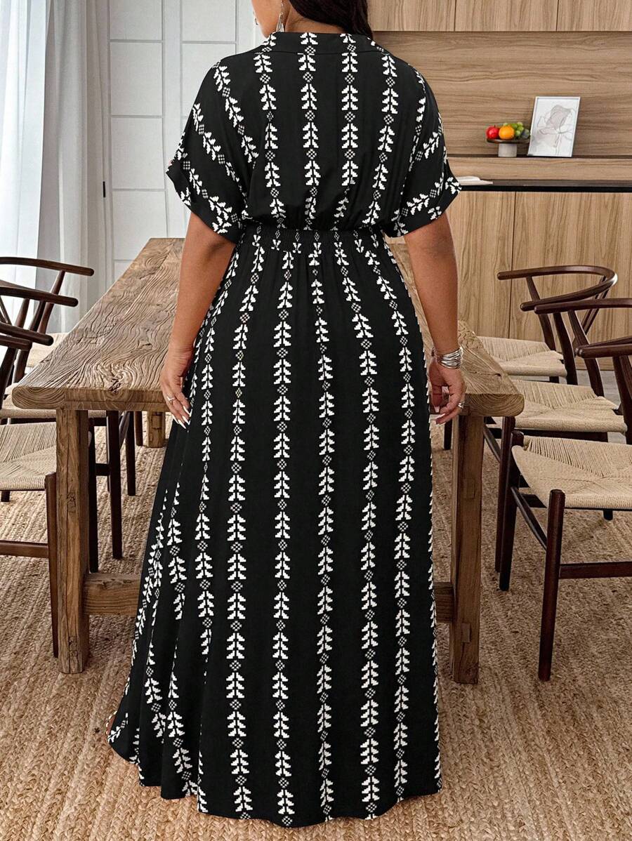 Weeklong vestido casual de manga de murcielago con estampado geometrico para mujer de talla grande, estampado aleatorio