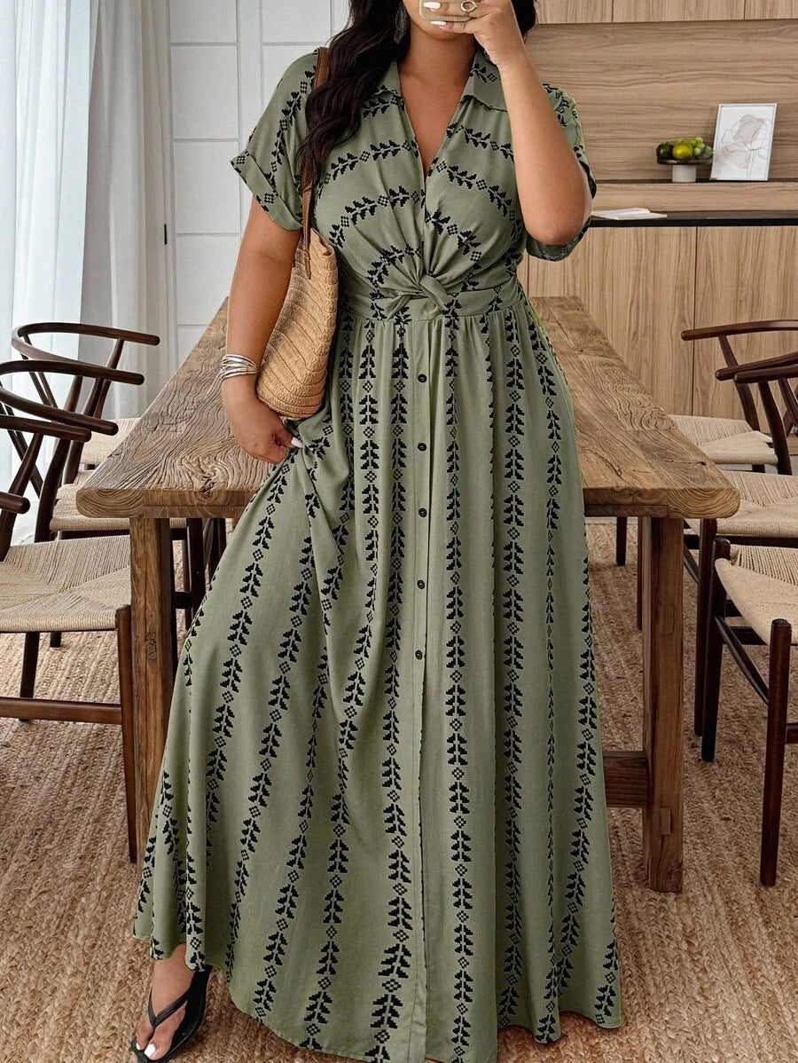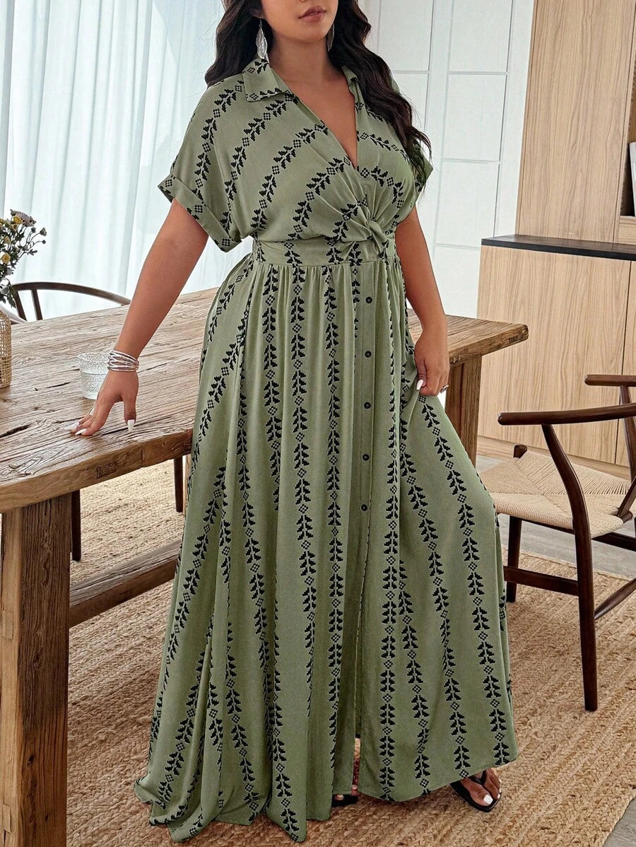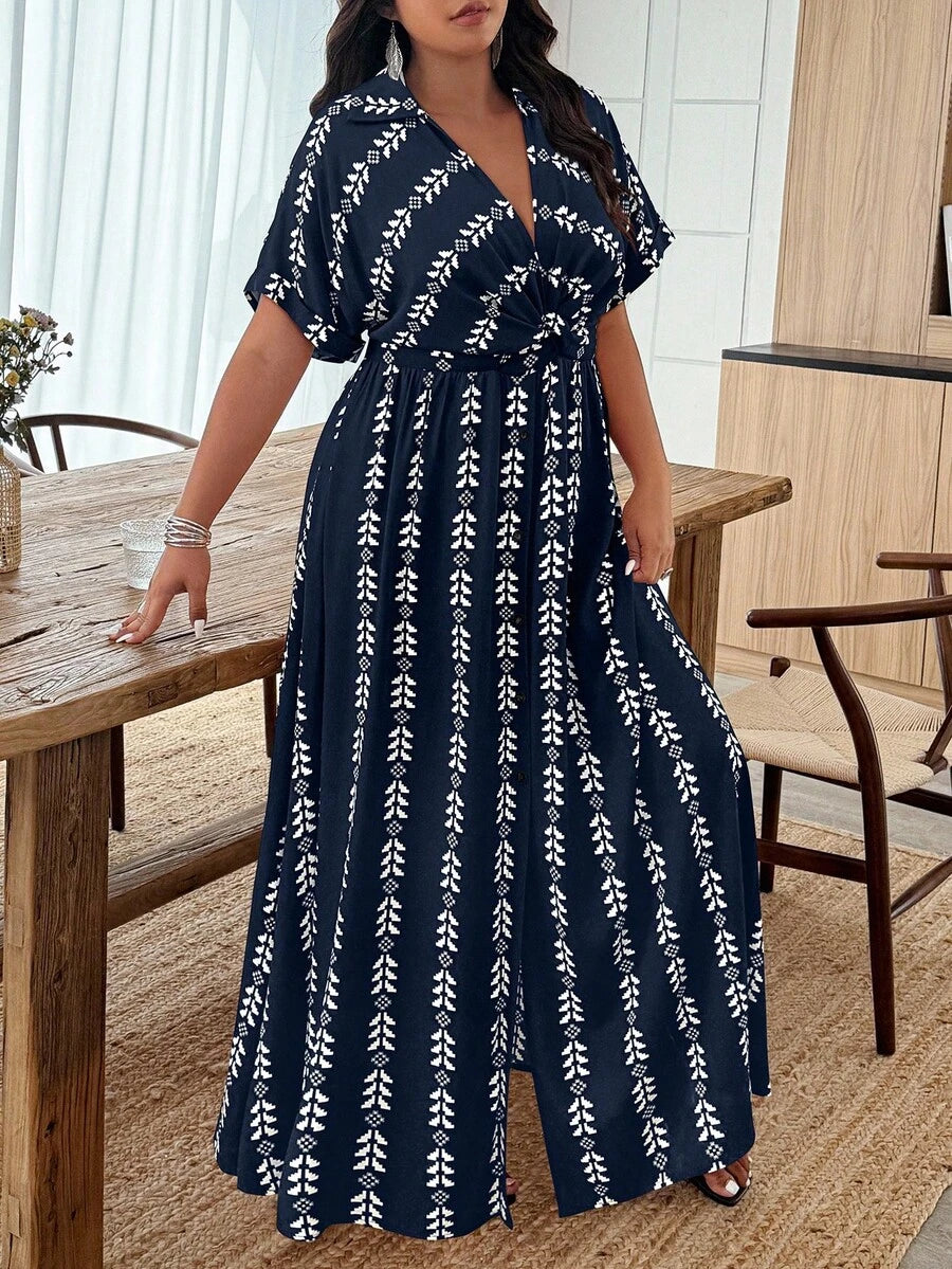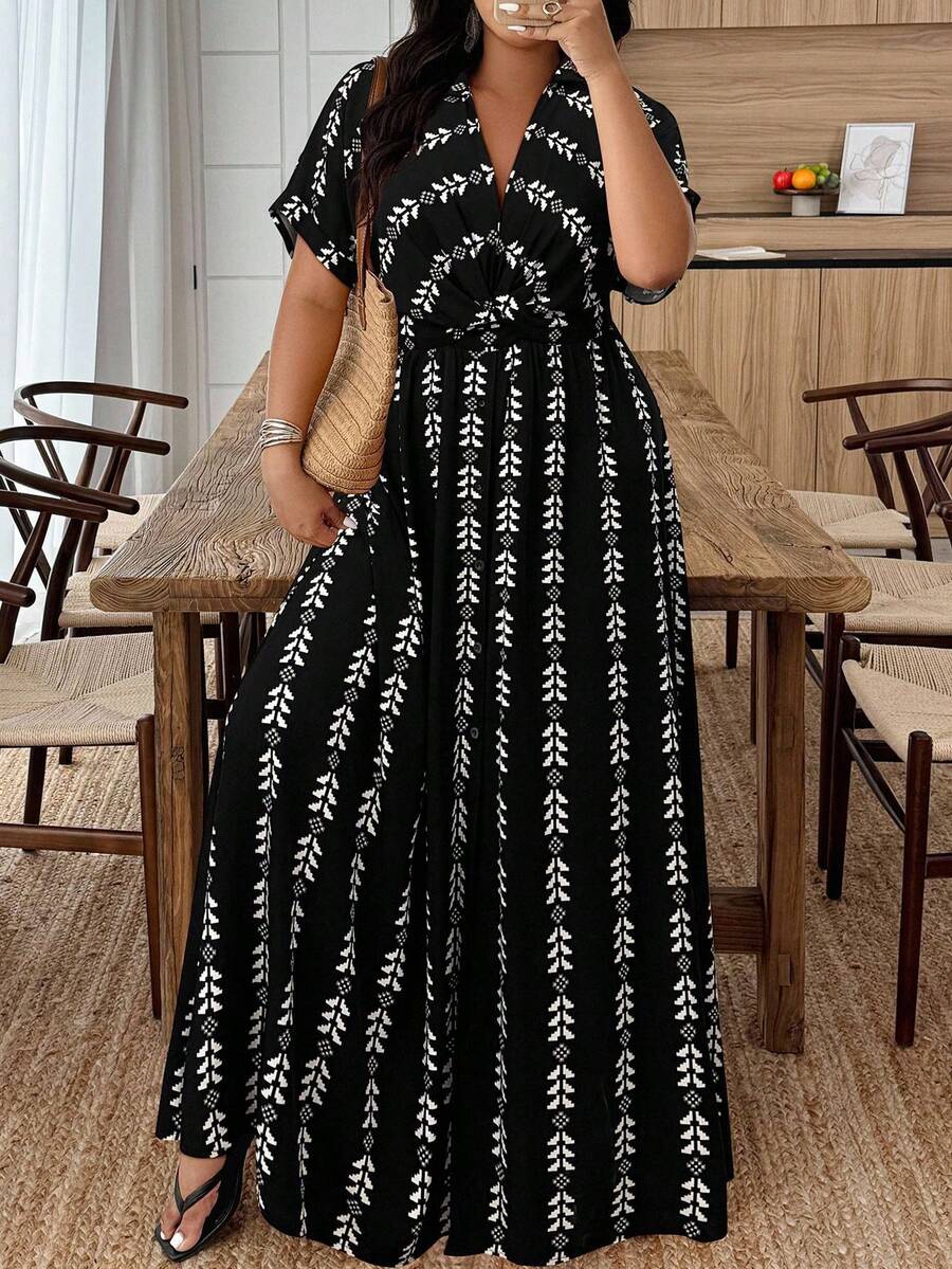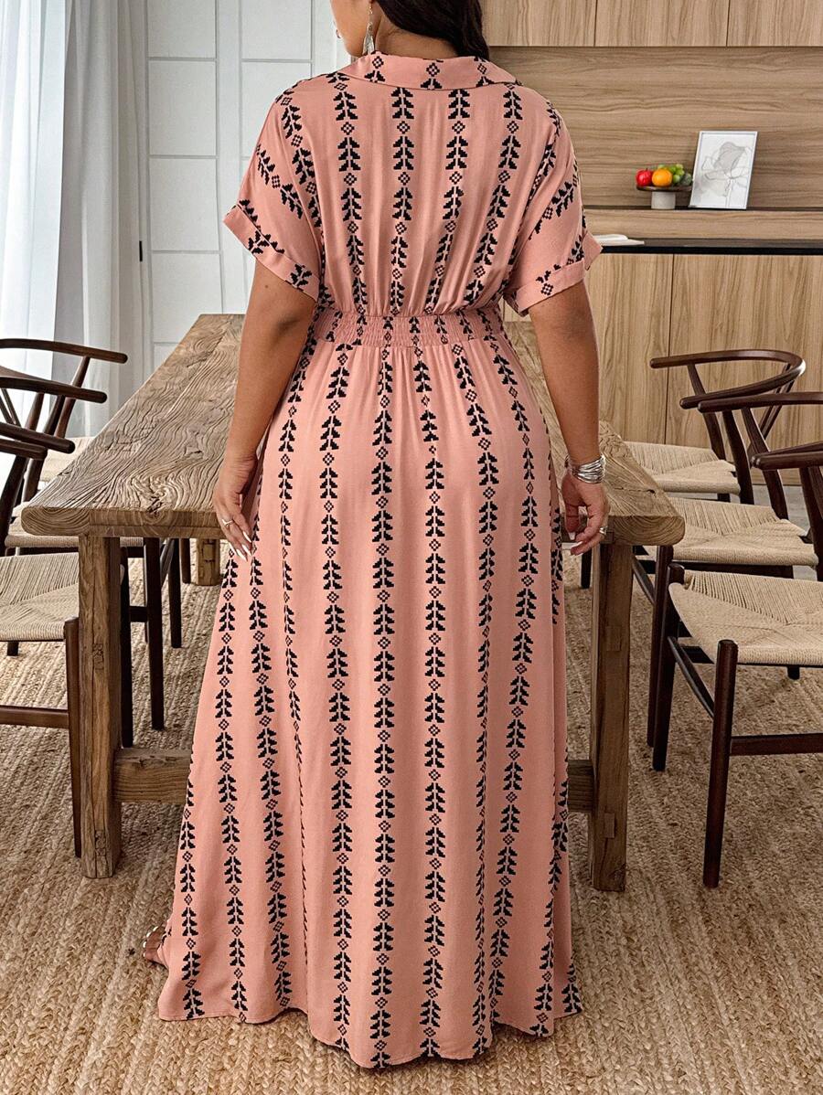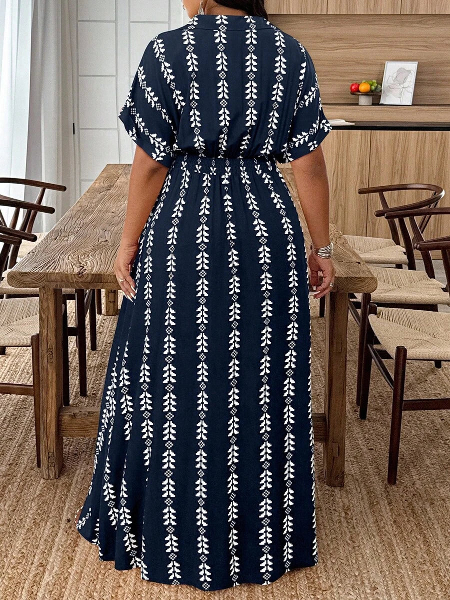 Weeklong vestido casual de manga de murcielago con estampado geometrico para mujer de talla grande, estampado aleatorio