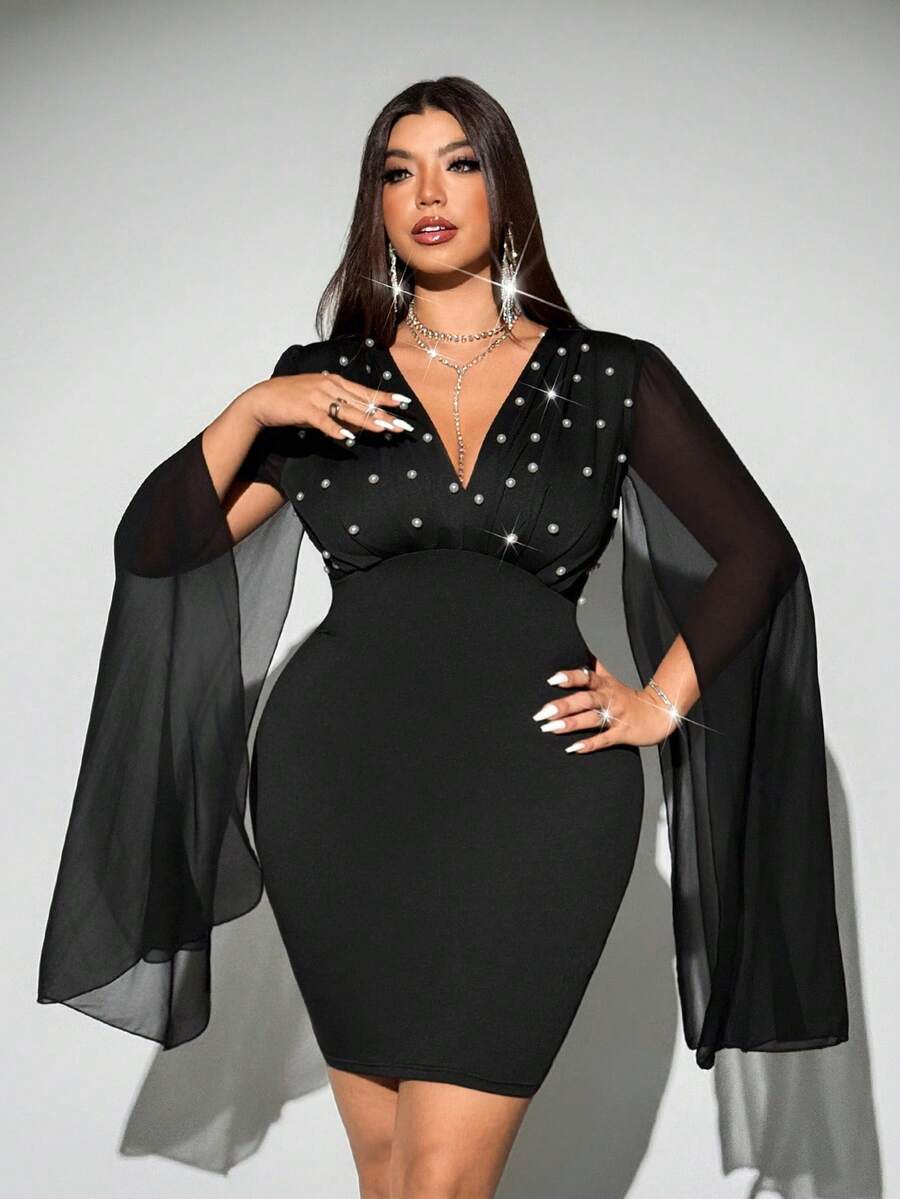 Viva relle vestido mini ajustado sexy con buzos con capucha y decoracion de perlas aleatorias para mujer de talla grande