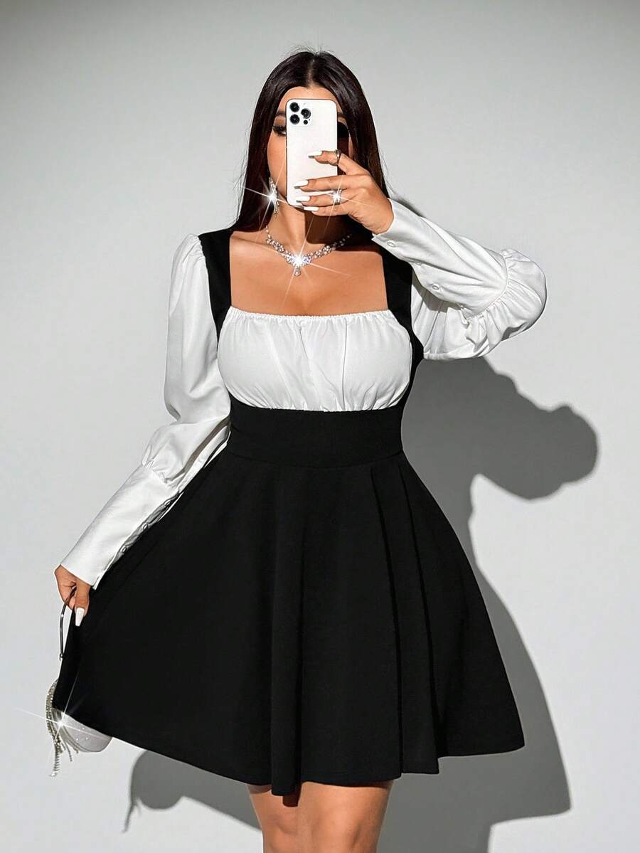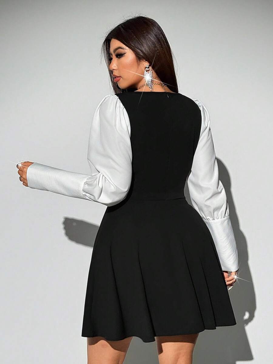 Viva relle vestido elegante de manga larga con bloqueo de color y cintura cenida para tallas grandes
