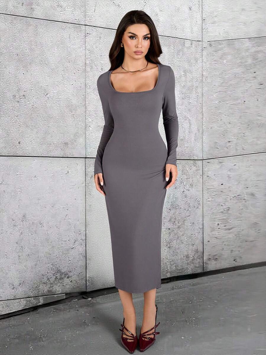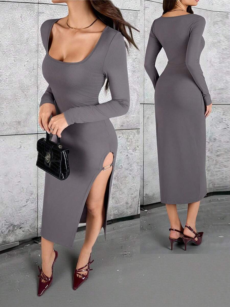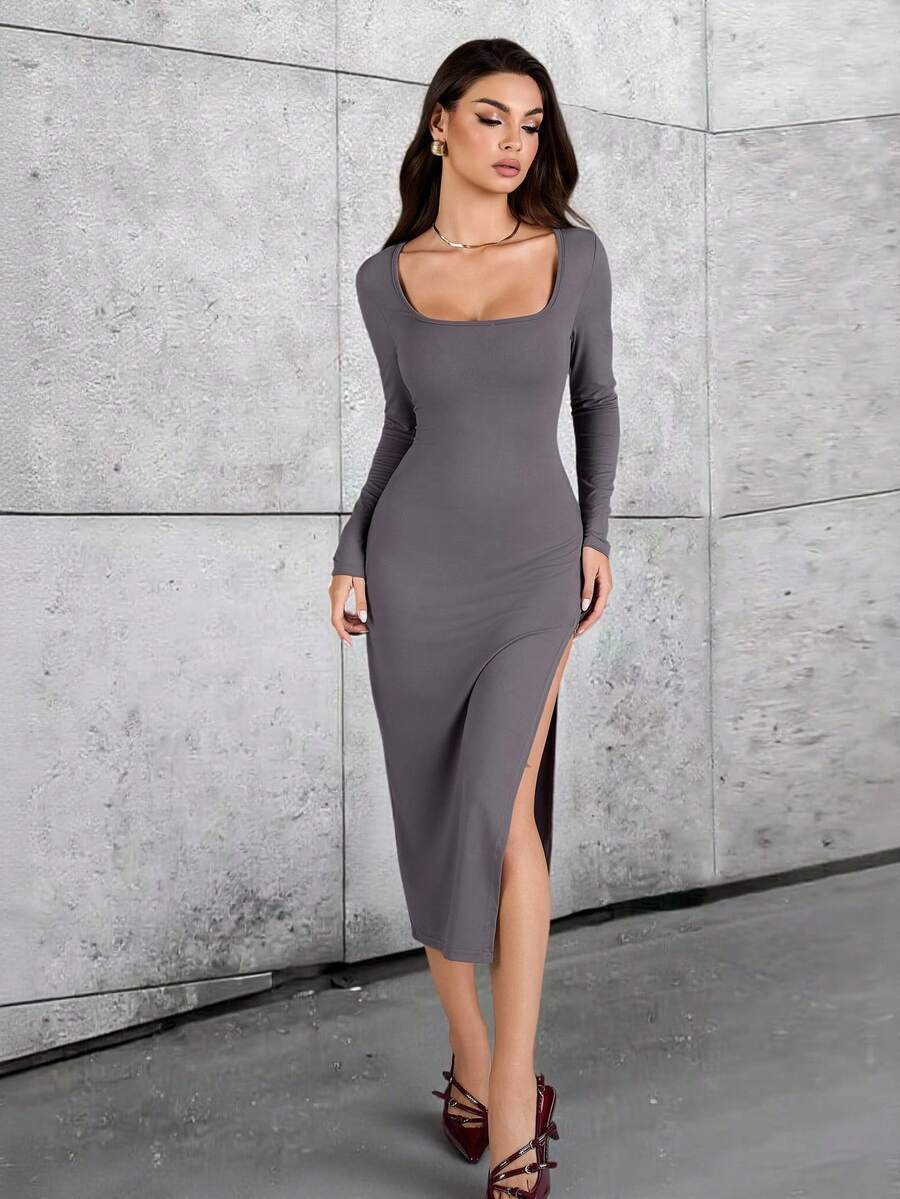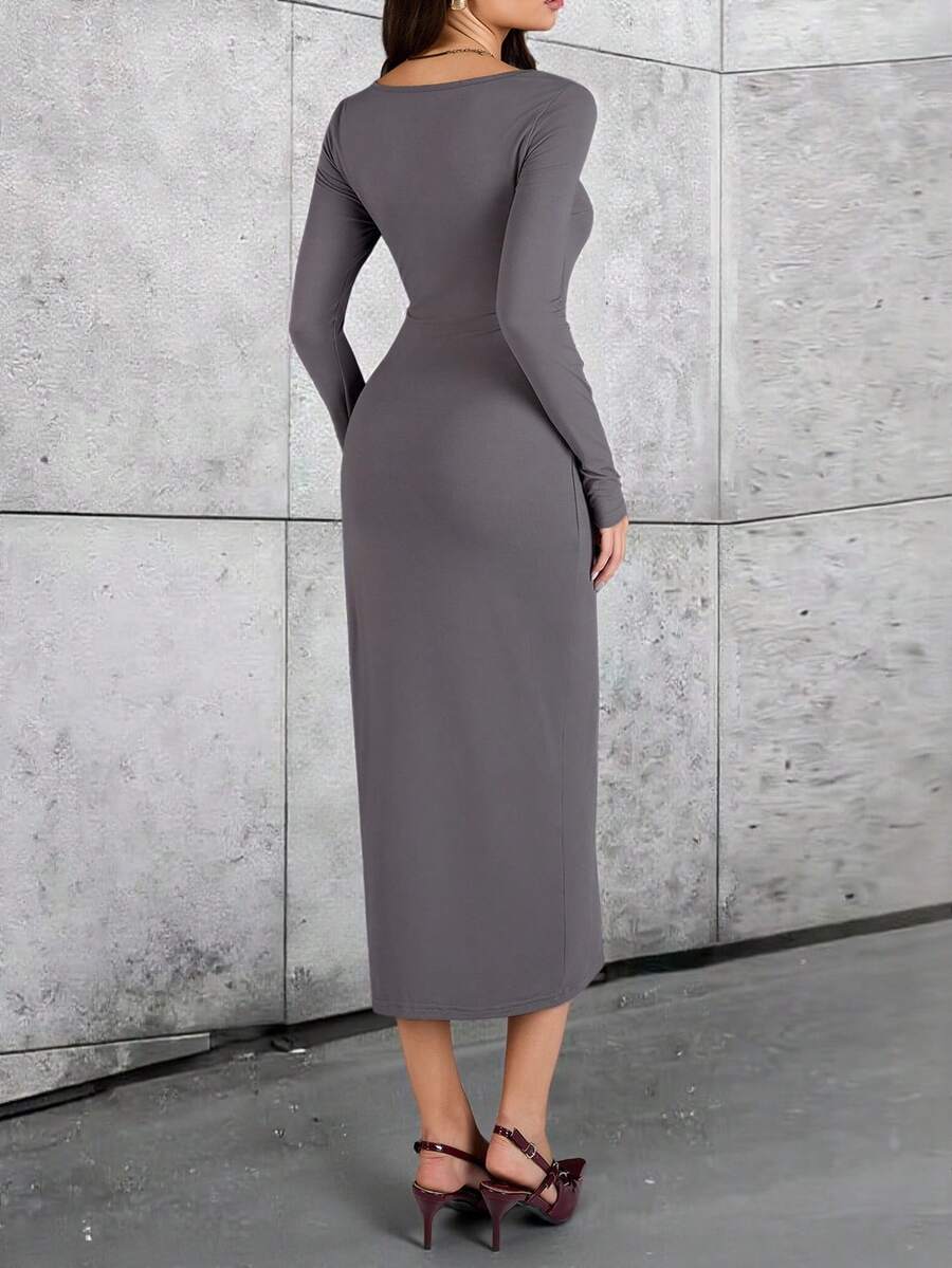 Vestido de talla ajustada de longitud media con abertura lateral de unicolor elegante para uso diario