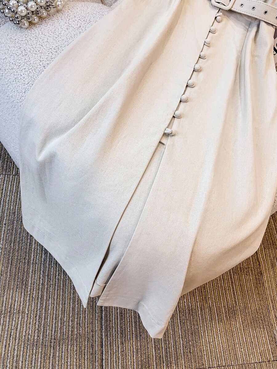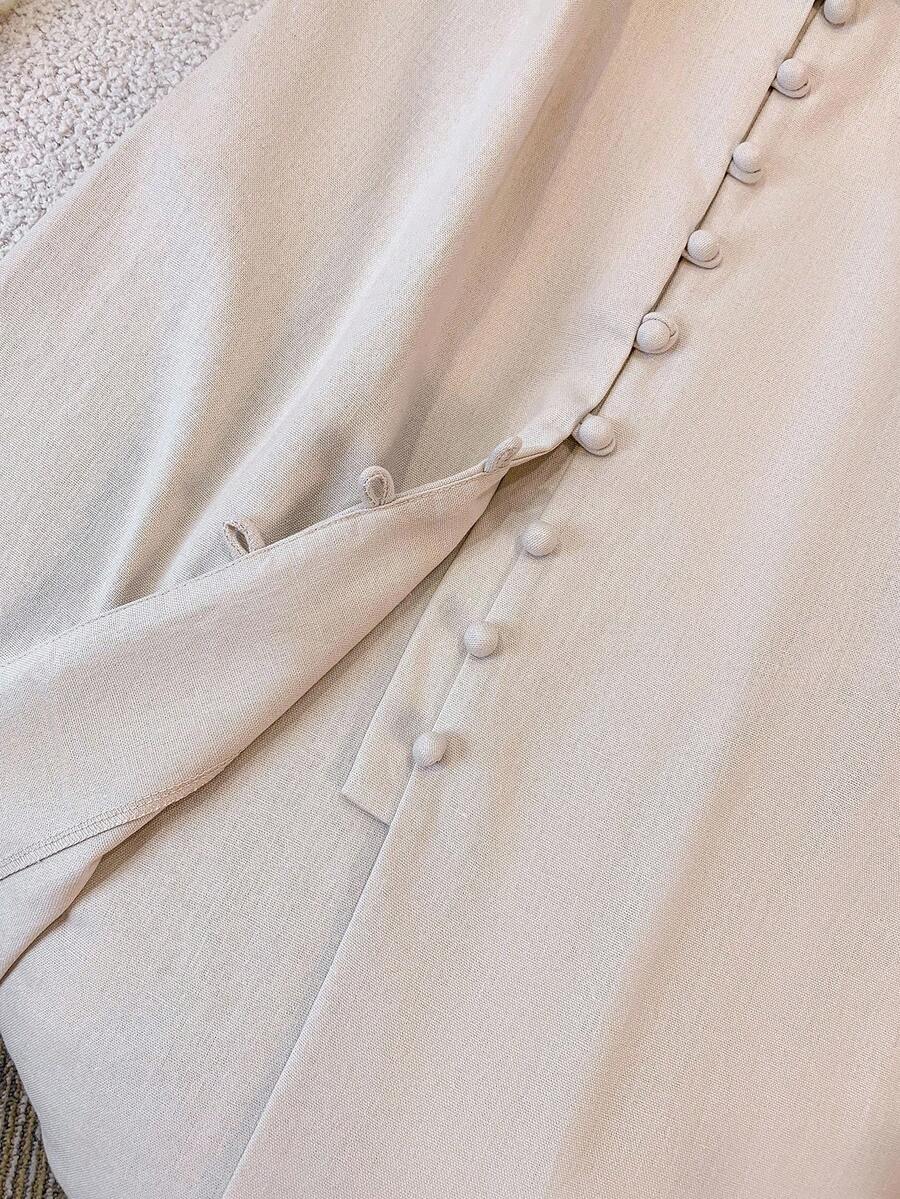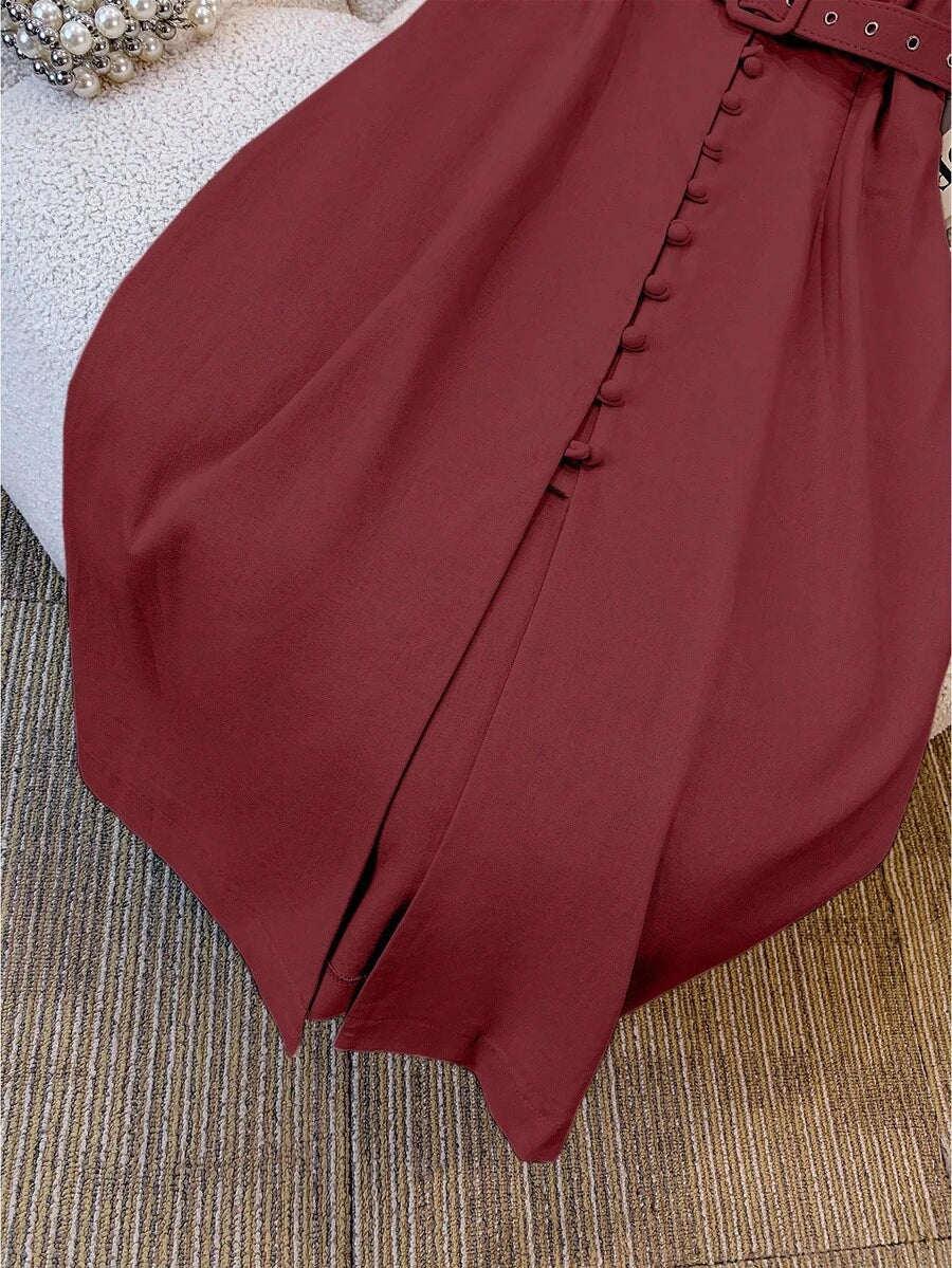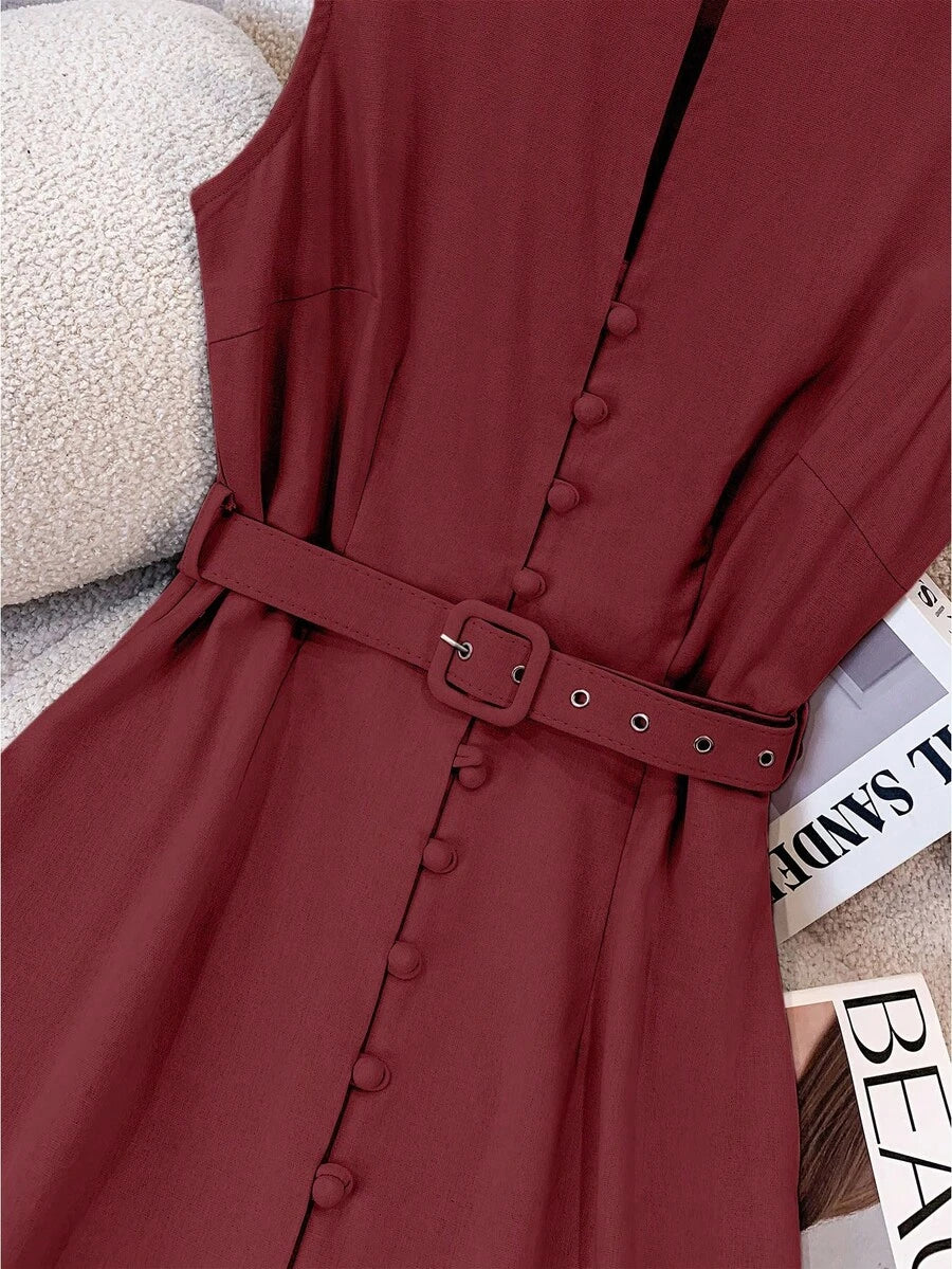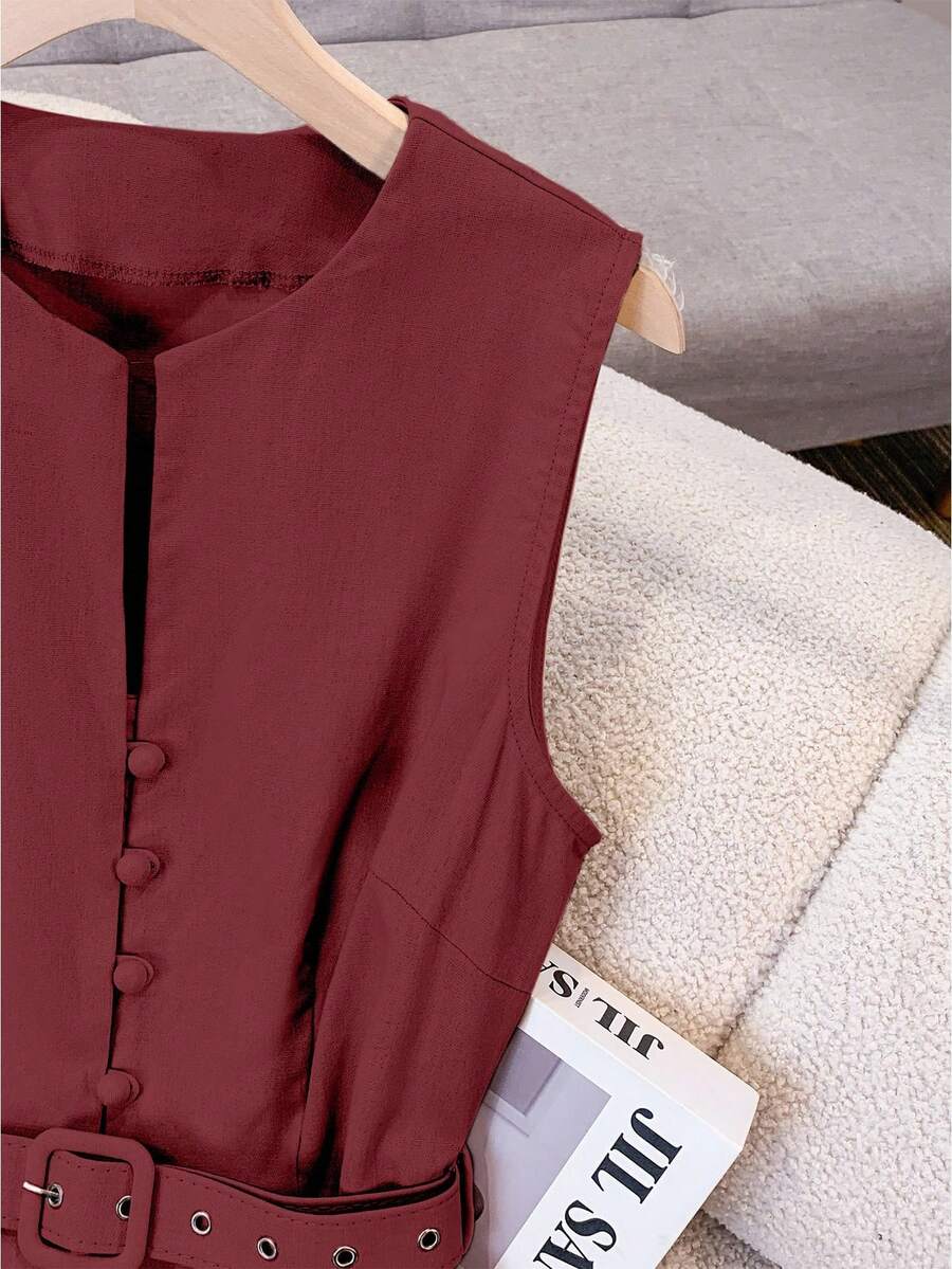 Vestido midi de lino sin mangas elegante y casual para mujer con cinturon
