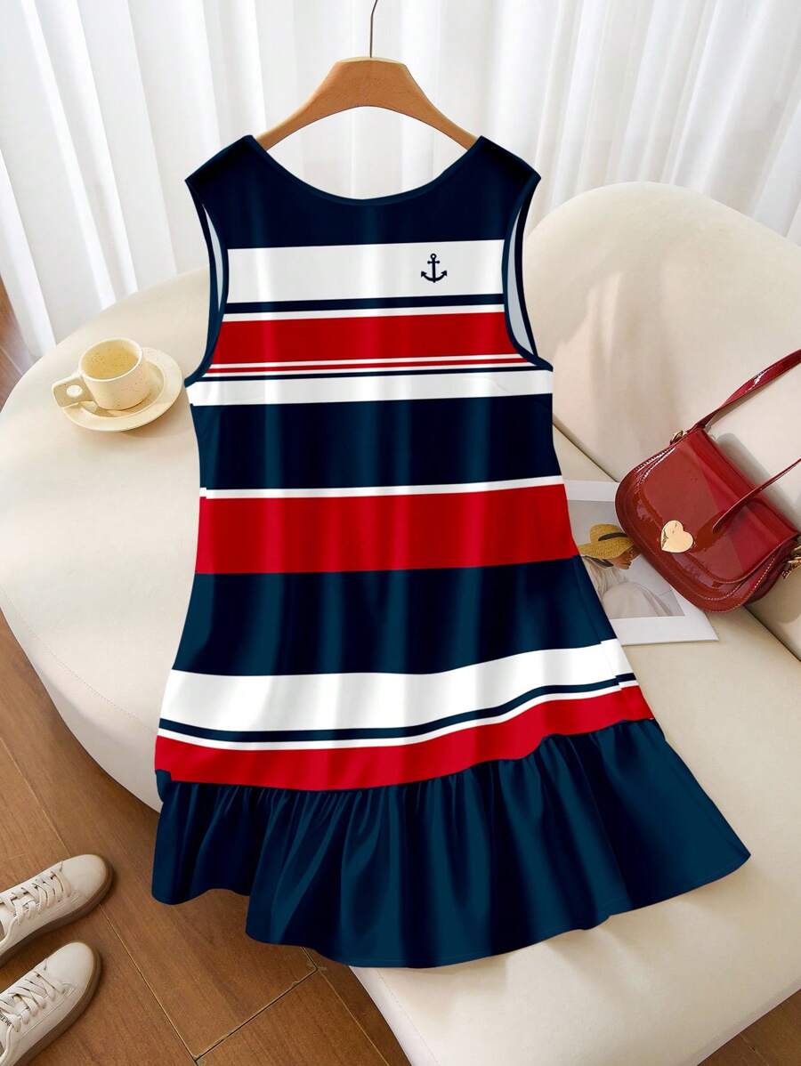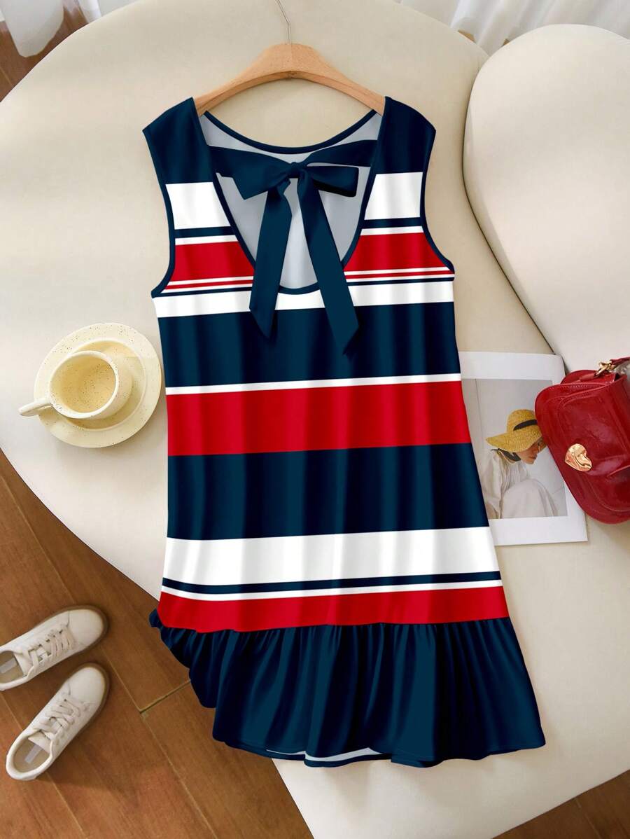Veykashi falda de tenis a rayas de estilo nautico de vacaciones casual, vestido mini estampado de estilo deportivo para mujer adecuado para vacaciones de verano, vestido a rayas de talla grande de estilo escolar para la temporada de regreso a clases