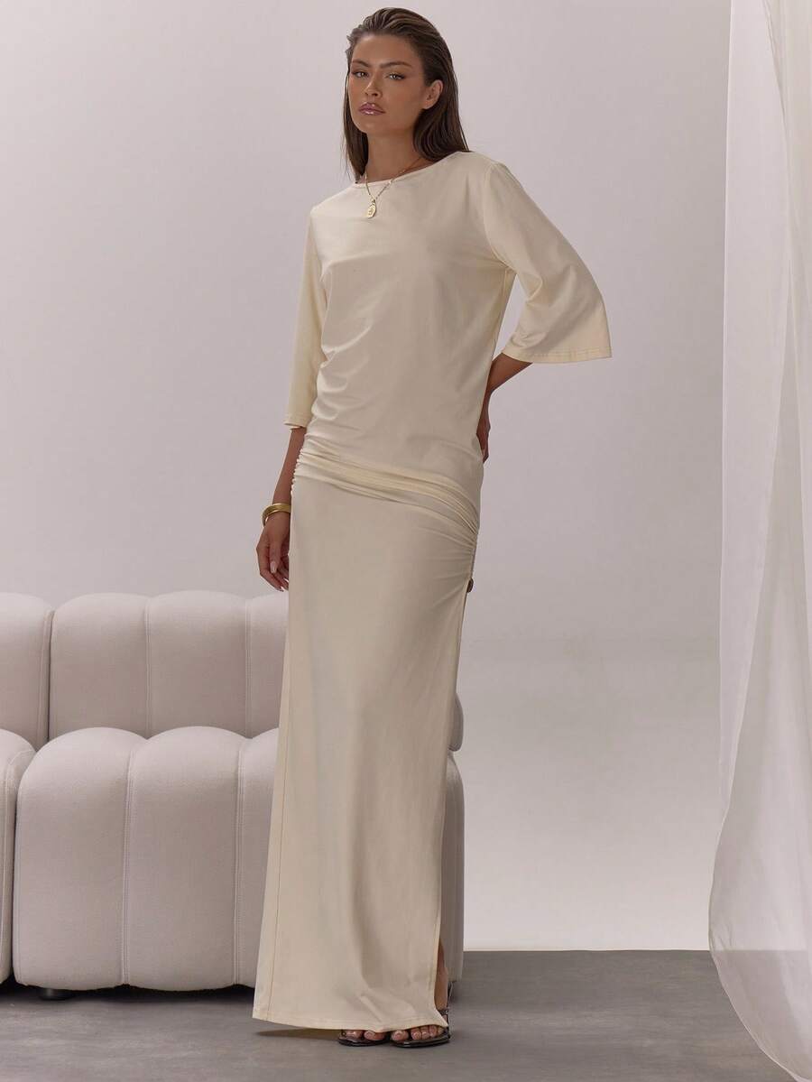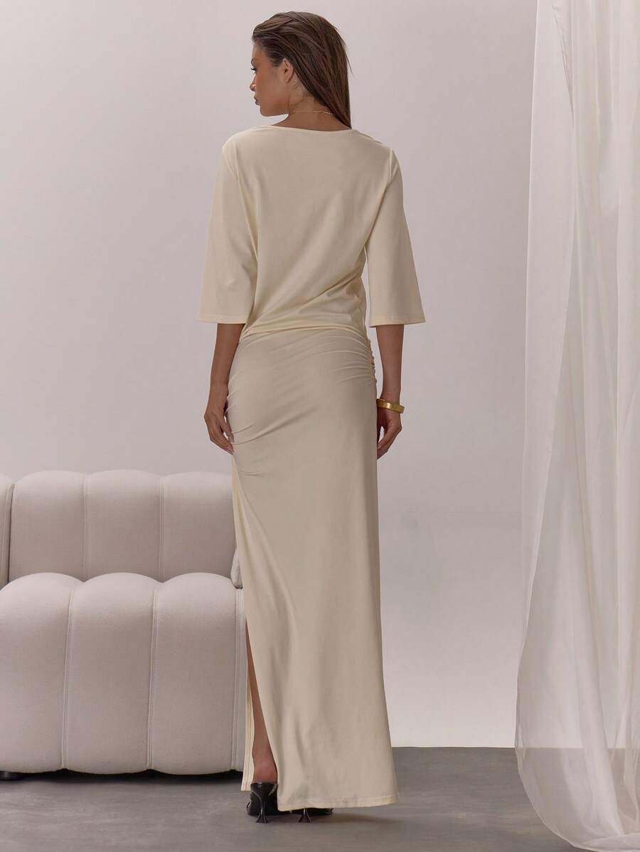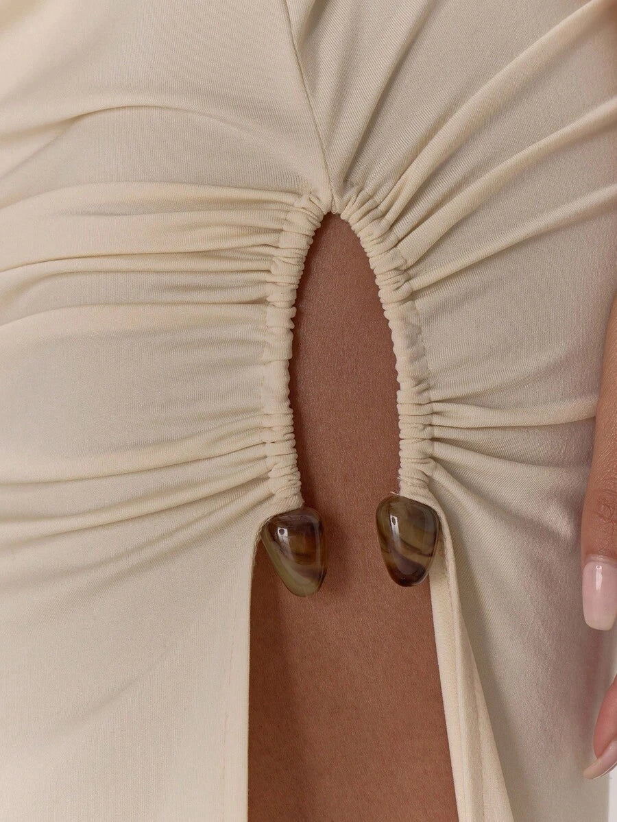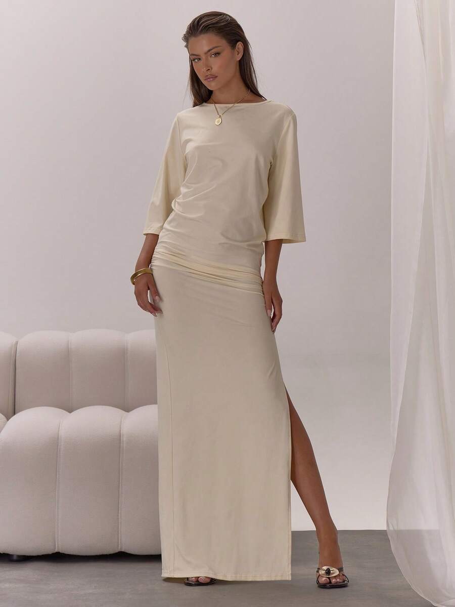 Vestido maxi con abertura en la pierna, recogido, sexy para salir de noche, ocasiones, vacaciones, otono, con capas