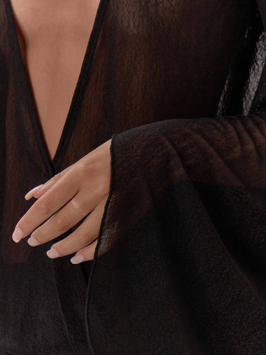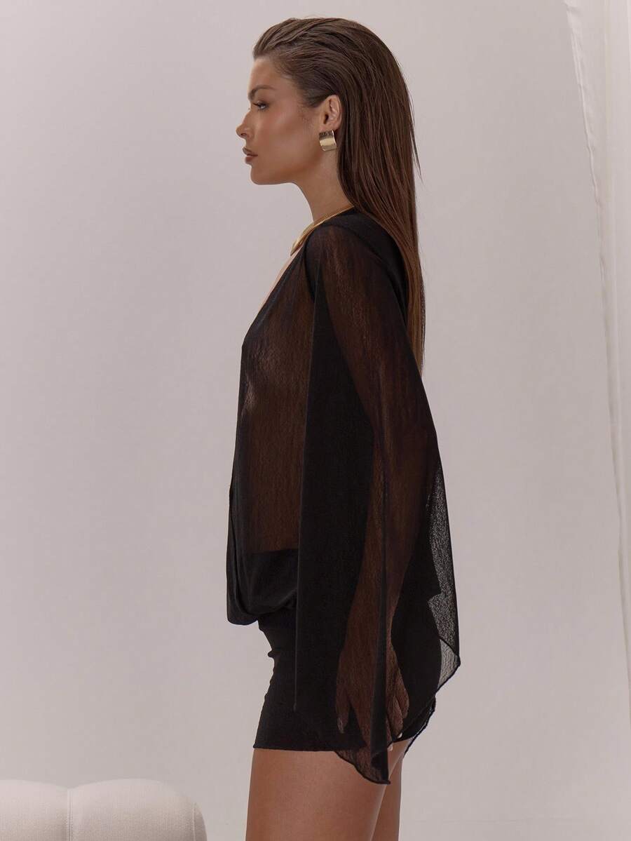 Vestido mini con escote pronunciado y mangas acampanadas, elegante y sexy para salir de noche, ocasiones especiales y vacaciones en otono, con diseno de capas