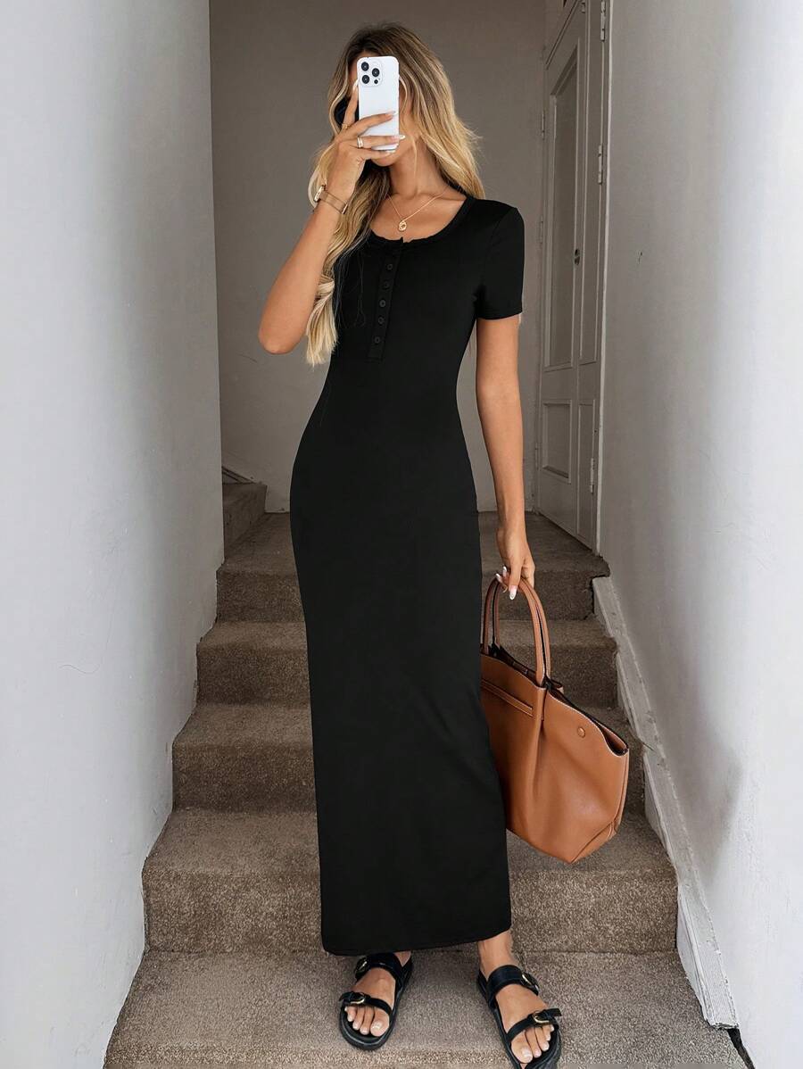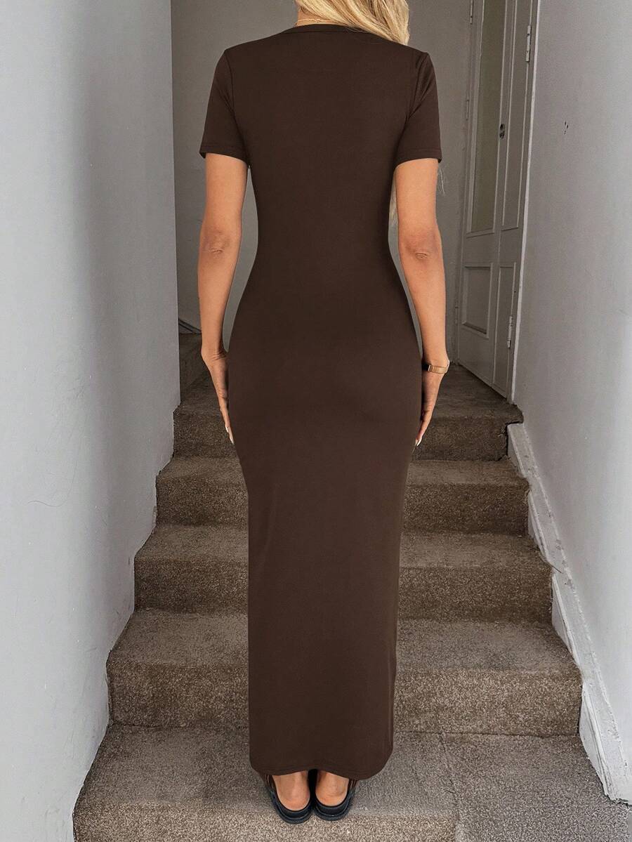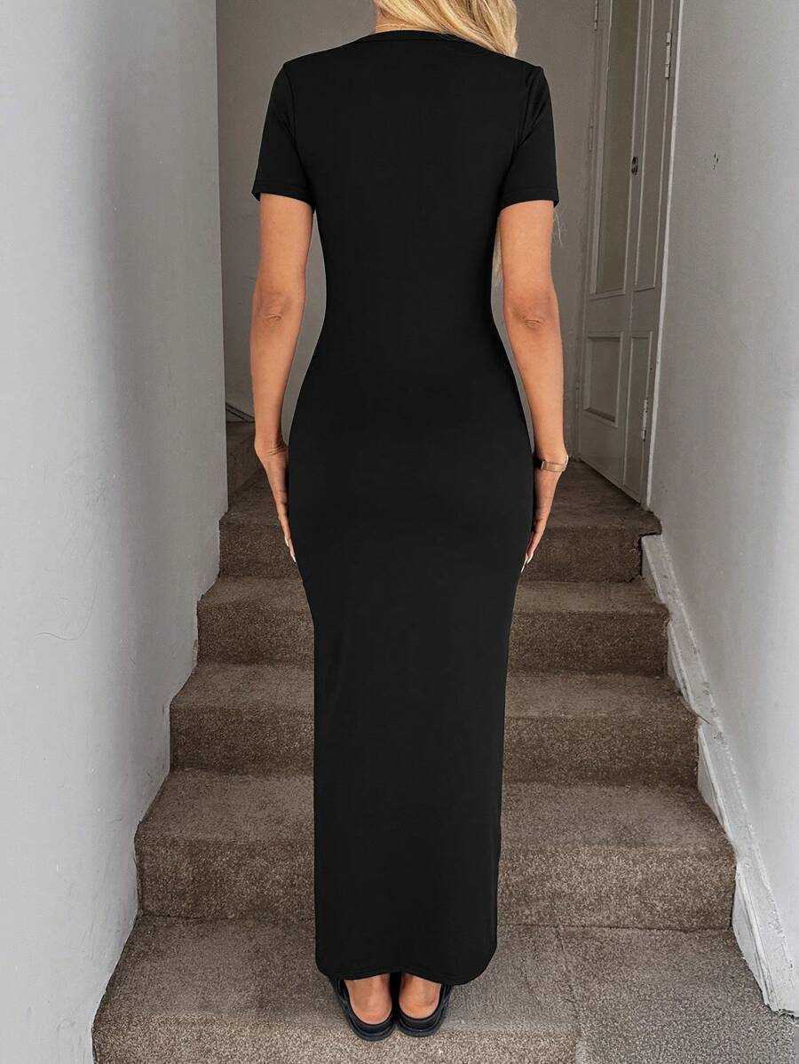 Vestido de punto de manga corta ajustado y sexy, falda lapiz cenida a la cintura