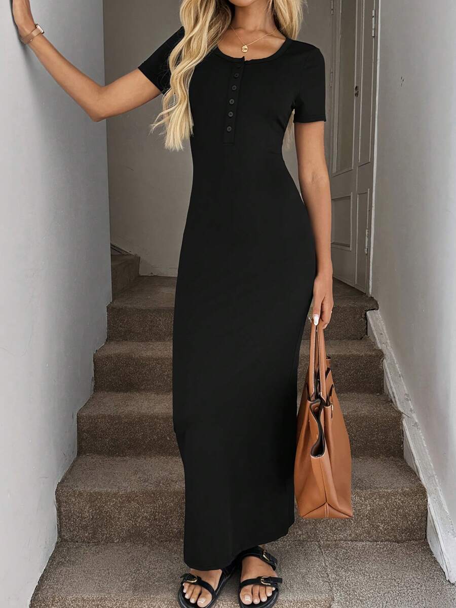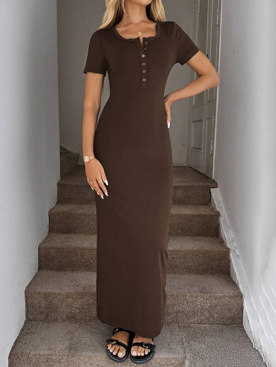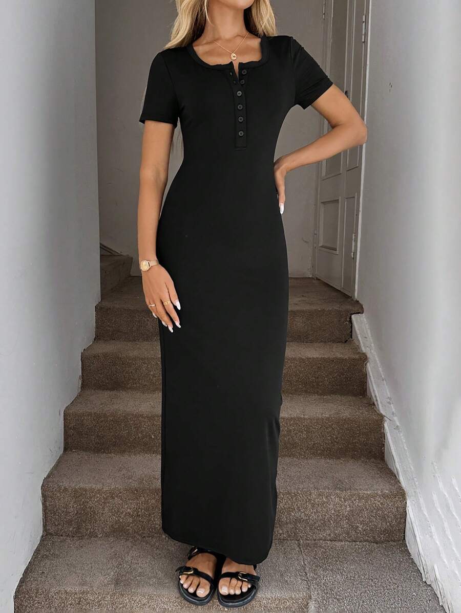 Vestido de punto de manga corta ajustado y sexy, falda lapiz cenida a la cintura