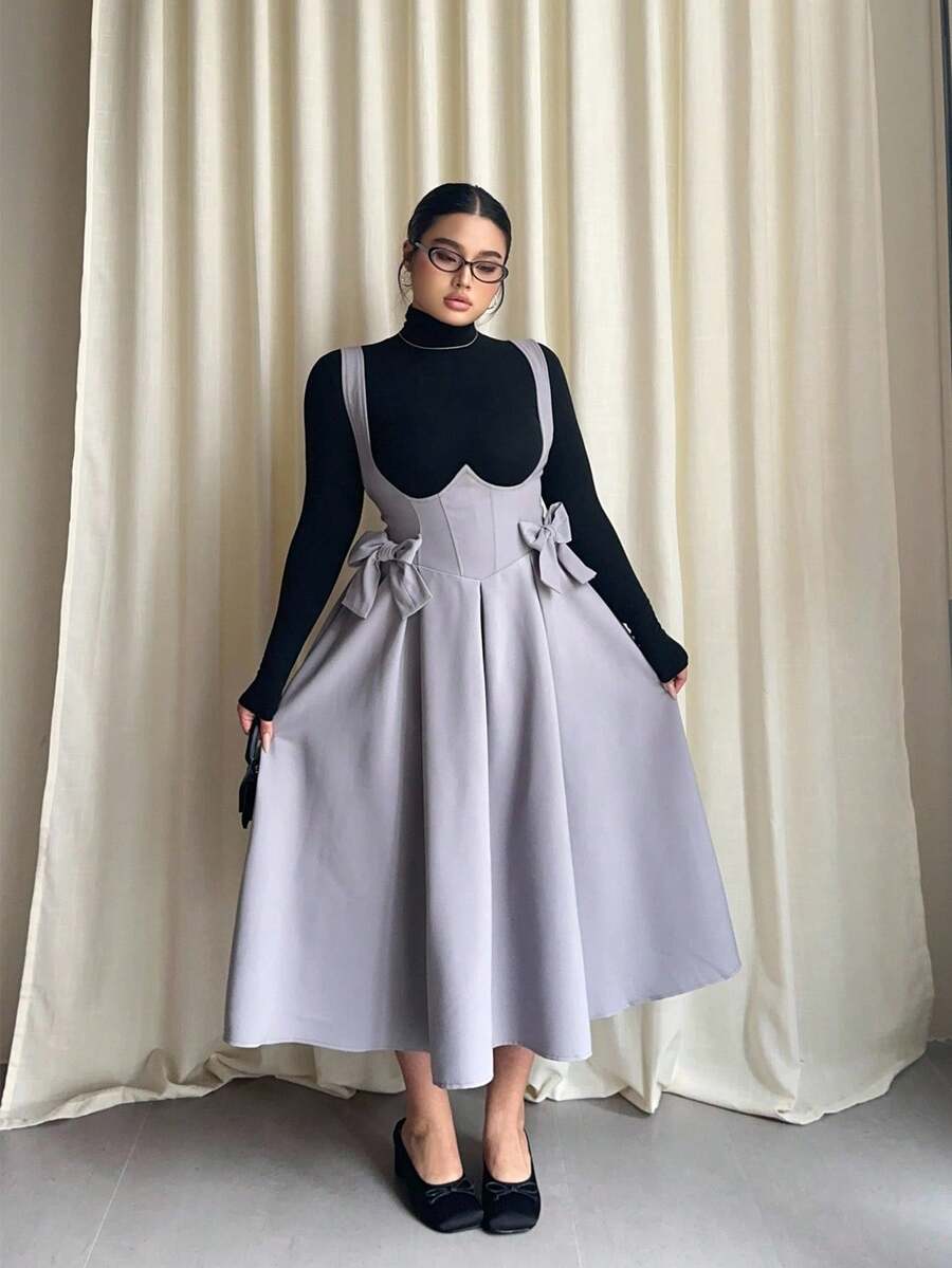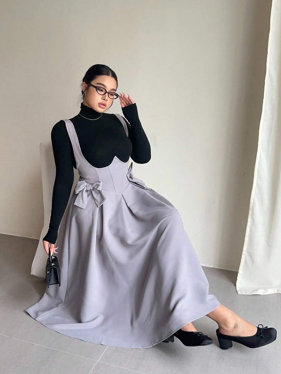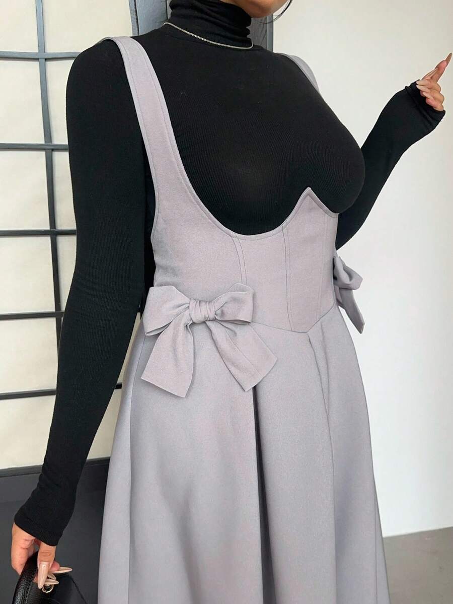 Vibekara vestido de peto gris talla grande con tirantes de lazo, casual y comodo