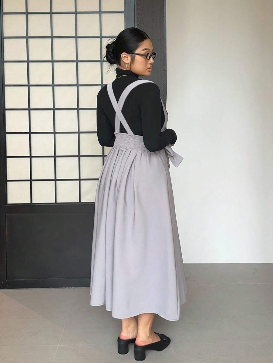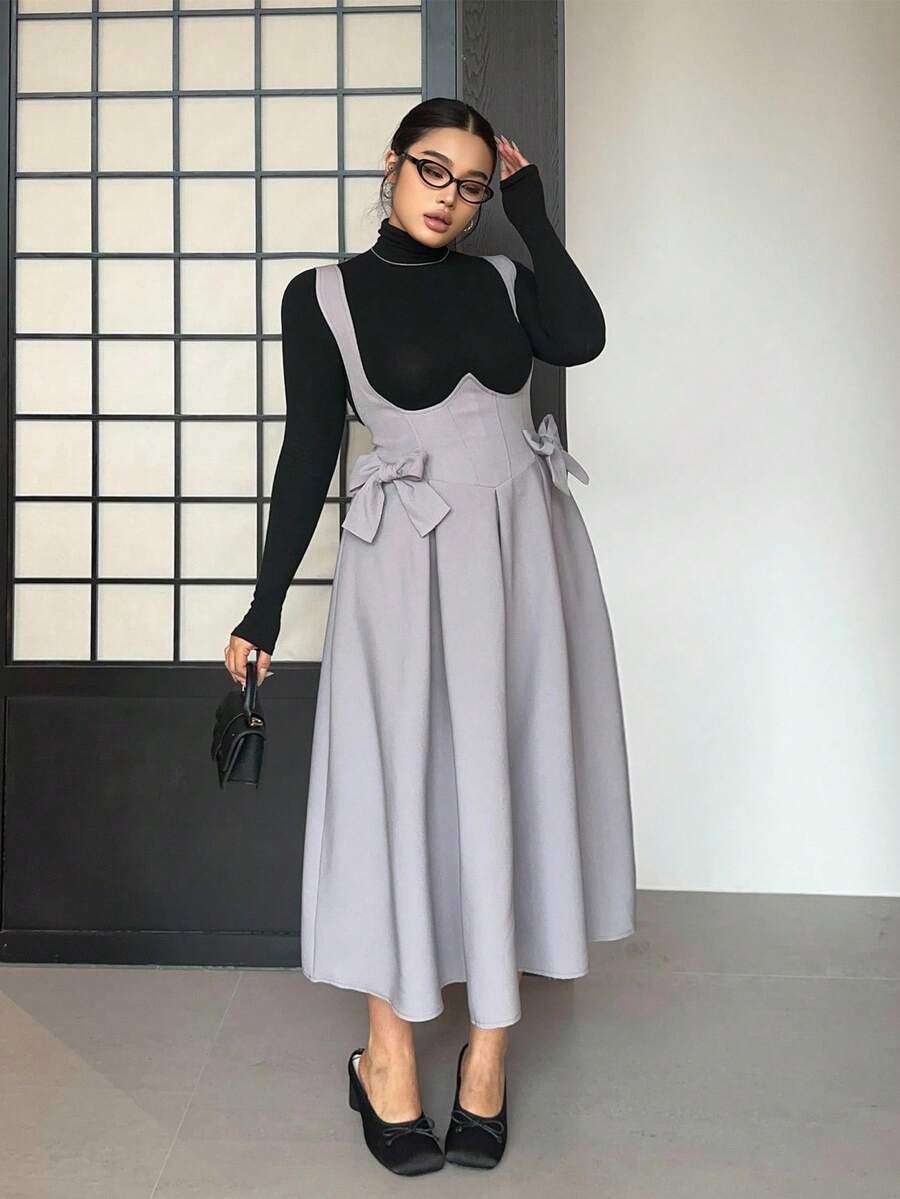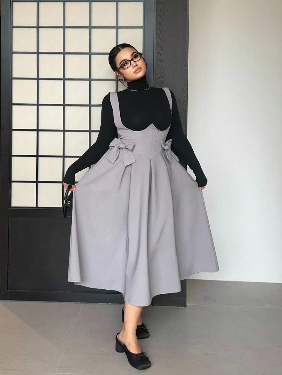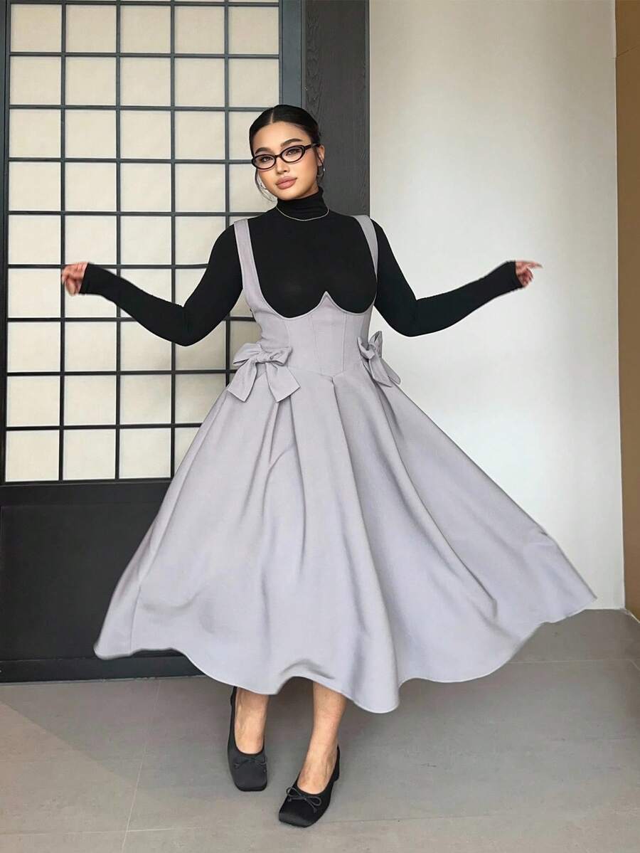 Vibekara vestido de peto gris talla grande con tirantes de lazo, casual y comodo