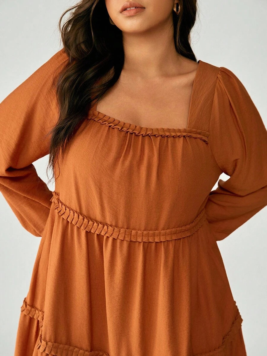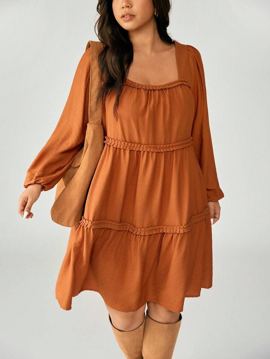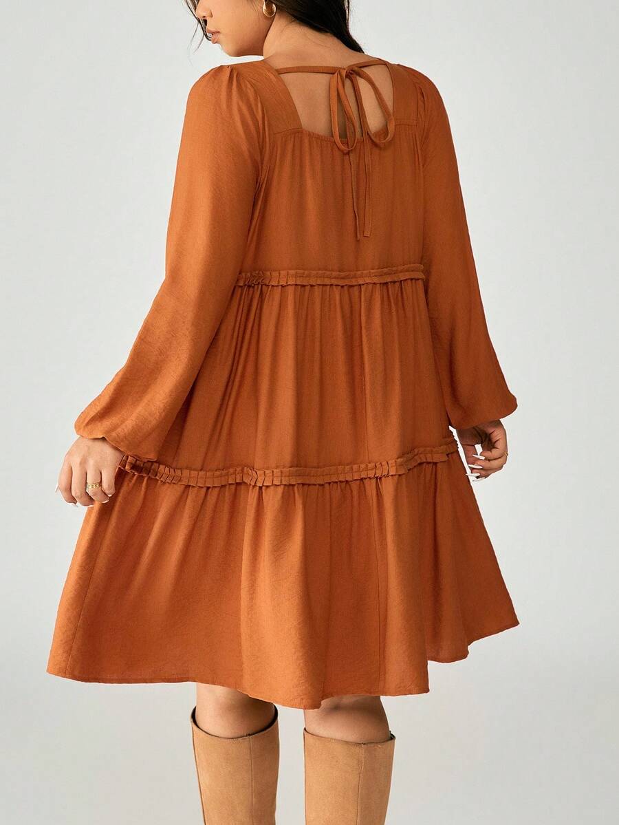 Nubod vestido de algodon y lino holgado, de linea a, con cuello cuadrado, mangas farol y dobladillo con volantes, para mujer de talla grande. elegante y dulce, ideal para citas, ir al trabajo, salidas y viajes. versatil para primavera/otono.