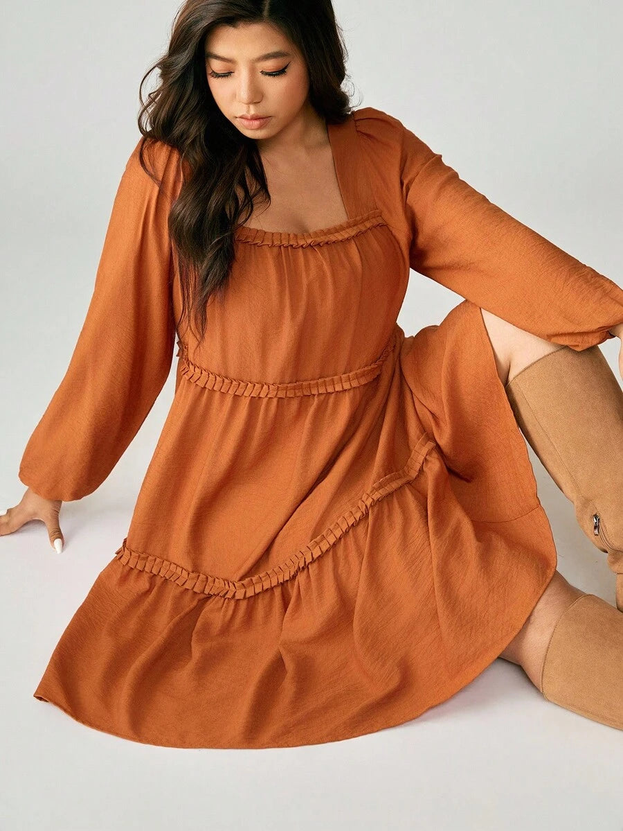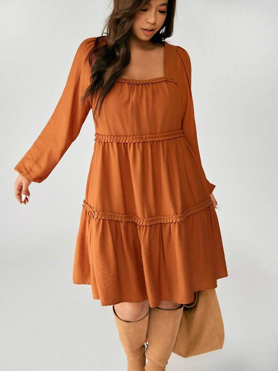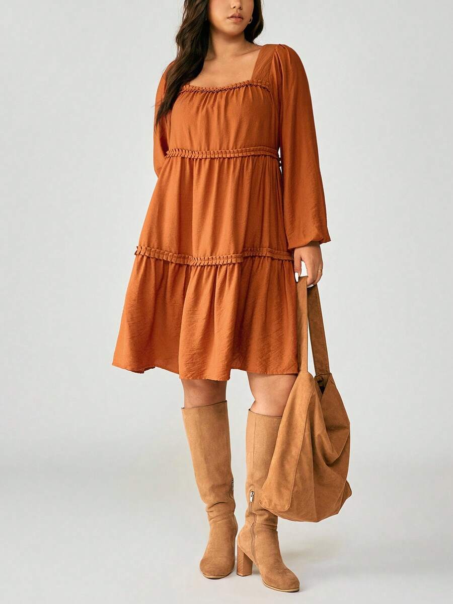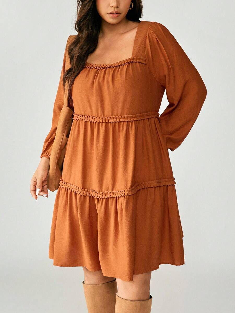 Nubod vestido de algodon y lino holgado, de linea a, con cuello cuadrado, mangas farol y dobladillo con volantes, para mujer de talla grande. elegante y dulce, ideal para citas, ir al trabajo, salidas y viajes. versatil para primavera/otono.