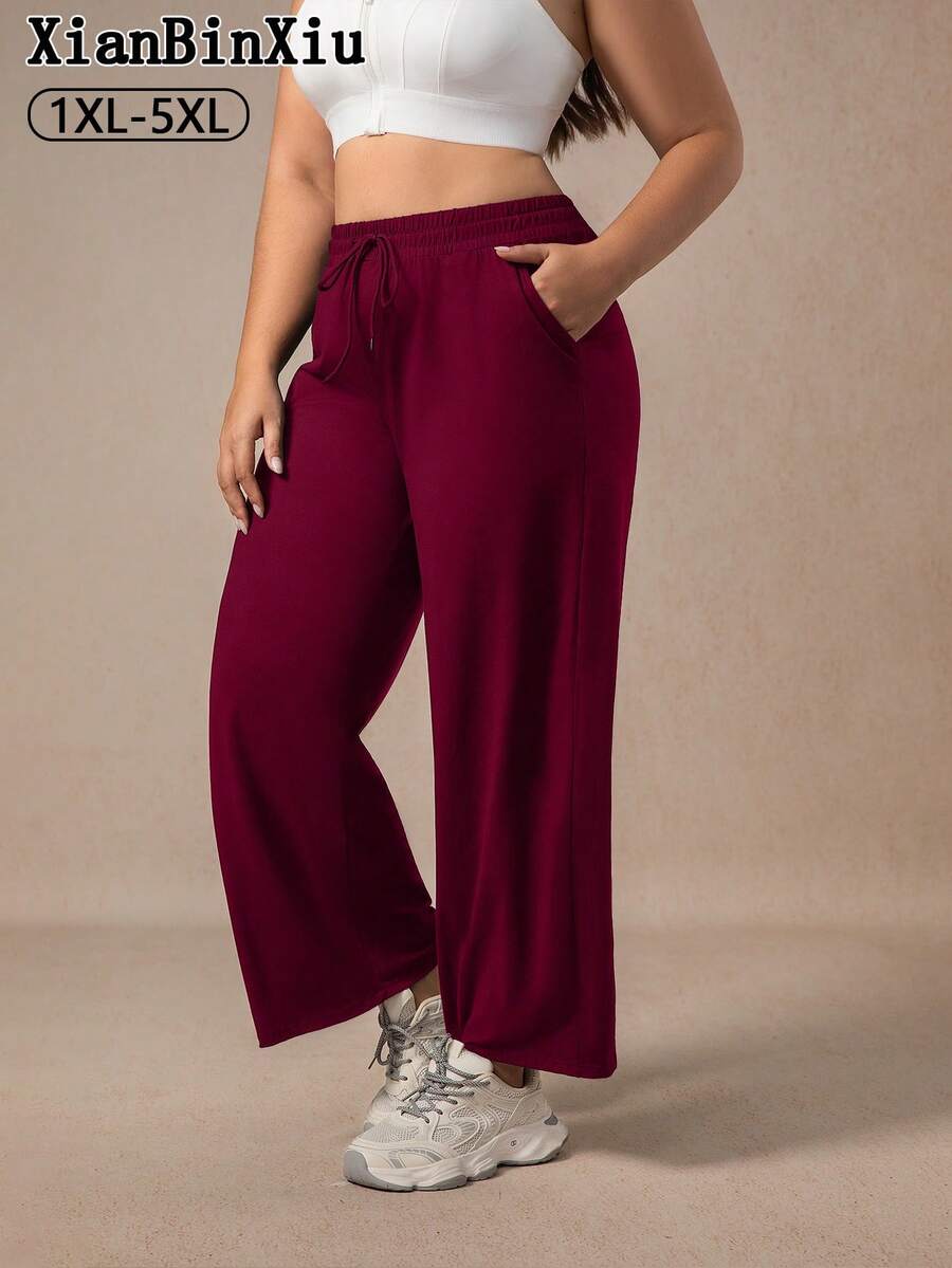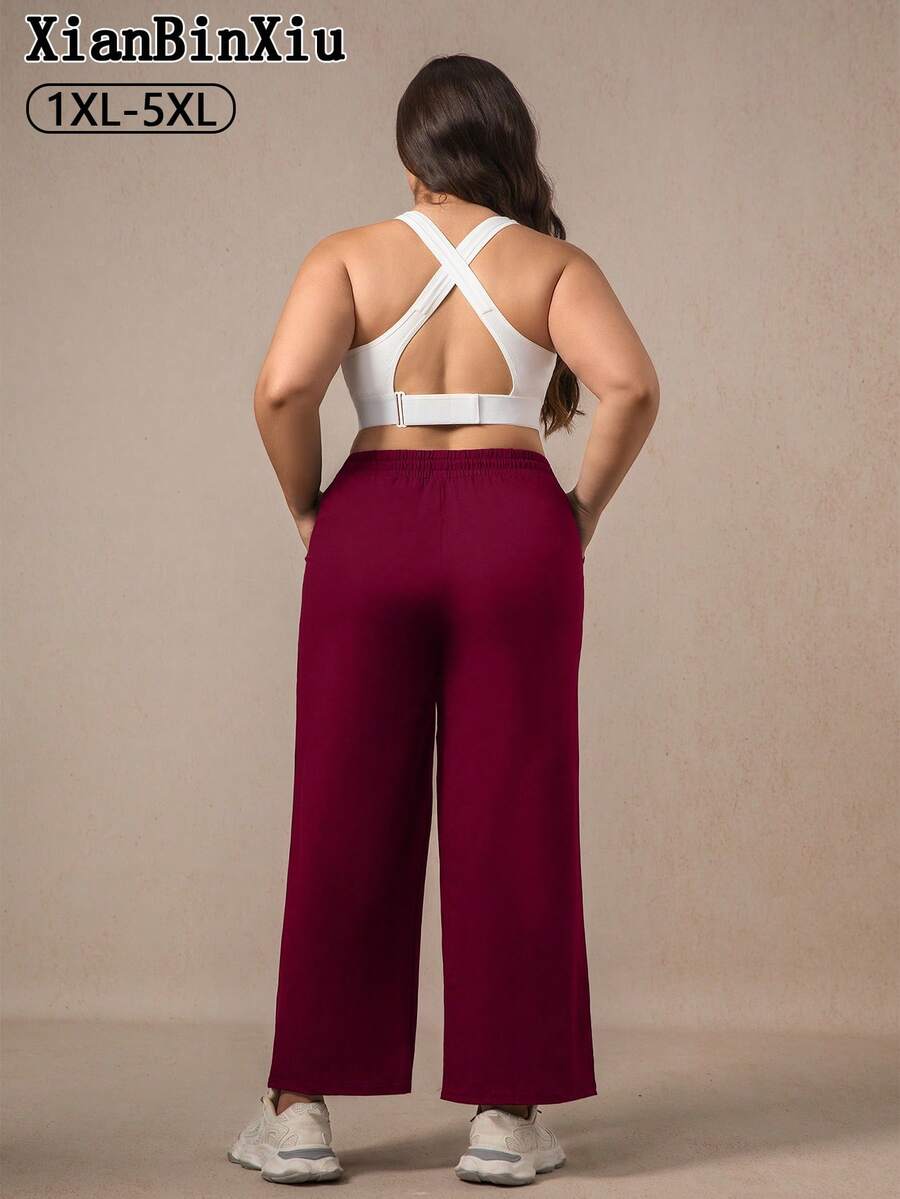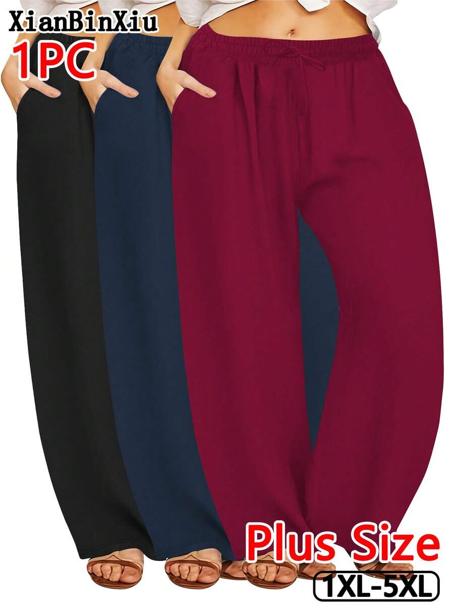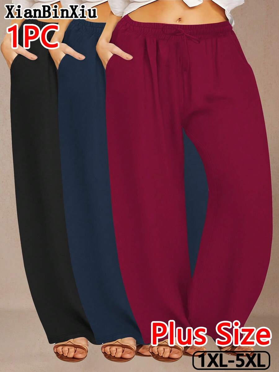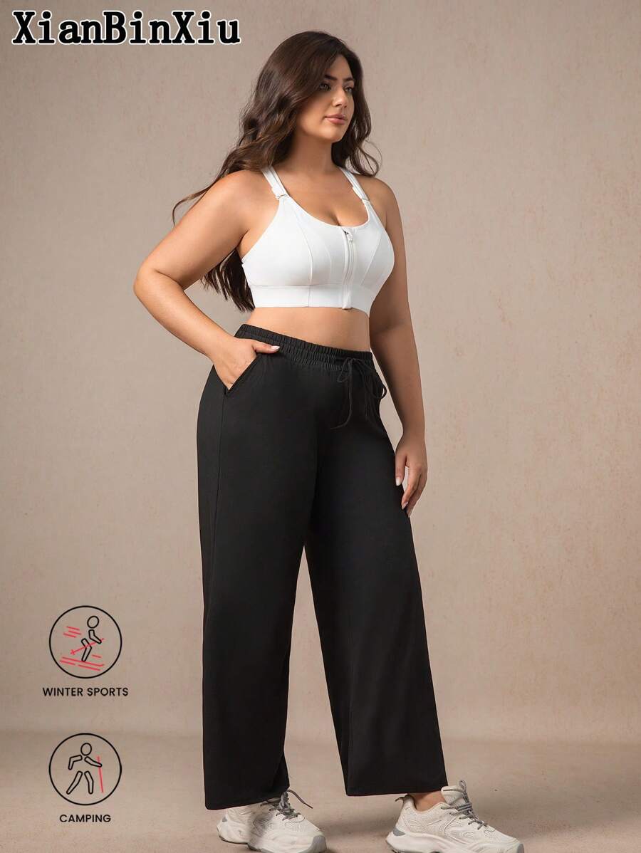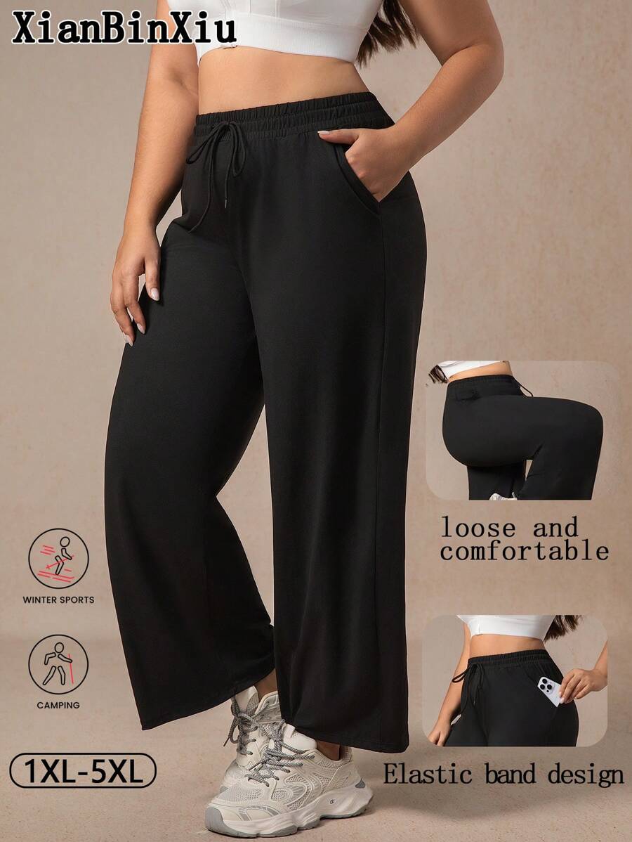 Xianbinxiu 1 pieza pantalones deportivos casuales de pierna recta y ajuste holgado con bolsillos para mujer talla grande, negro y azul marino