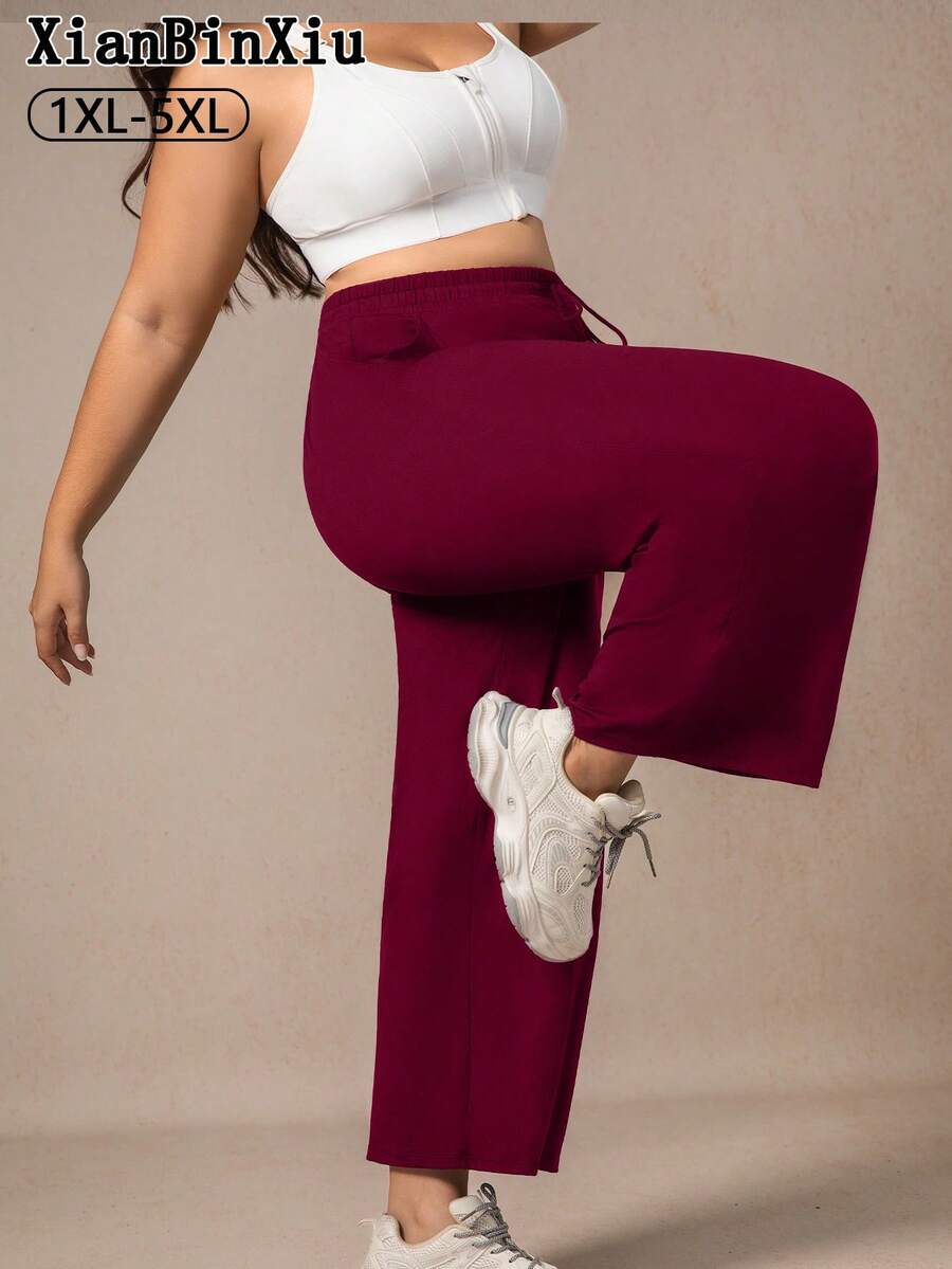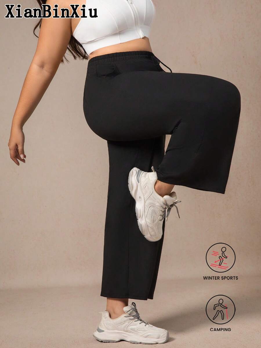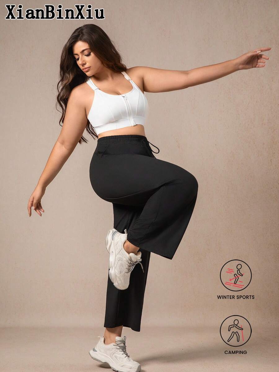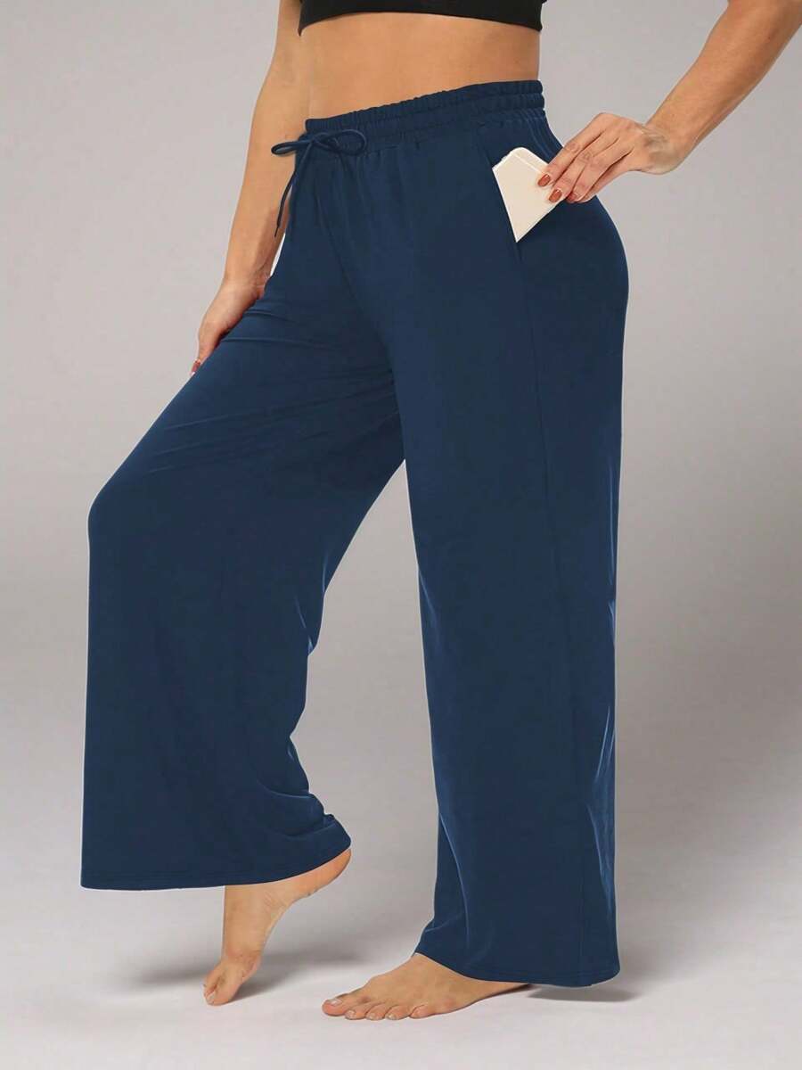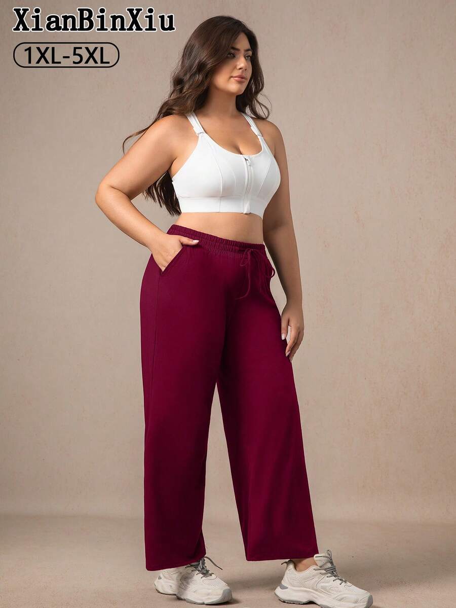 Xianbinxiu 1 pieza pantalones deportivos casuales de pierna recta y ajuste holgado con bolsillos para mujer talla grande, negro y azul marino
