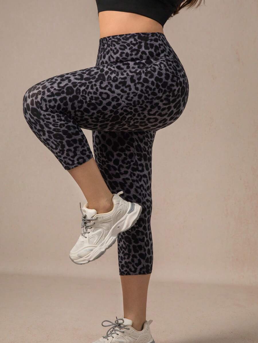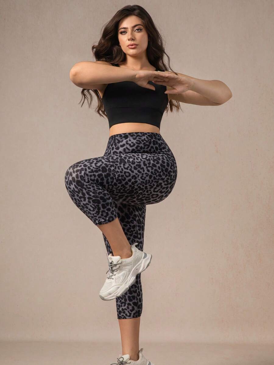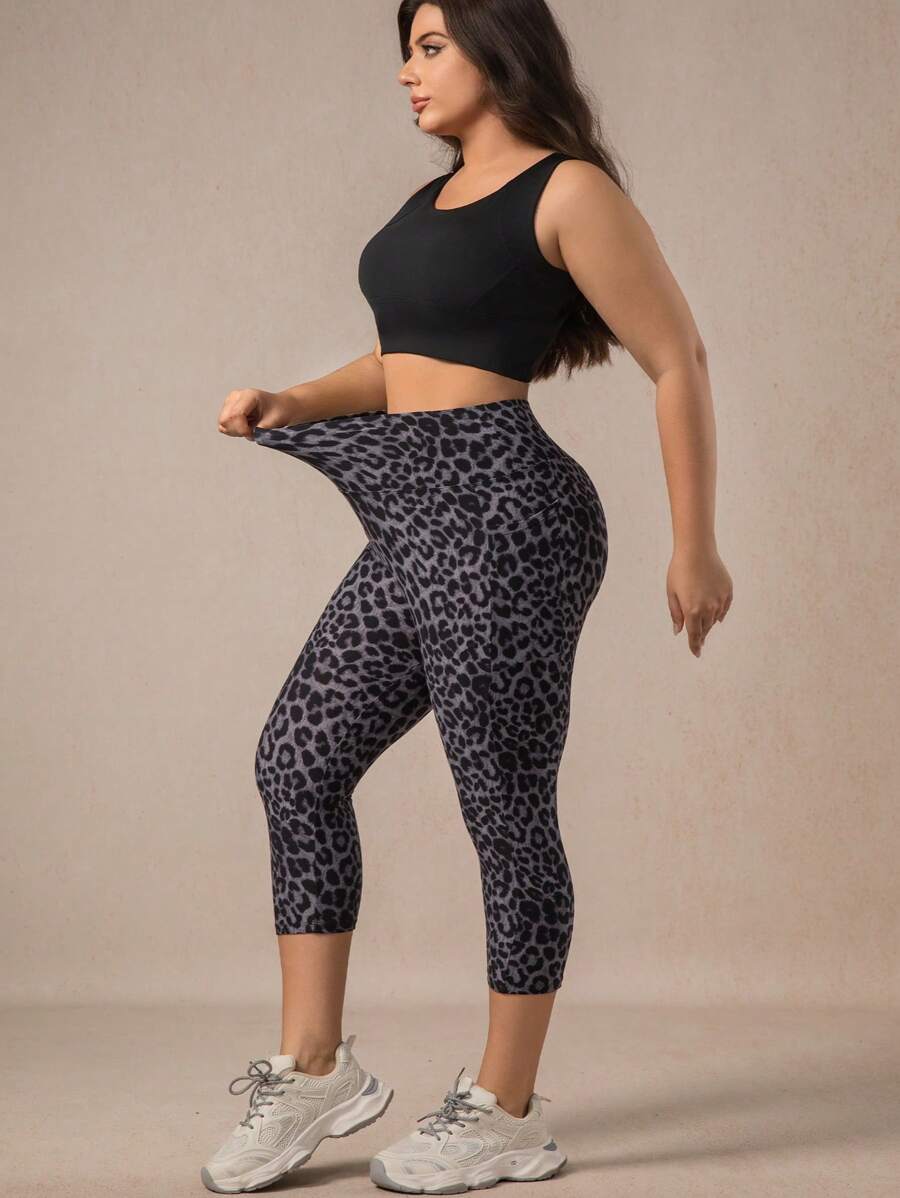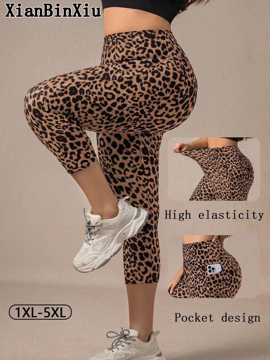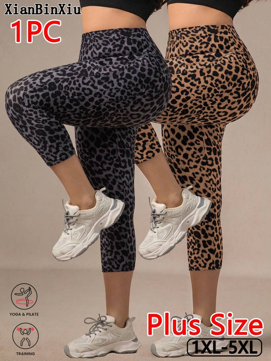 Xianbinxiu 1 pieza pantalon de yoga de cintura alta con estampado de leopardo para mujer, talla grande, control de abdomen, a prueba de sentadillas, mallas para entrenamiento, gris