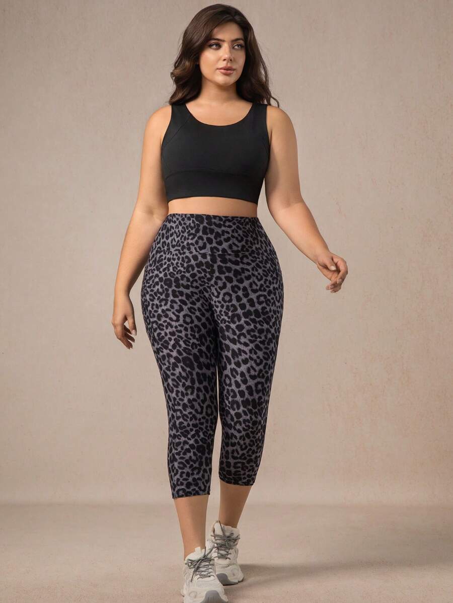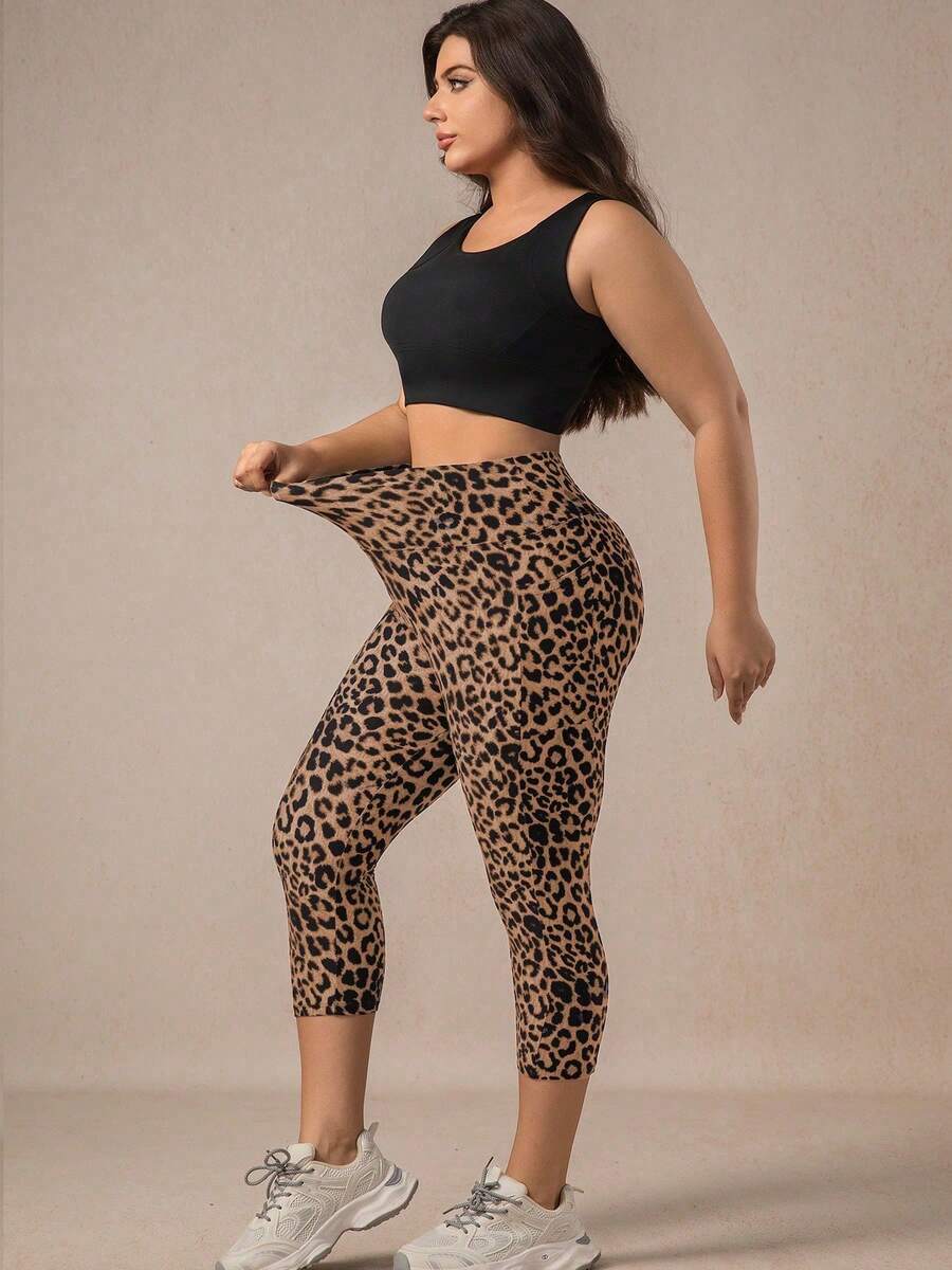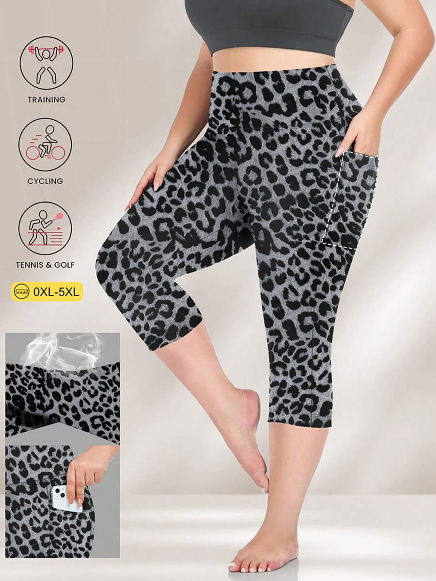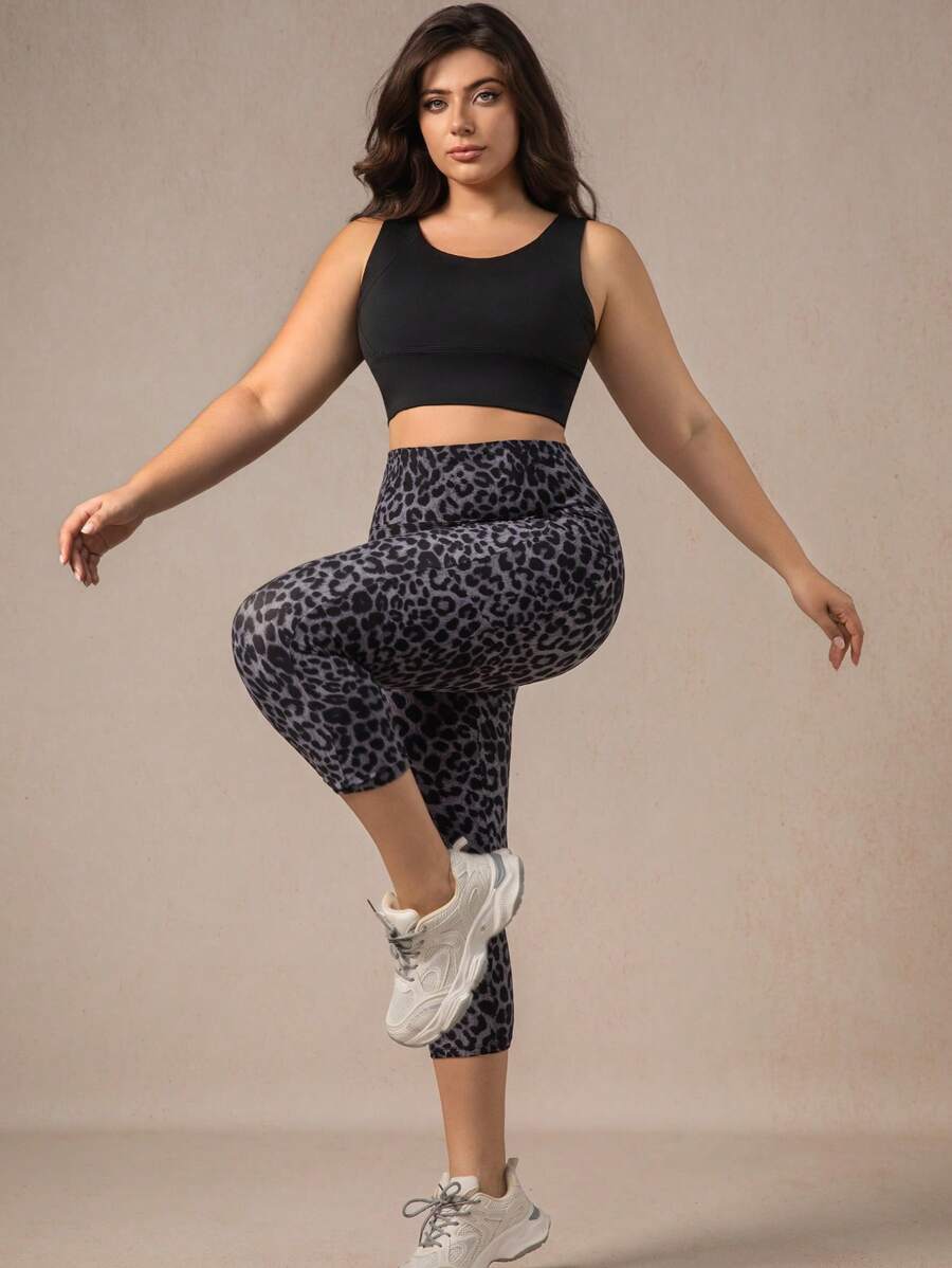 Xianbinxiu 1 pieza pantalon de yoga de cintura alta con estampado de leopardo para mujer, talla grande, control de abdomen, a prueba de sentadillas, mallas para entrenamiento, gris