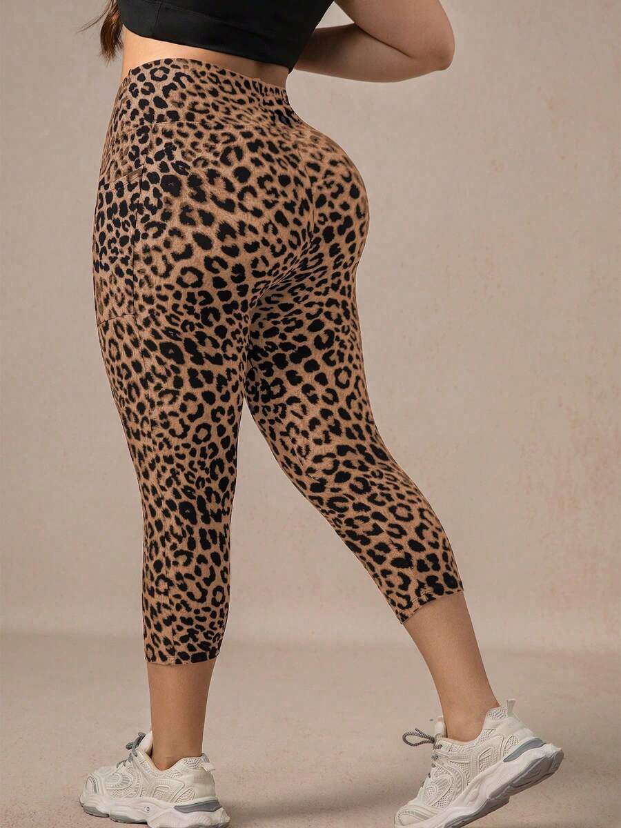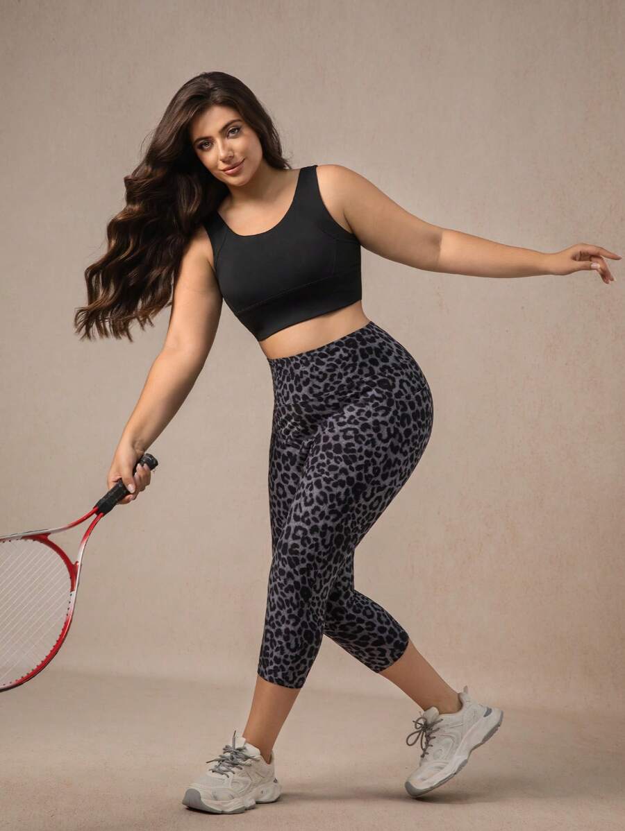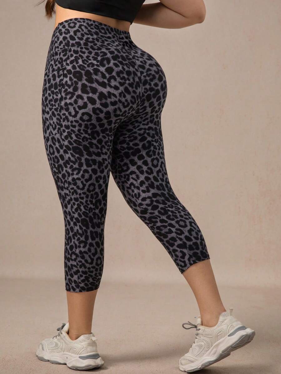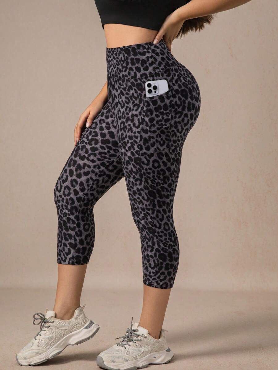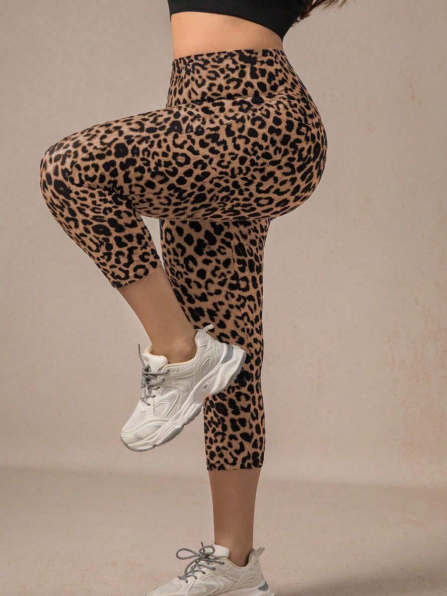 Xianbinxiu 1 pieza pantalon de yoga de cintura alta con estampado de leopardo para mujer, talla grande, control de abdomen, a prueba de sentadillas, mallas para entrenamiento, gris