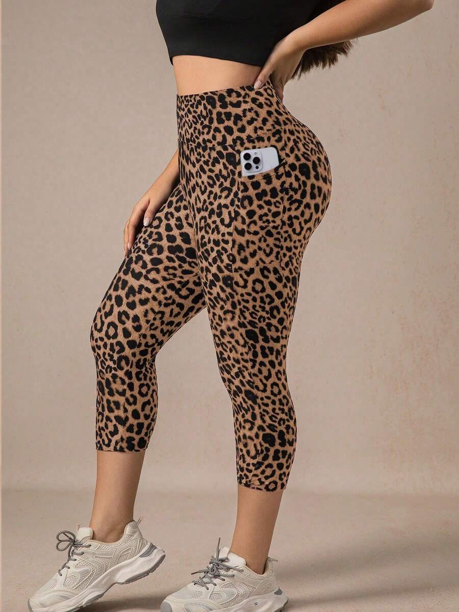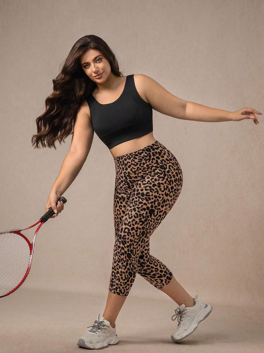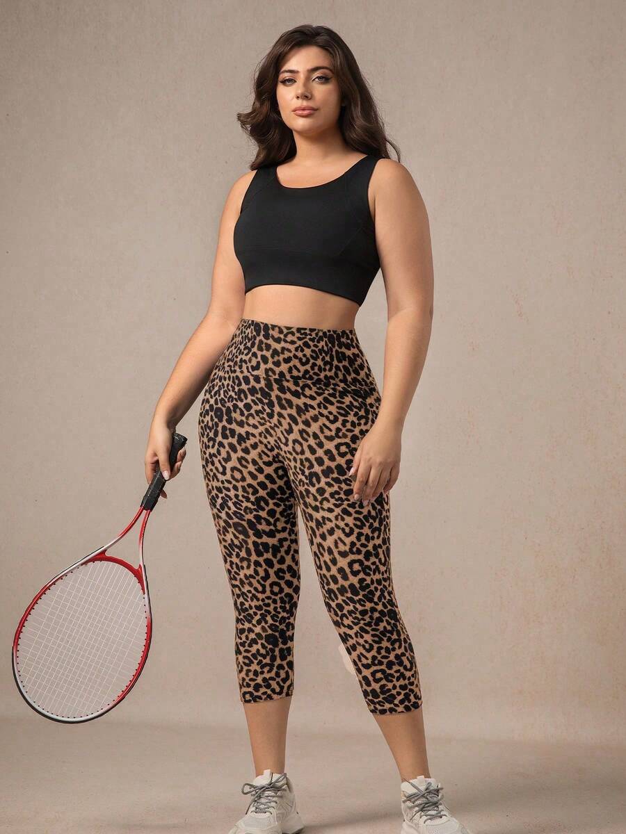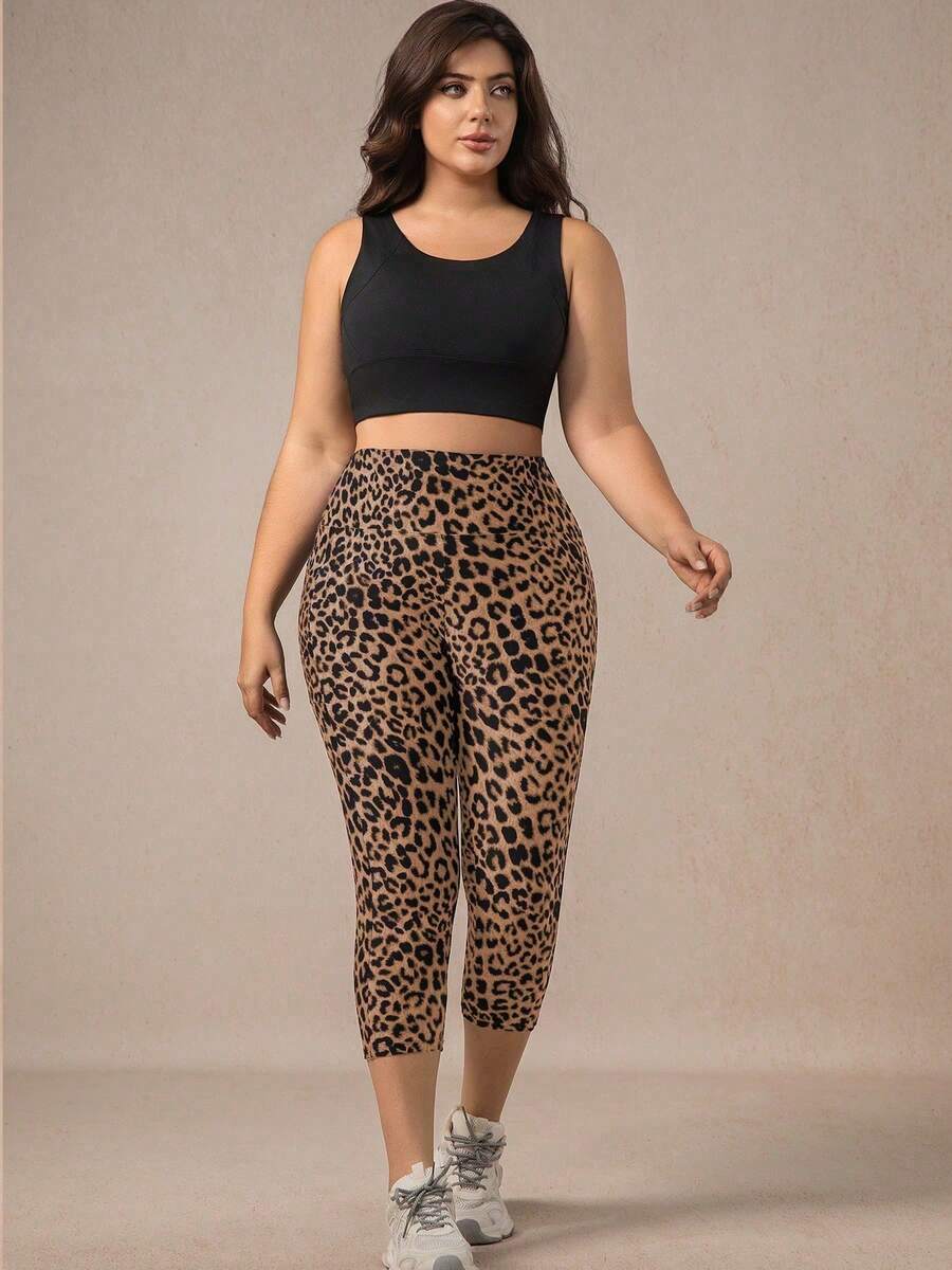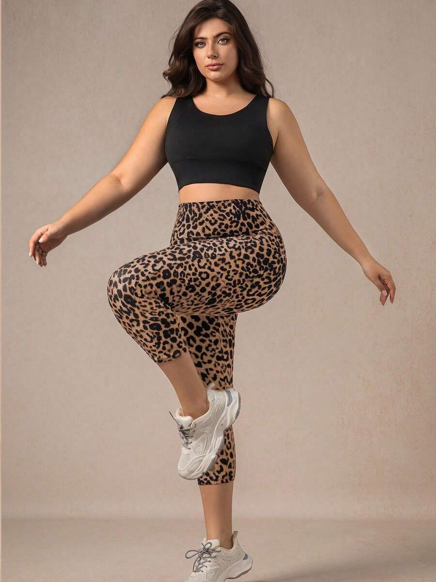 Xianbinxiu 1 pieza pantalon de yoga de cintura alta con estampado de leopardo para mujer, talla grande, control de abdomen, a prueba de sentadillas, mallas para entrenamiento, gris