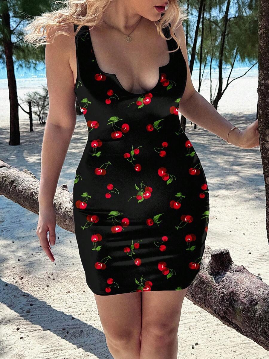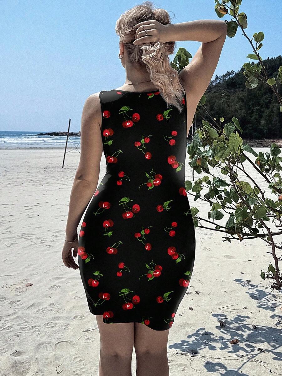 Veykashi vestido de talla grande con estampado de cerezas vintage, atuendo de regreso a la escuela