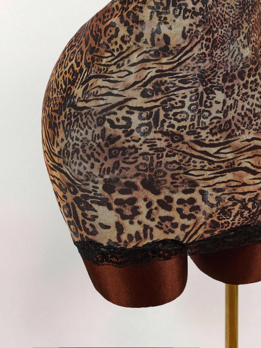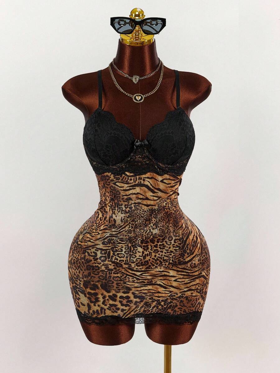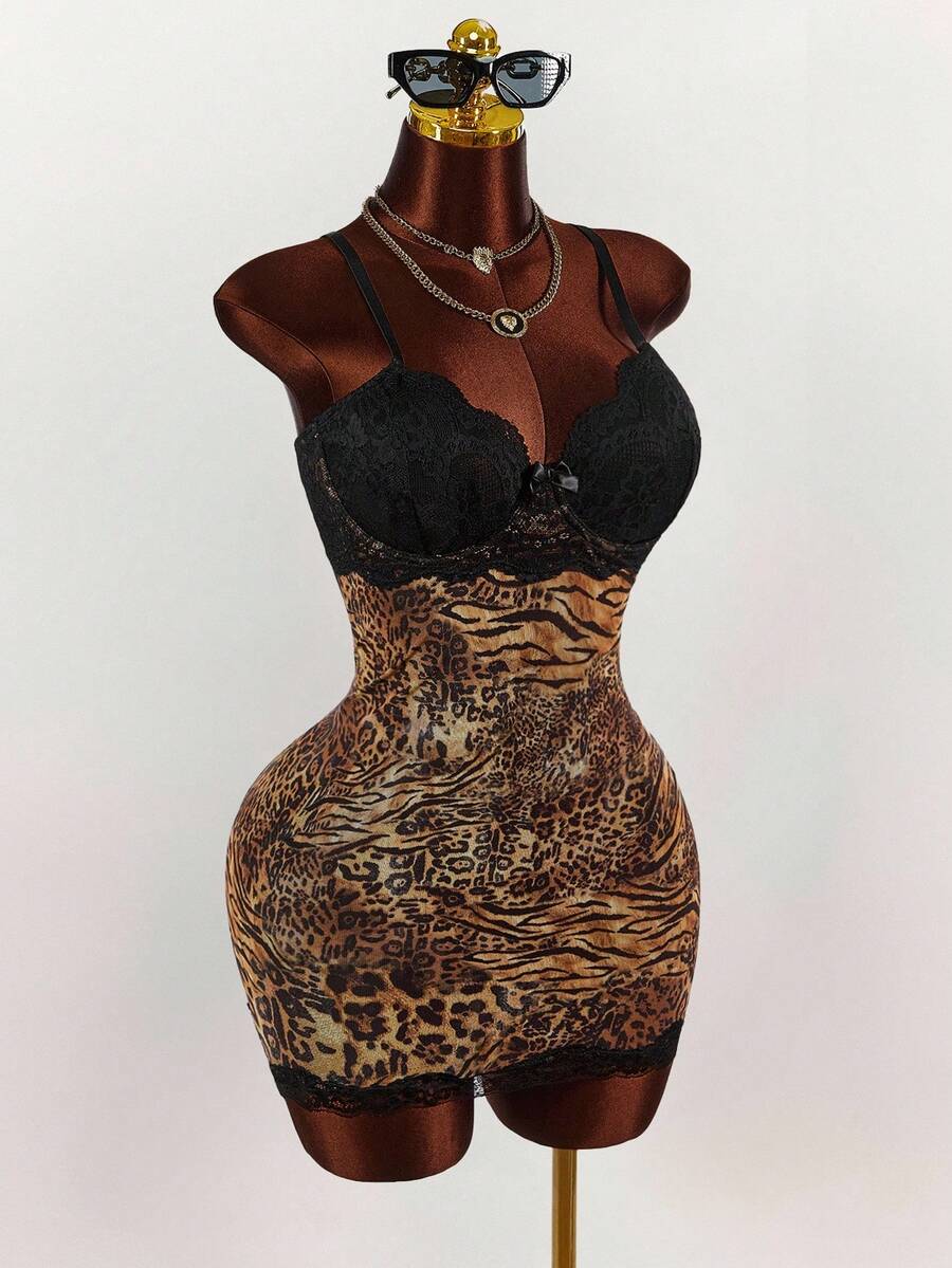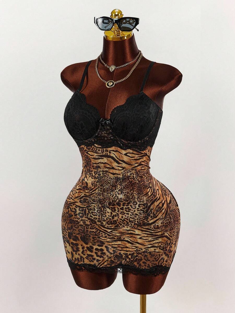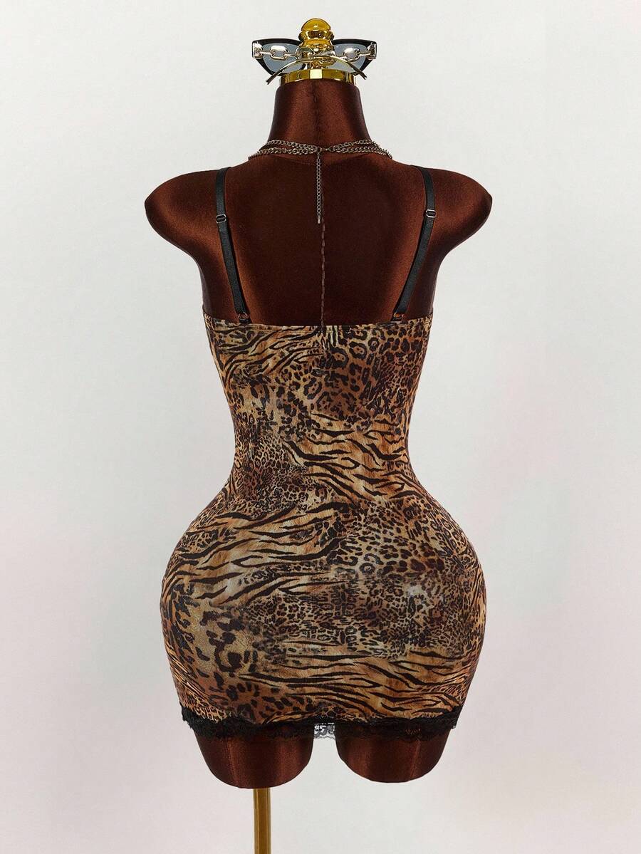 Amplova vestido mini ajustado de malla con detalles de encaje y estampado floral tropical para mujer de talla grande